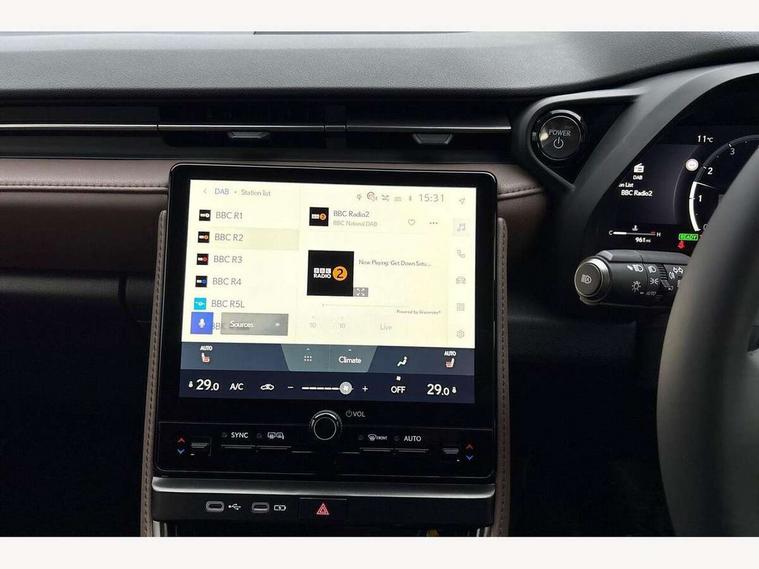 12.3" Digital instrument binnacle, Bluetooth connectivity, Cloud navigation, e-Call (emergency call), Electric power steering, Extended Lexus safety system+ 3 includes blind spot monitor, safe exit assist, camera washer and rear cross traffic alert, Front and rear parking sensors with intelligent clearance sensor, Front and rear smart entry, Head up Display, Lane change flasher function, Lexus link connected services, Lexus safety systems+ 3 includes dynamic radar cruise control, pre collision system day and night, lane tracing assist, road sign assist, Pre-collision system with driver monitor, Push button start, Rear view camera, Tailgate, Wireless Apple CarPlay and wired Android Auto, Wireless Smartphone charger, Vehicle dynamic integrated management (VDIM), 1 USB (Type-C) charging ports in bottom of the instrument panel, 1 USB (Type-C) multimedia communication ports in bottom of the instrument panel, 1 USB (Type-C) ports inside front console box, 6 speaker audio system, AM/FM and DAB radio, Lexus Link Connect with 9.8" Touchscreen, Rear side monitor, Auto dimming interior rear view mirror, Auto headlights, Black wheel arches, Electric adjustable/heated/auto folding door mirrors, Front and rear electric windows, Full body colour bumpers, LED 3rd brake light, LED daytime running lights, LED rear lights, Power back door without kick function, Privacy UV glass, rear doors and tailgate, Rain sensing wipers, Rear side wing doors, Rear wiper, Single bulb LED headlights with auto high beam, Wet arm wipers, 12V accessory connector in front console box, 3 bench rear seats in 2nd row, 3 rear headrests, 6 way manually adjustable front seats, 60/40 split folding rear seat, Aluminium scuff plates, Armrest with sliding cup holder, Centre armrest with storage, Cup holder in centre console, Driver and passenger door pocket, Driver's lumbar support, Dual zone automatic air conditioning, Front headrests, Glovebox, Heated front seats, Illuminated entry system (cabin, footwell, console and door handles), Nanoe-X Technology, Single colour ambient lighting, Single passenger seat, Storage tray under audio panel and lower tray, Synthetic leather gear lever, Synthetic leather steering wheel, Touch Sensor Buttons on Steering Wheel, Tsuyasumi interior ornamentaion, Under deck storage, 2 x Isofix child rear seat restraints, 3 point ELR (Emergency Locking Retractor) front seat belt with pretensioners, 3x3 point rear seat belts, ABS, Adjustable seatbelt anchor points, Driver and front passenger side airbags, Driver and front passenger single stage airbags, Driver knee airbag, E-Latch electric door release, Electronic parking brake, ESP, Front and rear curtain shield airbags, Front centre airbag, Manual rear child locks, Passenger airbag cut-off switch, Tyre pressure monitoring system, Alarm/anti-theft (with siren and 2 sensors), Engine immobiliser, Thatcham approved locking wheel nuts, Two motion door lock with double lock, VIN etching, Tyre repair kit,