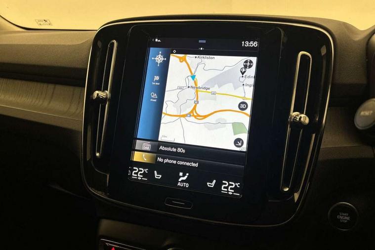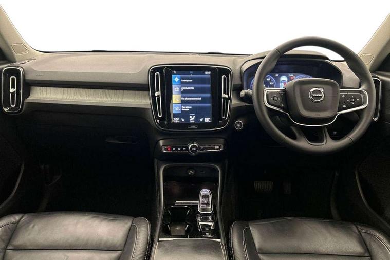 12.3" Active TFT crystal driver's instrument display, 9" centre console portrait touch screen, Adjustable steering wheel force, Bluetooth hands free telephone kit, Drive mode selector, E-call, Lane keep assist with driver alert control, Oncoming Lane Mitigation, Power operated tailgate, Sensus navigation with European mapping and traffic information, Speed limiter, Speed sensitive steering, Voice activated control for key functions, Volvo on call, Dynamic chassis, DAB Digital radio, Steering wheel mounted remote controls, Adaptive brake lights with high level LED brake lights, Auto dimming interior mirror, Automatic headlamp levelling, Chrome window surround, Colour coordinated auto folding and heated power door mirrors, Front aluminium tread plates, Front and rear electric windows, High gloss black front grille with chrome inserts, High gloss black sensus surround deco, High Gloss silver front and rear skid plate, Home safe and approach lighting, Integrated roof rails in silver, LED Headlights + Active high beam incorporating daytime running lights, Rain sensor with automatic windscreen wiper activation, Rear side wing doors, Rear wiper, Roof antenna, Roof spoiler, Visible VIN plate, 12V socket in front tunnel console and luggage compartment, 2 zone electronic climate control and rear air vent, 3 seat bench in 2nd row, 3 Spoke tailored steering wheel with chrome trim, 60/40 versatile split folding rear seat, A-pillar parking ticket holder, Bright metal luggage threshold, Centre console cupholders and storage, Floor mats, Front footwell illumination, Front headrests, Front reading light and theatre lighting, Front tunnel net pocket and integrated waste bin, Glovebox bag hook, Height/reach adjustable steering column, Height/tilt adjustable driver's seat, High gloss centre tunnel deco, Illuminated glovebox, Illuminated luggage compartment, Illuminated vanity mirrors, Isofix attachments on outer rear seats, Leather faced upholstery, Load protection net, Multi directional lumbar support, Orrefors Crystal gear lever knob, Power driver seat with memory + exterior mirrors memory, Rear armrest / integral cup holders / storage tray, Rear coat hook, Single front passenger seat, Underfloor cargo storage, Vanity mirror with ticket holder, Park assist pack - XC40, 3x3 point rear seatbelts, City safety includes pedestrian, cyclist and large animal detection and front collision warning with full auto brake, Drivers knee airbag, Dual stage driver/passenger airbags, Electronic parking brake with auto hold, First aid kit, Front and outer rear seatbelt reminder and pretensioners, Front seats SIPS airbags, Hill descent control, Hill start assist, Inflatable curtain, Passenger airbag cut-off device, Road sign information display, Run off Road Mitigation, Run off Road Protection, SIPS (Side Impact Protection System), Slippery road and hazard light alert, Stability and Traction Control with Spin control, Engine Drag Control and Corner Traction Control, Tyre pressure monitoring system, Vehicle deceleration control with Anti-lock Brake System, Electronic Brake Distribution and Emergency Brake Assist, Warning triangle, WHIPS whiplash protection system - front, Anti-theft alarm including immobiliser/volume sensor + level sensor, Care key with user defined top speed, Key integrated remote control central locking + fuel flap with deadlocking system and auto open/close power windows, Locking wheel nuts, Private locking for tailgate, Driftwood inlays,