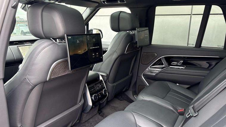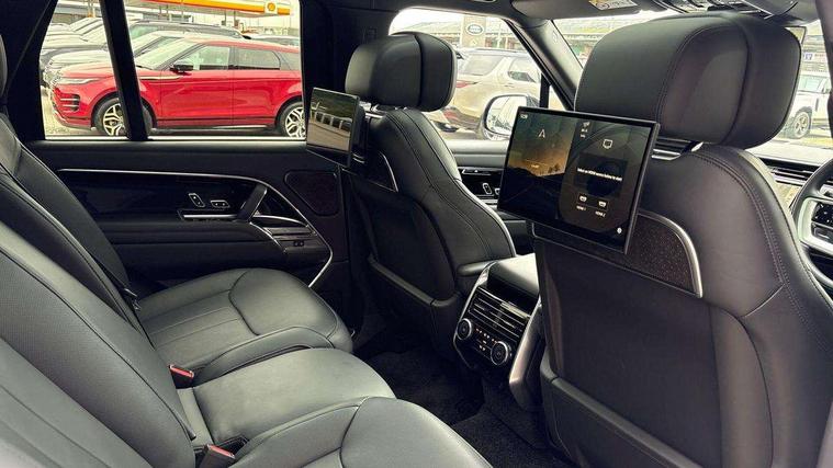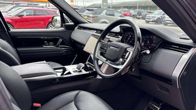 13.1" Touchscreen, 3D surround camera inc frwd traffic detection, vehicle clearance guidance, 3D view, clearsight ground view, manoevure light, 360 parking aid, wade sensing, All Terrain Info Centre, All wheel steering, Android Auto, Apple car play, Blind spot assist, Bluetooth connectivity streaming, Configurable programs, Driver condition response, Eco mode, Electric power assisted steering (EPAS), Emergency call service, Front and rear parking aid, Head up Display, Interactive driver display, Lane keep assist, Park assist, Powered gesture tailgate/boot lid, Rear collision monitor, Rear traffic monitor, Remote, Traffic sign recognition with adaptive speed limiter, Wi-Fi Enabled with data plan, Wireless device charging with phone signal booster, 8 speed automatic transmission, Active damper technology system, Adaptive dynamics, Adaptive off-road cruise control, All Wheel Drive (AWD), Automatic access height, Electronic active differential with torque vectoring by braking, Electronic air suspension with dynamic response pro, Terrain Response 2 Auto, Twin speed transfer box, Digital Audio Broadcast radio-DAB, Meridian 1600W signature sound system, Pivi pro including smart settings, Connected navigation pro, nuance speech, USB socket, Acoustic laminated windscreen, Animated directional indicators, Automatic headlights, Automatic levelling headlights, Centre high mounted stop light, ClearSight interior rear view mirror, Digital LED headlights with signature DRL and image projection, Electric windows with one touch open/close and anti trap, Engine cover, Flush deployable exterior door handles, Front and rear recovery eyes, Front fog lights, Headlamp power wash, Heated rear window, Heated washer jets, Illuminated metal treadplates with Autobiography script, Laminated front and rear side glass, LED tail lights, Power fold, auto-dimming, heated door mirrors with approach lights, Rain sensing windscreen wipers, Rear boot, Rear fog lights, Rear side wing doors, Side repeater indicators in mirror, Solar attenuating windscreen, Trailer stability assist, Winter wiper park position, 12V power sockets, 3 seat bench in 2nd row, Air quality sensor, Auto folding loadspace cover, Bright metal pedals, Cabin air purification pro, Cabin lighting, Customer configurable single point entry, Driver and passenger front seat armrests, Easy boot loading, Ebony Carpet, Electric rear side window sunblinds, Four zone climate control, Front and rear cupholders, Front and rear grab handles, Front centre console refrigerator compartment, Front head restraints, Gearshift paddles, Heated steering wheel, Hook in load space, Loadspace light, Luggage tie down in loadspace, Multifunction steering wheel, Rear centre armrest, Rear head restraints, Rear ISOFIX, Single front passenger seat, Soft close doors, SV bespoke carpet mats, Twin blade sunvisors with Illuminated vanity mirrors, Upper and lower glovebox, Online pack with data plan - Range Rover, 3x3 point rear seat belts, Anti-lock braking system (ABS), Black brake calipers, Brake hold function, Cornering brake control (CBC), Customer configurable autolock, DSC - Dynamic Stability Control, Electronic brake force distribution, Electronic parking brake, Electronic traction control, Emergency brake assist, Emergency braking, Front airbags with passenger seat occupant detector, Front side airbags, Hill descent control, Hill launch assist, Illuminated seat belt buckles, Low traction launch, Occupant protection assist, Power operated child locks, Roll stability control, Tyre pressure monitoring system (TPMS), Immobiliser, Intrusion sensor and alarm, Keyless entry, Locking wheel nuts, Remote central locking, Noble chrome controls,