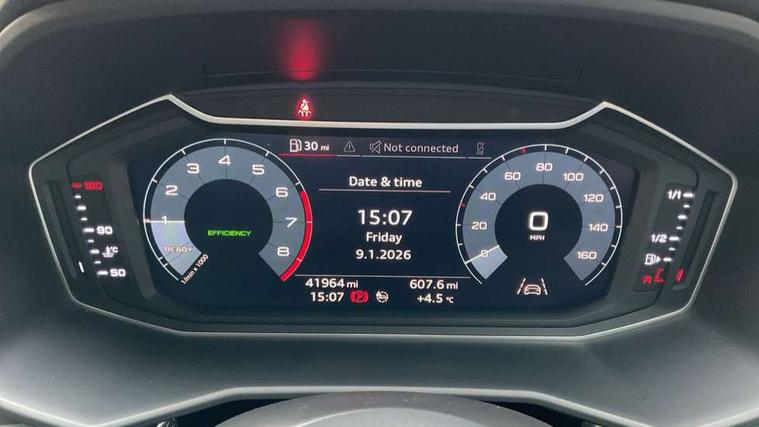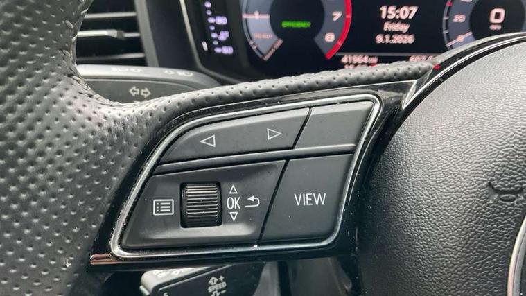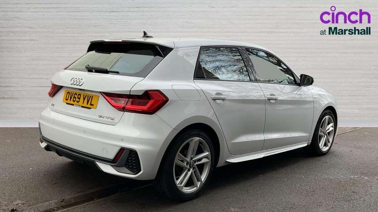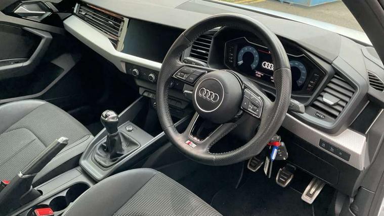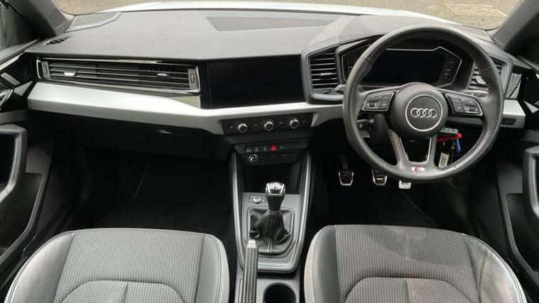 10.25" Digital instrument cluster display classis style instrument dials + speed, odometer, time, outside temperature, telephone menu + fuel level warning, Audi connect safety emergency and service including E-call, Audi drive select - power steering assistance + engine, Audi smartphone interface with connect compatible smartphone via USB directly MMI display + Nav, music, third party apps controlled via MMI controller, Automatic start/stop system, Bluetooth interface, Cruise control, Driver's information system, Electromechanical power steering, Lane departure warning system, Rear parking sensor, Service interval indicator, Speed limiter, Voice control system, Washer fluid level indicator, Sports suspension, 1 x SDXC card reader, 1 x USB type C and 1 USB type A charging points, DAB Digital radio, MMI radio plus with 8.8" colour MMI display screen and MMI touch, Auto dimming rear view mirror, Body coloured door mirrors, Door sills with aluminium inlays and S Line logo, Electric front and rear windows, Electrically adjustable, heated, folding door mirrors with integrated LED side indicator, Front side air inlets in grained matt black and C frame in titanium black, Heat insulating glass windscreen and side windows, Heated rear windscreen, LED headlights with LED rear lights + dynamic rear indicators + headlight adjustment and high beam, turning light + LED daytime running lights, Radiator grille and rear diffuser in matt titanium black, Radiator protective grille frame in matt aluminium silver, Rain and light sensors, Rear fog lights, Rear wiper, S line badges on front wings, Side front spoiler lips in grained matt black, 12V socket in centre console with two cup holders, 3 rear seats with headrests, 40:60 Split folding rear seat or folded fully, Black cloth headlining, Driver and passenger seat with manual height adjust with forward and backwards adjustment, Front and rear black floor mats with contrast stitching in fine silver, Front head restraints, Height and reach adjustable steering wheel, ISOFIX child seat mounting for front passenger and outer rear seats including top tether attachment point of outer rear seats, Leather gear knob with aluminium trim, Luggage compartment light with front and rear reading lights, Manually adjustable lumbar support in front seats, Stainless steel pedals, LED interior lighting pack - A1, Luggage compartment pack - A1, S line exterior styling pack - A1 Sportback, 3x3 point rear seatbelts, Audi pre-sense front with pedestrain and cyclist recognition, Brake assist function, Driver and front passenger airbag with front side and head airbags, Electronic Stability Control including ABS, EBD, ASR and EDL, Front and rear seatbelt reminder, Front passenger airbag deactivation switch, Hill hold assist, Seatbelt height adjustment for front seats, Seatbelt monitoring, Tyre pressure warning light, Warning triangle and first aid kit, Anti theft alarm, Anti theft wheel bolts and loose wheel warning, Immobiliser, Remote central locking with 2 foldaway keys, Aluminium trim for control switches, air vents and digital instrument cluster, Silver grey inlays polygon structure in diamond paint finish, Structured grey accent areas including air vents, door handle recesses and centre console in quartz paint finish,