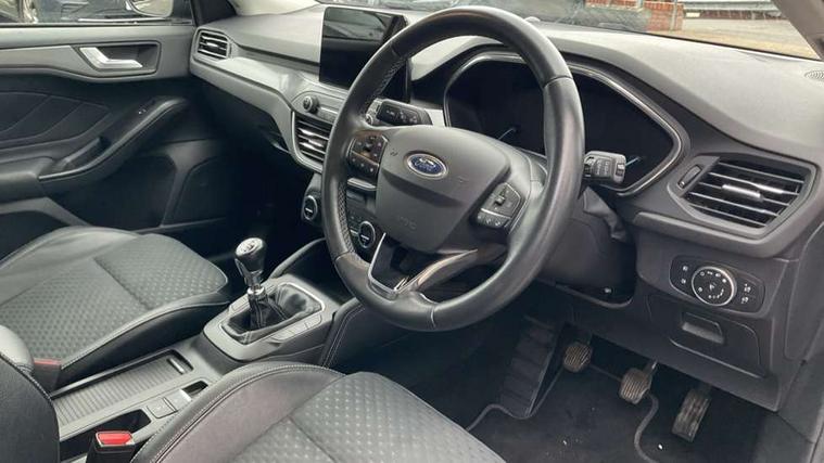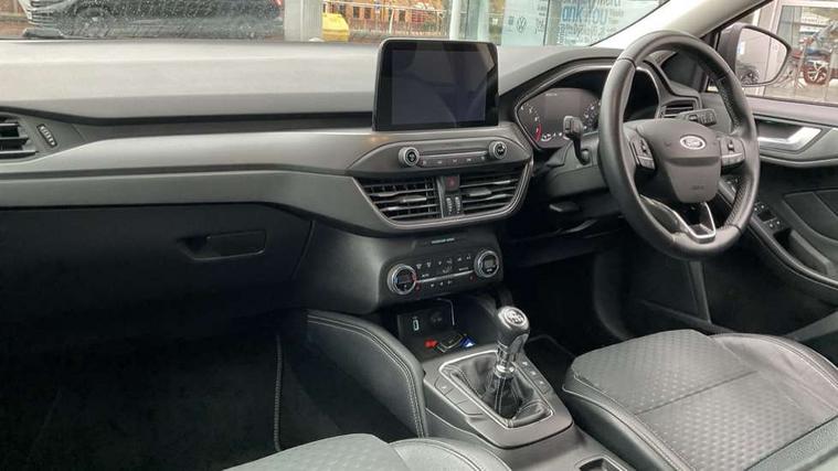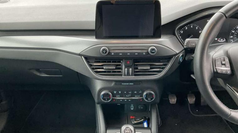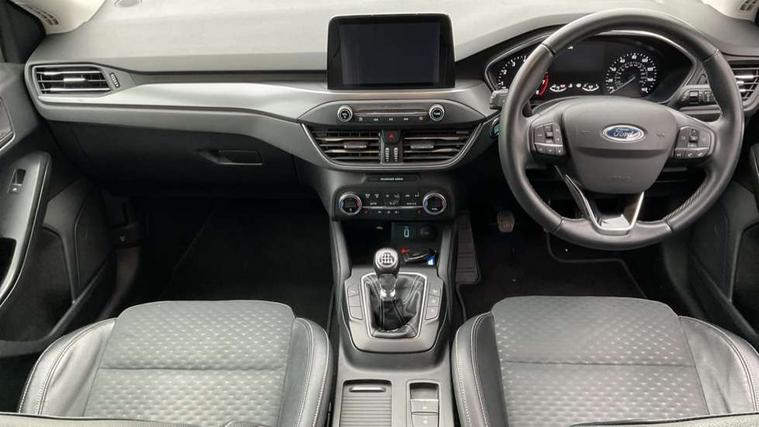 4" TFT coloured cluster screen, Bluetooth system, Digital clock, Easy fuel capless refuelling system, Eco mode, Ford pass connect, Ford SYNC 3 nav system with DAB radio, 8" colour touch screen, voice control, app link, Apple car play/Android auto and 4.2" TFT coloured cluster, Lane keeping aid with lane departure warning, PAS, Selectable drive mode, Trip computer, 2 USB ports, Aux input, 'Quickclear' heated windscreen/heated washer jets, Auto dimming rear view mirror, Auto headlamps (on/off), Automatic rain sensing wipers, Body colour large rear spoiler, Body coloured bumpers, Body coloured door handles, Body coloured electrically operated and heated door mirrors with side indicators, Electrically operated front and rear windows with one touch opening and closing, Front fog lamps with cornering function, Front variable intermittent wipers with electric wash, Heated rear window, LED daytime running lamp, LED rear lamps, Power folding door mirrors with puddle lights, Rear privacy glass, Tailgate wash/wipe, Unique door and instrument panel inserts, Upper grille with chrome surround and horizontal bars, 3 spoke leather trimmed steering wheel with integrated audio controls, 6 way power adjustable driver seat, 60/40 split back and cushion rear seats with 2 height adjustable headrests, Ambient lighting, Centre console with sliding front armrest, Dual zone electronic air temperature control, Front/rear floor mats, Heated front seats, Height adjustable front headrests, Isofix child seat preparation, Leather gear knob, Manual passenger seat height and lumbar adjust, Part leather upholstery, Reach + rake adjustable steering column, Rear centre headrest, Soft console knee pads, ABS+Electronic Brake force Distribution, Auto hold function, Driver airbag, Electronic parking brake, Electronic stability control, Front and rear seatbelt reminder, Front inertia reel height adjustable seatbelts with pre-tensioners, Front passenger airbag, Front side airbags, Hill start assist, Passenger airbag deactivate switch, Post collision braking, Pre collision assist with autonomous emergency braking and pedestrian/cyclist detection, Side curtain airbags, Three rear inertia reel lap/diagonal seatbelts, Tyre pressure monitoring system, Ford keyfree system with Keyless entry and keyless start, MyKey system, Remote central locking & engine immobiliser, Thatcham category 1 alarm, 17" 10x2 spoke luster nickel alloy wheels, Mini steel spare wheel,