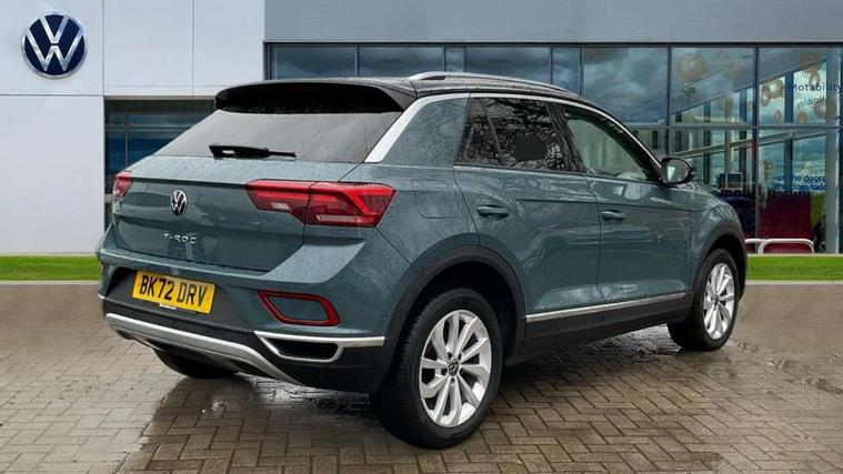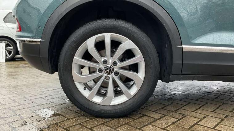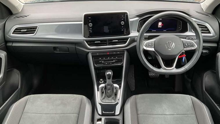 10.25" Digital cockpit pro, Bluetooth mobile phone interface, Driver alert system with fatigue detection, Driver tips and journey analysis, Emergency call service, Lane keeping system Lane Assist, Modified key software - reduce switch off time for key status change to Long no motion, Online services, Park assist including front and rear parking sensors, Service interval indicator, Tailgate/trunk lid release from outside, Think blue trainer driver tips and journey analysis, Warning sound and light for front seatbelts unfastened, Wireless app connect, Battery regeneration during braking, Start/stop function with battery regeneration, Diversity antenna for FM reception, Front and rear 6 speakers, Music playback - MP3, WMA and AAC files, Premium USB cable in choice of either Apple or Android smartphone compatibility, SD card slot, Simultaneous pairing of 2 compatible mobile devices, Title and cover art display, We Connect and We Connect Plus functionality, 3rd brake light, Auto dimming interior rear view mirror, Automatic hazard lights activation under emergency braking, Automatic headlight control with LED separate daytime running lights with coming/leaving home function, Body colour sports bumpers with silver metallic underbody fascia, Dynamic headlight range control with self adjusting whilst driving, Extended roof spoiler, Exterior mirrors aspherical on driver side, convex on front passenger side, External USB type C socket and charging sockets, Front windscreen wiper with intermittent wipe and 4 position delay, Heated rear window, LED Plus headlamps, LED rear combination lamps, LED rear number plate lights, LED tail lamp rear comination lamps, Light mode for poor weather, rain, fog or snow, Power windows with comfort operation and circuit breaker, Rain sensor, Rear exhaust tailpipe, Rear fog light on one side and reversing lights on both sides, Rear side wing doors, Rear wash/wipe with intermittent wipe setting, Remote electrically foldable door mirrors, puddle lights and reverse activated passenger's door mirror, 12V power socket in centre console, 3 rear head restraints, 3 seat bench in 2nd row, 4 load lashing points in luggage compartment, Air care climatronic air conditoning system with active combination filter and 2-zone temperature control, Chrome plated radiator grille inserts, air vent surrounds and light switch surrounds, Door and side trim panel with leatherette insert, Drawer under drivers seat, Front + rear carpet mats, Front centre armrest, Front comfort sports seats, Front cupholders x 2, Front footwell illumination, Instrument lighting, white adjustable panel illumination, Interior ambient lighting and surround lighting, Interior light delay, Isofix child seat preparation, Leather gearshift handle, LED interior light with switch off delay/dimmer and 2 front/rear LED reading lights, Load-through provision with cup holder when folded down ('Unsplit rear seat bench, split folding backrest, with centre armrest), Luggage compartment lighting, Non-folding front passenger seat backrest, Single front passenger seat, Storage compartment in left and right luggage area, Storage compartment in rear doors, Storage compartments in driver and front passenger doors, Sunvisors with illuminated vanity mirrors, Variable boot floor, height adjustable and removable, Driver assistance pack without proactive passenger protection - T-Roc, 3 point height adj front seatbelts + pretensioners, 3 point seatbelts in outer rear with ECE label, ABS, Child locks on rear doors, Driver and front passenger airbag with front passenger airbag deactivation, Driver and front passenger safety-optimised head restraints, Drivers seatbelt reminder, Electronic parking brake, Electronic Stability Control (ESC) inc EDL (Electronic Differential Lock) and ASR (Traction Control), Front and rear passengers curtain airbag system including front side airbags, Front assist with city emergency braking and pedestrian monitoring, Front seat side impact airbags, Predictive pedestrian protection, Rear disc brakes, Single tone horn, Tyre pressure loss indicator, Volkswagen roadside assistance, Alarm with interior protection, Anti-theft alarm system with interior monitoring, backup horn, and towing protection, Remote central locking with SAFELOCK, radio remote control with 2 remote control folding keys, Trims for alloy wheels,