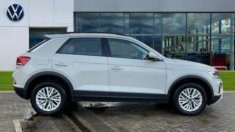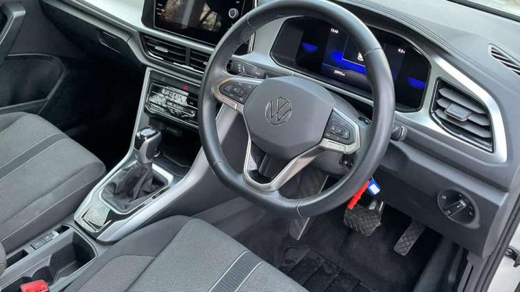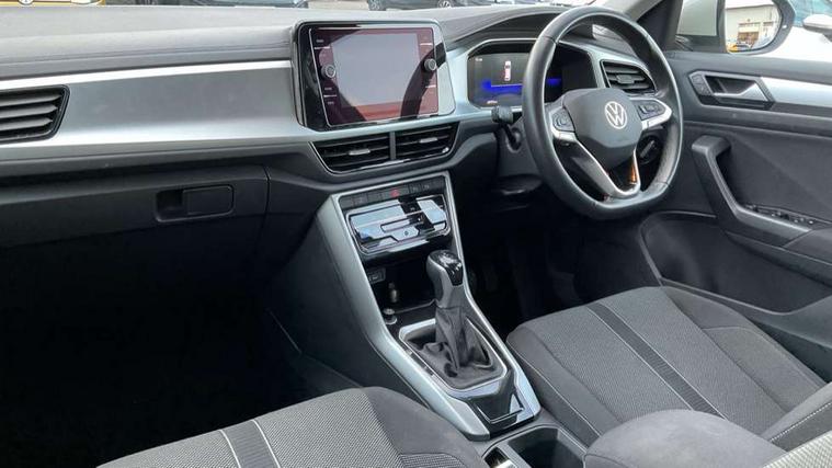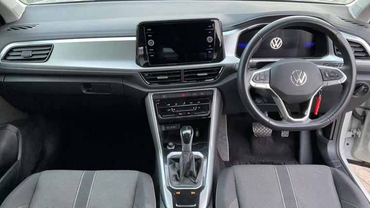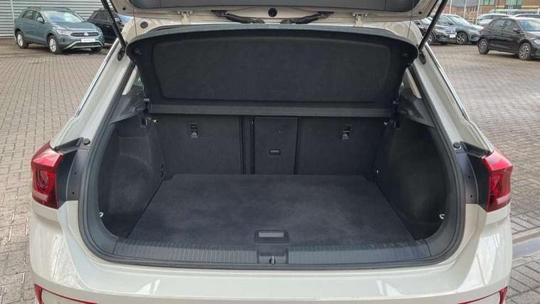 Bluetooth mobile phone interface, Driver alert system with fatigue detection, Driver tips and journey analysis, Emergency call service, Lane keeping system Lane Assist, Modified key software - reduce switch off time for key status change to Long no motion, Online services, Park assist including front and rear parking sensors, Power assisted speed sensitive steering, Service interval indicator, Tailgate/trunk lid release from outside, Think blue trainer driver tips and journey analysis, Warning sound and light for front seatbelts unfastened, Wireless app connect, Battery regeneration during braking, Front shock absorption, Rear shock absorption chassis with increased ride height, Start/stop function with battery regeneration, DAB Digital radio, Diversity antenna for FM reception, Music playback - MP3, WMA and AAC files, Premium USB cable in choice of either Apple or Android smartphone compatibility, SD card slot, Simultaneous pairing of 2 compatible mobile devices, Title and cover art display, We Connect and We Connect Plus functionality, 3rd brake light, Auto dimming interior rear view mirror, Automatic hazard lights activation under emergency braking, Automatic headlight control with LED separate daytime running lights with coming/leaving home function, Black roof rails, Body coloured bumpers and radiator grille with chrome trim and front fog lamps with chrome bezel, Body coloured exterior mirror housings and door handles, Extended roof spoiler, Exterior mirrors aspherical on driver side, convex on front passenger side, External USB type C socket and charging sockets, Front windscreen wiper with intermittent wipe and 4 position delay, Heated rear window, LED rear combination lamps, LED rear number plate lights, LED tail lamp rear comination lamps, Power windows with comfort operation and circuit breaker, Rain sensor, Rear exhaust tailpipe, Rear fog light on one side and reversing lights on both sides, Rear side wing doors, Rear wash/wipe with intermittent wipe setting, Remote electrically foldable door mirrors, puddle lights and reverse activated passenger's door mirror, 12V power socket in centre console, 3 rear head restraints, 3 seat bench in 2nd row, 4 load lashing points in luggage compartment, Air care climatronic air conditoning system with active combination filter and 2-zone temperature control, Ambient lighting with mirror logo projection, Cloth upholstery, Door and side trim panel in cloth, Drawer under drivers seat, Driver/front passenger seat height adjustment, Front centre armrest, Front comfort sports seats, Front cupholders x 2, Front reading light, Instrument lighting, white adjustable panel illumination, Interior light delay, Isofix child seat preparation, Leather gearshift handle, Load-through provision with cup holder when folded down ('Unsplit rear seat bench, split folding backrest, with centre armrest), Luggage compartment lighting, Lumbar support for driver's and front passengers seat, Non-folding front passenger seat backrest, Single front passenger seat, Storage compartment in left and right luggage area, Storage compartment in rear doors, Storage compartments in driver and front passenger doors, Sunvisors with illuminated vanity mirrors, Variable boot floor, height adjustable and removable, Driver assistance pack without proactive passenger protection - T-Roc, 3 point height adj front seatbelts + pretensioners, 3 point seatbelts in outer rear with ECE label, ABS, Child locks on rear doors, Driver and front passenger airbag with front passenger airbag deactivation, Driver and front passenger safety-optimised head restraints, Drivers seatbelt reminder, Electronic parking brake, Electronic Stability Control (ESC) inc EDL (Electronic Differential Lock) and ASR (Traction Control), Front and rear passengers curtain airbag system including front side airbags, Front assist with city emergency braking and pedestrian monitoring, Front disc brakes, Front seat side impact airbags, Hill start assist, Predictive pedestrian protection, Rear disc brakes, Single tone horn, Tyre pressure loss indicator, Volkswagen roadside assistance, Alarm with interior protection, Anti-theft alarm system with interior monitoring, backup horn, and towing protection, Remote central locking with SAFELOCK, radio remote control with 2 remote control folding keys, Pewter matt decorative inserts for intrument panel, centre console and door panels at the front, Trims for alloy wheels,