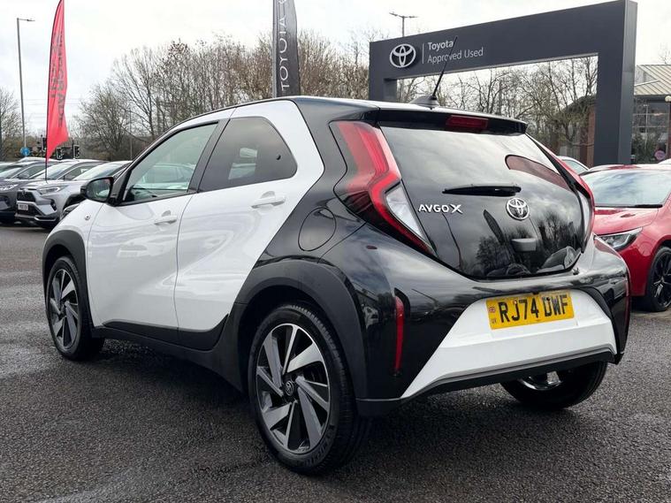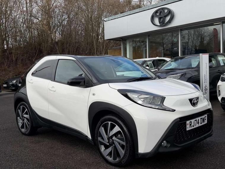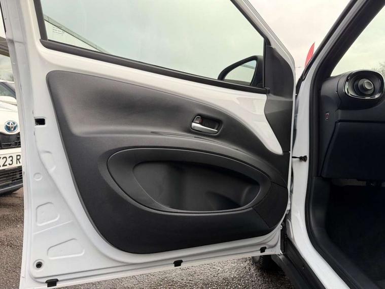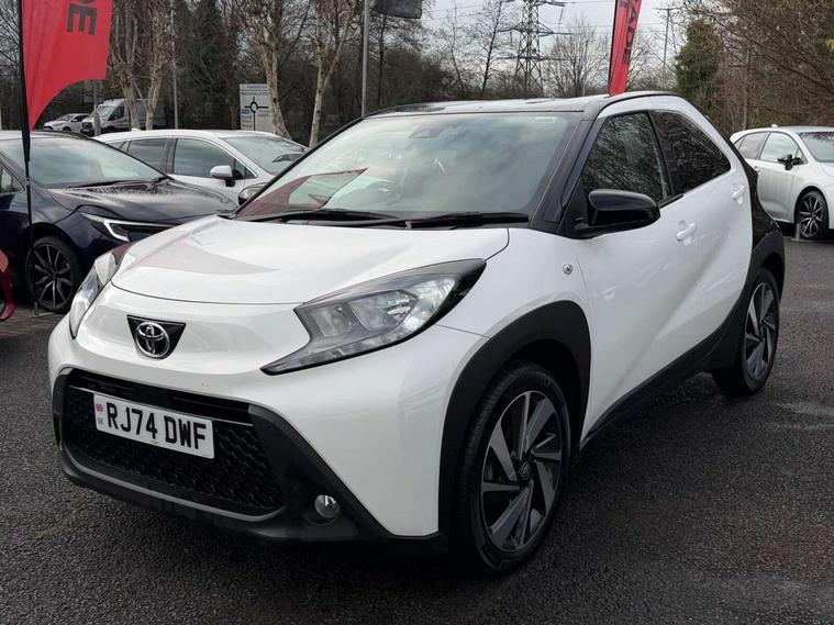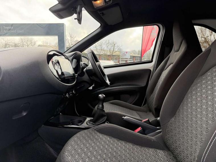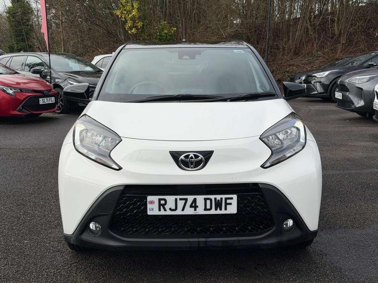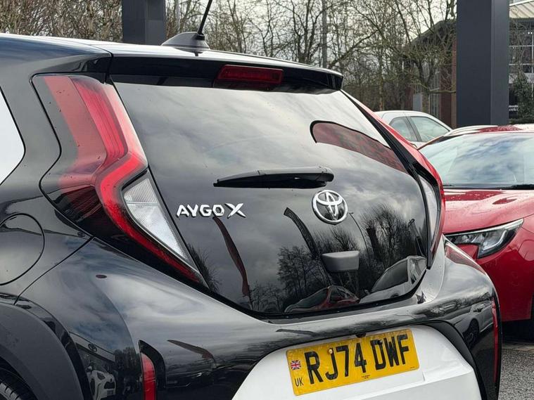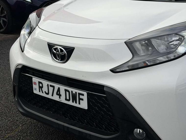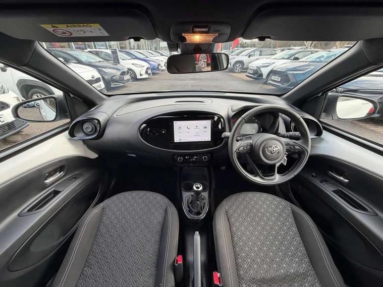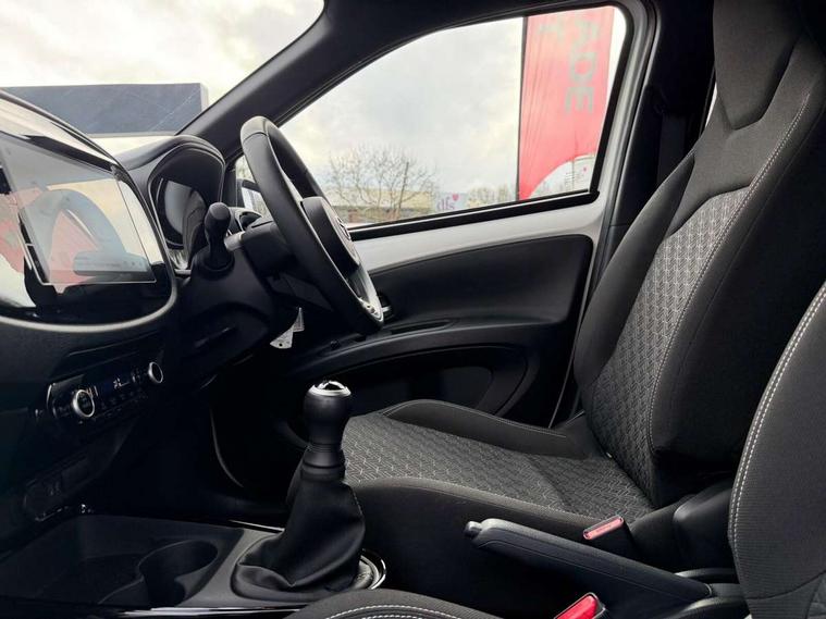 4.2" TFT colour screen, Adjustable speed limiter, Analogue speedometer, Bluetooth connectivity, Digital tachograph, Driver attention alert system, eCall emergency call system, Electric power steering, Intersection turn assist, Key reminder warning, Noise reduction kit, Pre collision system with emergency steering assist, Reversing camera with static guide lines, Smart phone integration with Apple car play/Android Auto, Speed limit display, Start and stop, Vehicle Stability Control (VSC), 4 speakers, 9" HD multimedia display touch screen with Toyota smart connect, DAB digital audio broadcast, USB connector, Auto headlights, Auto wipers, Automatic headlights cut-off, Bicycle towing hook, Black contrast roof, Black side protection mouldings, Black wheel arch mouldings, Body colour door handles, Body coloured front bumper, Boot door scuff plate, Eclipse black rear bumper, Electric heated door mirrors, Follow me home headlights, Front fog lights, Front power windows, Gloss black door mirrors, Gloss black upper front grille, Headlight cut-off reminder, LED daytime running lights, LED front light guide, LED High mounted stop lamp, Manual day/night rear view mirror, Manual headlight levelling, Pagoda roof, Power adjustable door mirrors, Power back door, Privacy glass, Projector halogen headlights, Rain sensor, Rear combination lights LED bulb type, Rear side wing doors, Rear windscreen defogger, Rear windscreen wiper, Short antenna, Variable intermittent windscreen wipers, 12v power outlet - front, 2 seat bench in 2nd row, 3 spoke leather steering wheel, 50/50 split folding rear seat, Adhesive roof headlining, Adjustable speed limiter switch on steering wheel, Audio and telephone switches on steering wheel, Auto air conditioning, Black insert on steering wheel, Black roof lining, Boot light, Centre room light, Chrome interior door handles, Chrome surround on air conditioning buttons, Clean air filter, Console box storage in body color, Fabric upholstery, Floor mats, Front and rear cup holders, Front head rest deco art, Front head restraints, Height adjustable driver seat, Intelligent adaptive cruise control switch on steering wheel, ISOFIX child restraint system on rear seats, Lane departure alert switch on steering wheel, Leather gearshift knob, Manual tilt steering wheel, Manually reclining and sliding driver seat, Manually reclining and sliding front passenger seat, Multimedia switches on steering wheel, Pollen filter, Rear door pockets, Rear head restraints, Satin silver insert on gear shift knob, Single compartment glovebox with lights, Single front passenger seat, Soft tonneau cover, Sun visors with mirror on driver and passenger side, Voice recognition switch on steering wheel, Toyota safety sense pack - Aygo X, Anti lock braking system + Electronic brake force distribution, Child safety door lock, Emergency brake light signal (EBS), Hill start assist control (HAC), Passenger airbag on/off switch, Seat belt reminder for front and rear seats, Supplement restraints system (SRS) - 6 airbags, Traction control, Tyre pressure warning system, Immobiliser, Remote power door locks, Black wheel centre caps, Tyre repair kit,