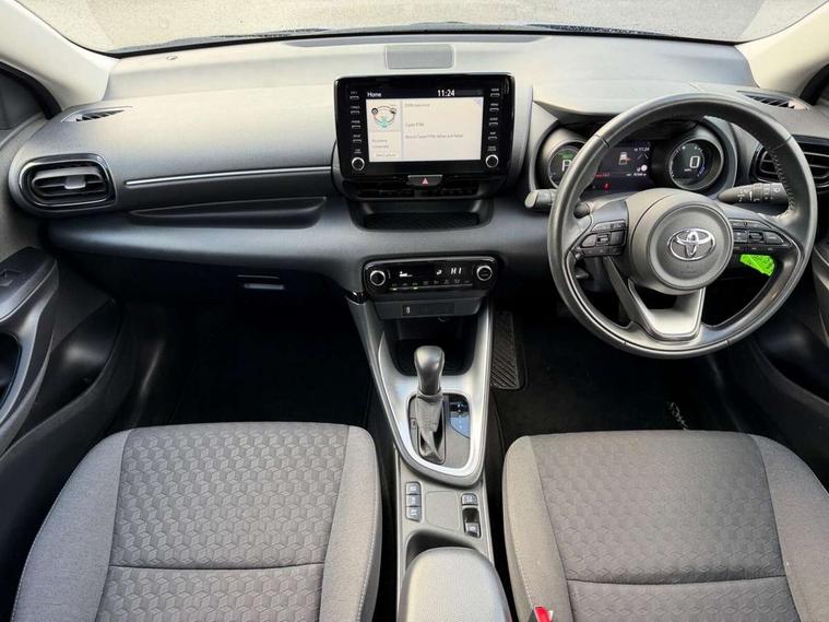 Adaptive cruise control, Adjustable speed limit with speed warning, Bluetooth connectivity, Colour binocular inspired displays with digital speedometer, E-call, Electric power steering, Hybrid energy display, Multi information display switches on steering wheel, Reversing camera, Smartphone integration with Apple CarPlay and Android auto, Tailgate, Voice recognition, Vehicle Stability Control (VSC), 4 speakers, 8" Multimedia display touch screen, USB connection, Acoustic windscreen glass, Auto windscreen wipers, Automatic headlights, Body coloured door mirrors, Electric adjustable heated door mirrors, Follow me home headlights, Front auto power windows with anti jam protection, Full LED rear lights, LED daytime running lights, LED front fog lights, LED front light guide, LED Headlights, LED High mounted stop lamp, LED Indicators, LED rear light guide, Manual headlight levelling, Painted chequered front grille, Rain sensor, Rear auto power windows with anti jam protection, Rear privacy glass, Rear side wing doors, Rear spoiler, Rear wiper, Shark fin antenna, Turning signal integrated indicators in door mirrors, Variable front intermittent wipers, 3 adjustable rear headrests, 3 spoke leather steering wheel, 60/40 split folding rear seat, Active headrests, Adjustable boot height, Auto air conditioning, Coat hooks in rear grab handles, Cup holders (2 front & door), Data Communication Module (DCM) connected services, Fabric upholstery, Front armrest, Glovebox, Grey roof lining, Height adjustable driver's seat, Isofix seat fixing, Leather gearshift, Pollen filter, Shopping bag hooks, Single front passenger seat, Tilt/telescopic steering column, 3 point seatbelts on all rear seats, ABS+EBD+Brake assist, Electronic parking brake, Emergency brake light system (EBS), Front passenger airbag on/off switch, Front seatbelt reminder, Hill start assist control (HAC), Rear child proof door locks, Rear seat belt reminder, Supplemental Restraint System (SRS) 8 airbags: Driver & passenger's airbags, dual side curtain airbags, side impact airbags, front centre airbag, Toyota Safety Sense 2, Precollison + Night time Pedestrian & Cyclist Detection, Lane Trace Assist, Auto High Beam, Intelligent ACC & Road Sign Assist, Tyre pressure warning system, 2x Master key, Alarm/immobiliser, Remote powered central double locking doors, Soft touch instrument panel, Space saver spare wheel,