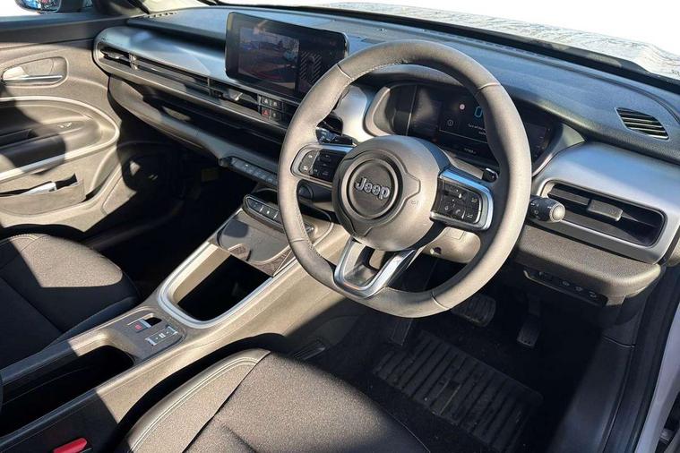 (AEB) Autonomous Emergency Braking with pedestrian and cyclist recognition, 10.25" Full TFT reconfigurable colour cluster, 180 Degree rear camera with drone view, 360 degree parking sensors, Adaptive cruise control, All-Terrain Mode Selector, Apple Carplay/Android Auto with wireless mirroring, BSRF connectivity box, Connectivity services, Drowsy driver detection system, eCall emergency call system, Keyless Start/Engine On Button, L2 Autonomous driving, Lane Centering, Lane keep assist, Odometer, PAS, Quick Guide English, Rear parking sensors, Rear view camera with dynamic grid lines, Telematic box and connected services, Traffic jam assist, Traffic sign recognition, Urban blind spot monitor, Warranty Booklet - UK, Wireless charging, Battery default, High efficiency alternator, Idle coasting, L2-AGM 12V battery, Rear USB port with type-C charging, 3rd brake light, 7 Slots grille in gloss black, All power windows express Up/Down, Automatic headlights, Automatic high/low beam, Body colour exterior door handles, Day time running light, Frameless auto dimming interior rear view mirror, Full LED headlights, Gloss black mirror caps, LED Fog lamps with cornering function, LED rear lights, Power foldable mirrors, Rain sensor, Rear side wing doors, Rear wiper, Silver skid plates, Welcome/leaving lighting, Wiring preperation for towing group by Mopar, 3 rear headrests, 3 seat bench in 2nd row, Automatic A/C (1 Zone), Central console dividers x2, Driver and front passenger sunvisor with vanity mirror, Foldable second row seats 40/60 - Fix and Fold, Front and rear velour floor mats, Front central armrest with storage, Front head restraints, Front passenger grab handle, Front passenger isofix child seat attachment, Front seat backrest pocket, Height adjustable cargo floor, I am Jeep label, Paddle shifter, Predisposal for tunnel pad cover, Single front passenger seat, Synthetic leather steering wheel, Tunnel pad cover and interior rubber mats "Jeep", Anti-lock braking system (ABS), Child locks on rear doors, Electric parking brake, ESC - Electronic Stability Control + traction control, Hill descent control, Kit fix and go predisposition/housing only, Rear seat ISOFIX, Three 3 point rear seatbelts, Volumetric anti theft alarm, Painted silver dashboard, 18" Diamond cut alloy wheels painted in matt black with summer not chainable, Fix and go tyre repair kit,