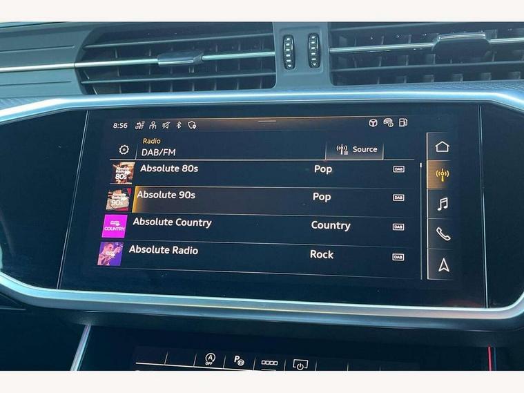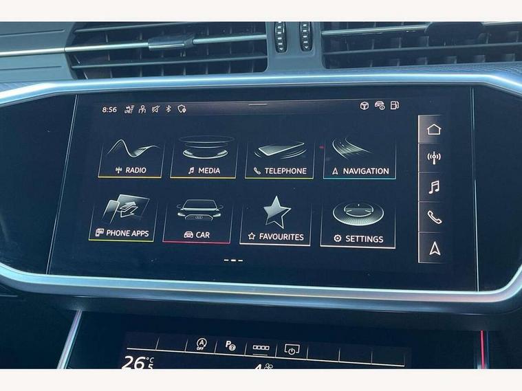 7" high resolution colour driver information display system, Audi connect safety and service (e-call), Audi drive select, Audi parking system plus - acoustic and visual park assist system for front and rear, Audi smartphone interface, Automatic start/stop system with coasting functionality, Bluetooth interface, Lane departure warning system, MMI navigation with MMI touch + twin touch screens 8.8" and 8.6" with haptic and acoustic feedback, Power operated tailgate, Progressive steering, Rear view camera, Service interval indicator, Voice control system, 12V Mild hybrid, Quattro on demand, Sports suspension, Audi music interface, Audi sound system, Auxiliary input socket, DAB Digital radio, USB connection, Black roof rails, Electric front/rear windows, Frameless auto dimming interior rear view mirror, Gloss black exterior mirror housings, Gloss black highlights on the exterior area of the Audi Single frame, Gloss black highlights on the front and rear bumpers, Gloss black highlights on the radiator grille, Gloss black highlights on the side windows trim strips, Headlight washers, Heat insulating glass in side and rear windows, Heat insulating glass in windshield, LED rear lights, LED signature front daytime running light, Matrix LED headlights with dynamic rear indicators, Matt black rear diffuser with diffuser strip and tailpipes in chrome, Matt black side air intake grille with inlay in matt aluminium, Privacy glass, Rain and light sensors, Rear roof spoiler, Signature rear LED light design, 2 zone deluxe electronic climate control, 4 way electric lumbar support for driver and front passenger, 40/20/40 split folding 3 rear seat bench in 3 parts with rear centre armrest, Black cloth headlining, Electrically adjustable front seats with driver memory, Front centre armrest, Front head restraints, Front/rear floor mats, Heated front seats, Height/reach adjust steering wheel, Illuminated door sill trims with S logo, Illuminated sun visors with vanity mirrors, ISOFIX child seat mounting and Top Tether with front passenger airbag deactivation, Leather gear knob, Luggage compartment system, Rear headrests, Stainless steel pedals and foot rest, Tool kit and car jack, LED Interior Ambient Lighting Pack - A6, Non smoking pack - A6, 3 point seatbelts on all seats, Airbags - Front side, front and rear including head, Audi pre-sense front, Black seatbelts, EBD - Electronic brakeforce distribution, Electromechanical parking brake, Electronic Stability Control (ESC) including ABS, ASR and EDL, Extended pedestrian protection measures, Seatbelt monitoring, Tyre pressure warning light, Warning triangle and first aid kit, Anti theft alarm with tow away protection, Anti-theft wheel bolts and wheel loosening detection, Immobiliser, Keyless Go, Remote central locking, Matt brushed aluminium dark inlays, 20" 5 V spoke star design Audi sport cast aluminium alloy wheels in matt titanium look,