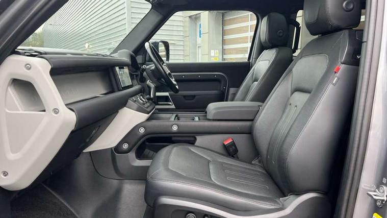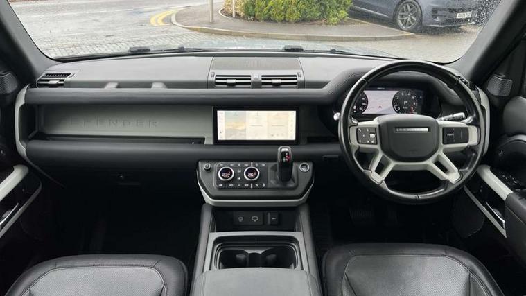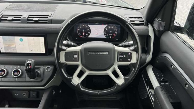 360 degree parking aid, 3D Surround Camera with 360 View, 180 Rear View, Front Traffic Detection, Forward Vehicle Guidance, Tow Hitch Assist and clear sight Ground View, Android Auto, Apple CarPlay, Assisted tailgate with soft close, Blind spot assist, Bluetooth system, Brake pad wear indicator, Clear exit monitor, Click and go integrated base unit, Connected navigation pro, Driver condition monitor, Electric power assisted steering (EPAS), Interactive driver display, Lane keep assist, Push button start, Rear traffic monitor, Traffic sign recognition with adaptive speed limiter, Trip computer, Wade Sensing, DAB Radio (Digital Audio Broadcasting), Meridian 400w sound audio system with 11 speakers and subwoofer, Pivi pro connected, Automatic headlight levelling, Automatic headlights, Black exposed rear recovery eyes, Centre high mounted stop light, Electric heated/power fold door mirrors with approach lights and auto dimming driver side, Electric windows with one touch open/close and anti-trap, Follow me home lighting, Front fog lights, Heated rear window with timer, Heated windscreen, Illuminated metal tread plates with brand name script, LED tail lights, Matrix LED headlights with signature DRL, Privacy glass, Puddle lights, Rain sensing windscreen wipers, Rear fog lights, Rear wiper, Trailer stability assist, X-Dynamic badge, 12V power socket in loadspace, 3 seat bench in 2nd row, Cabin lighting, Carpet mats, Durable rubber cabin flooring, Durable rubber loadspace flooring, Electric reach + rake adjustable steering column, Footwell lights, Loadspace cover, Loadspace Hook, Multifunction steering wheel, Overhead stowage for sunglasses, Rear headrests, Rear ISOFIX, Rear reading lights, Single front passenger seat, Storage glovebox, Sunvisors with illuminated vanity mirrors, Online pack with data plan - Defender, X-Dynamic exterior pack - Defender, 5 x 3 point seatbelts, ABS, Brake hold function, CBC - (Cornering brake control), Customer configurable autolock, Driver and passenger airbags, DSC - Dynamic Stability Control, EBD - Electronic brakeforce distribution, Electric parking brake (EPB), Emergency braking, ESP + traction control, Front airbags with passenger seat occupant detector, HDC - Hill descent control, Hill launch assist, Low traction launch, Remote for (e-Call, Optimised assistance call, InControl app, Climate, beep and flash and door), RSC - Roll stability control, Seat belt reminder, TPMS (Tyre pressure monitoring system), Alarm, Immobiliser, Intrusion sensor, Keyless entry and go, Locking wheel nuts,
