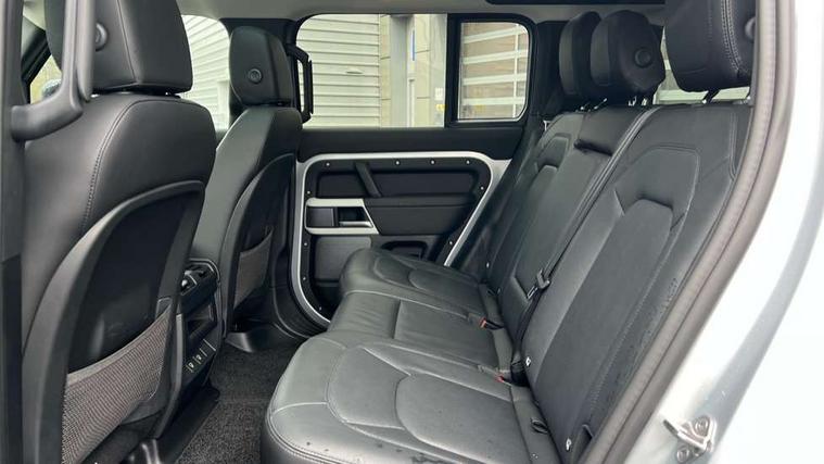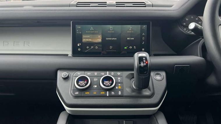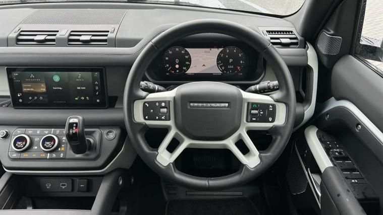 360 degree parking aid, 3D Surround Camera with 360 View, 180 Rear View, Front Traffic Detection, Forward Vehicle Guidance, Tow Hitch Assist and clear sight Ground View, Android Auto, Apple CarPlay, Assisted tailgate with soft close, Blind spot assist, Bluetooth system, Brake pad wear indicator, Clear exit monitor, Connected navigation pro, Cruise control + speed limiter, Driver condition monitor, Electric power assisted steering (EPAS), Interactive driver display, Lane keep assist, Push button start, Rear traffic monitor, Traffic sign recognition with adaptive speed limiter, Trip computer, Wade Sensing, 8 speed automatic transmission, Adaptive dynamics, All wheel drive system, Electronic air suspension, Twin speed transfer box, DAB Radio (Digital Audio Broadcasting), Pivi pro connected, Automatic headlight levelling, Automatic headlights, Body coloured roof, Centre high mounted stop light, ClearSight interior rear view mirror, Electric heated/power fold door mirrors with approach lights and auto dimming driver side, Electric windows with one touch open/close and anti-trap, Follow me home lighting, Front fog lights, Heated rear window with timer, Heated windscreen, Illuminated metal treadplates with brand name script, LED tail lights, Matrix LED headlights with signature DRL, Privacy glass, Puddle lights, Rain sensing windscreen wipers, Rear fog lights, Rear side wing doors, Rear wiper, Side hinged tailgate, Signature graphic (with interior storage), Sliding panoramic roof, Trailer stability assist, 12 way heated and cooled electric memory front seats with 2 way manual headrests, 12V power socket in loadspace, 3 seat bench in 2nd row, 40:20:40 folding rear seats with centre armrest, Alpine lights, Configurable cabin lighting, Durable rubber cabin flooring, Durable rubber loadspace flooring, Electric cabin pre conditioning, Electric reach + rake adjustable steering column, Footwell lights, Front centre console refrigerator compartment, Front passenger isofix child seat attachment, Grained Leather upholstery, Heated steering wheel, Leather gearshift, Light oyster morzine headlining, Loadspace cover, Loadspace Hook, Multifunction steering wheel, Overhead stowage for sunglasses, Premium cabin lighting, Rear headrests, Rear ISOFIX, Rear reading lights, Single front passenger seat, Standard interior, Standard leather steering wheel, Standard seat configuration, Storage glovebox, Sunvisors with illuminated vanity mirrors, Online pack with data plan - Defender, XS Edition exterior pack - Defender, 5 x 3 point seatbelts, ABS, Brake hold function, Cornering brake control (CBC), Cross car beam in light grey powder coat brushed finish, Customer configurable autolock, DSC - Dynamic Stability Control, EBD - Electronic brakeforce distribution, Electric parking brake (EPB), Emergency brake assist, Emergency braking, ESP + traction control, Front airbags with passenger seat occupant detector, HDC - Hill descent control, Hill launch assist, Low traction launch, Power operated child locks, Remote for (e-Call, Optimised assistance call, InControl app, Climate, beep and flash and door), RSC - Roll stability control, Seat belt reminder, TPMS (Tyre pressure monitoring system), Alarm, Immobiliser, Intrusion sensor, Keyless entry, Locking wheel nuts,