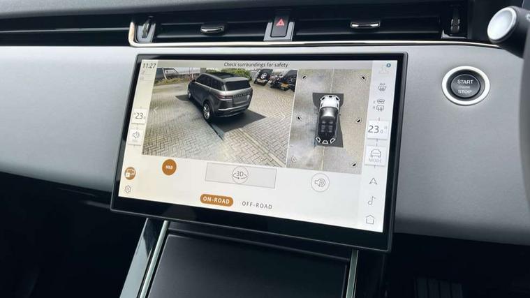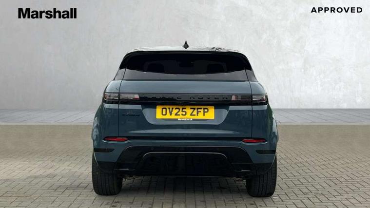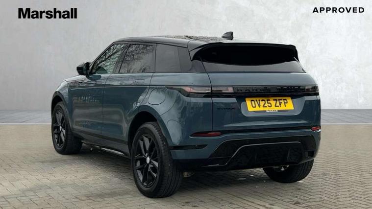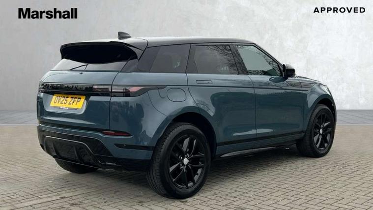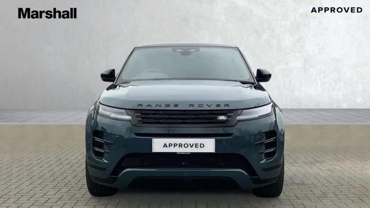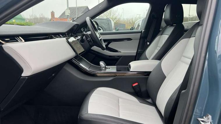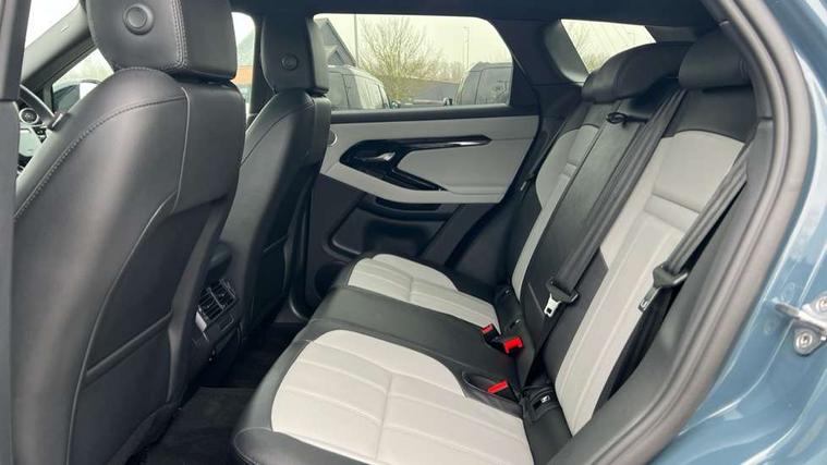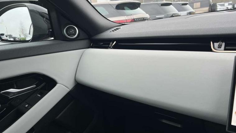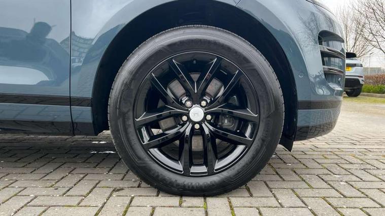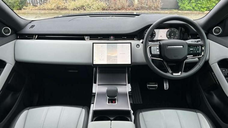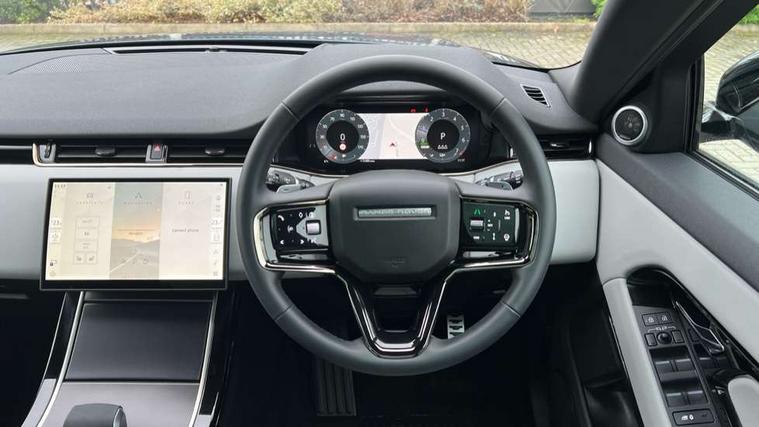 11.4" touch screen, 3D 360 degree surround camera with wade sensing, Adaptive cruise control, Android Auto, Apple car play, Blind spot assist, Bluetooth connectivity, Brake pad wear indicator warning light, Driver condition monitor, eCall emergency system, Eco mode, Electronic power assisted steering (EPAS), Front and rear parking aid, InControl remote, Interactive driver display, Land Rover InControl apps, Lane keep assist, Pivi pro connected includes diamond pivi variant, smart settings, connected navigation pro, nuance speech licence, Powered tailgate/boot lid, Rear collision monitor, Rear traffic monitor, Tailgate, Traffic sign recognition with adaptive speed limiter, Voice control system, Wireless device charging, All terrain progress control, Electric rear axle drive, Home charging cable, Large fuel tank, Passive suspension, Public charging cable, Terrain Response 2, Digital Audio Broadcast radio-DAB, Meridian sound system with 400W subwoofer and 11 speakers, Steering wheel mounted controls, Acoustic laminated windscreen, Auto dimming interior rear view mirror, Auto headlights, Auto high beam assist, Automatic headlight levelling, Black contrast roof, Electric windows with one touch open/close and anti trap, Fixed panoramic sunroof with powered sunblind, Flush deployable exterior door handles, Front and rear recovery eyes, Heated rear window with timer, Heated washer jets, Heated windscreen, LED headlights with signature DRL and LED tail Lights, Metallic paint, Power fold, auto-dimming, heated door mirrors with approach lights and auto dimming driver side, Privacy glass, Rain sensing windscreen wipers, Rear animated directional indicators, Rear fog lights, Rear side wing doors, Rear wiper, Tailgate spoiler, Third brake light, Winter wiper park position, 12 way driver memory and 10 way passenger electric front seats with 2 way manual headrest + 4 way lumbar support, 40:20:40 split folding rear seats with centre headrest and armrest, Bright metal pedals, Cabin lighting, Carpet mats, Chrome tread plates with range rover branding Includes stainless steel loadspace scuff plate with etched graphic, Customer configurable single point entry, Front and rear cupholders, Grained Leather upholstery, Heated front seats, Heated steering wheel, Isofix system on outer rear seats, Manually adjustable steering column, Overhead lighting console, Overhead stowage for sunglasses, Passive front head restraints, Rear air vents, Rear head restraints, Satin chrome gearshift paddles, Single passenger seat, Standard steering wheel with Moonlight Bezel, Sunvisors with illuminated vanity mirrors, Twin sliding front centre armrest, Two zone climate control, Black exterior styling pack - Evoque, Power socket pack 2 - Evoque, 3 rear 3 point seatbelts, Anti-lock braking system (ABS), Black brake calipers, Brake hold function, Customer configurable autolock, DSC - Dynamic Stability Control, Electronic brake force distribution, Electronic parking brake, Electronic traction control, Emergency braking, Front and rear seatbelt reminder, Hill descent control, Hill launch assist, Low traction launch, Occupant protection assist, Passenger seat occupant detector, Power operated child locks, Roll stability control, Six airbags - Driver and passenger airbags/driver knee airbag/front side airbag and curtain airbags, Torque vectoring brake, Tyre pressure monitoring system, Alarm, Immobiliser, Intrusion sensor, Keyless entry, Locking wheel nuts, Secure tracker pro, Black brushed aluminium finisher, 19" gloss black alloy wheels - Style 5136, All season tyres, Tyre repair system,