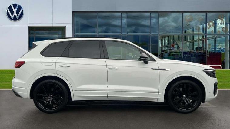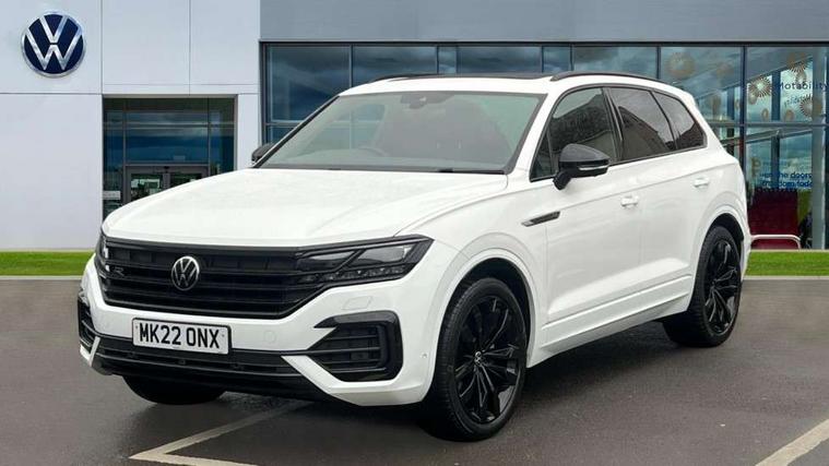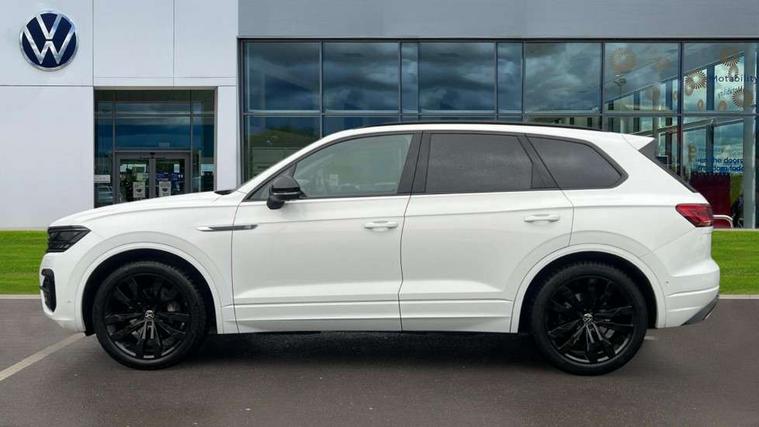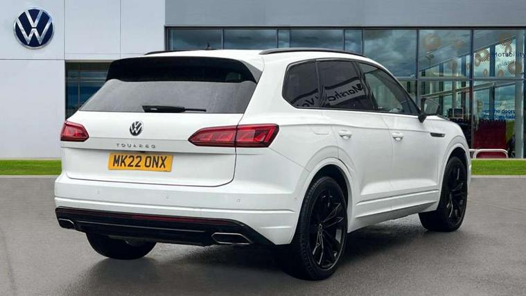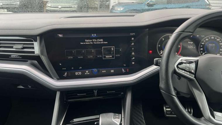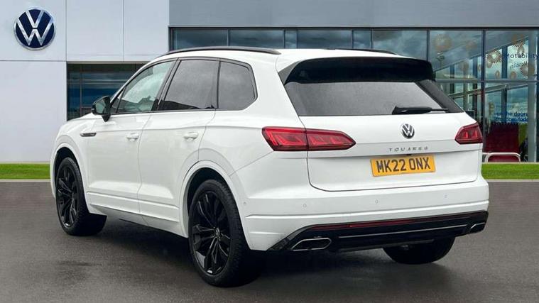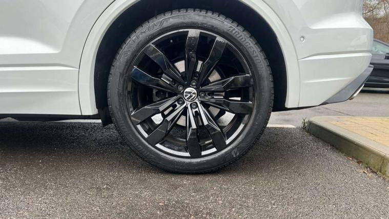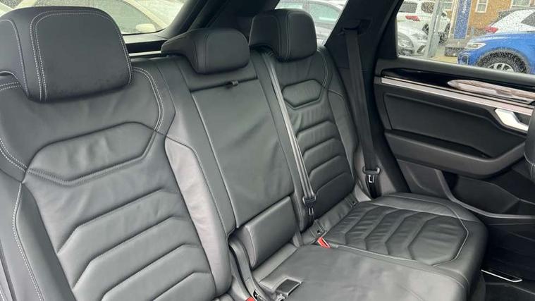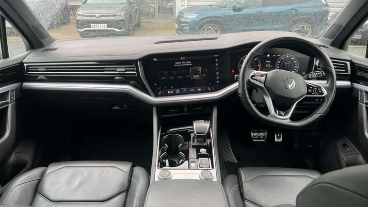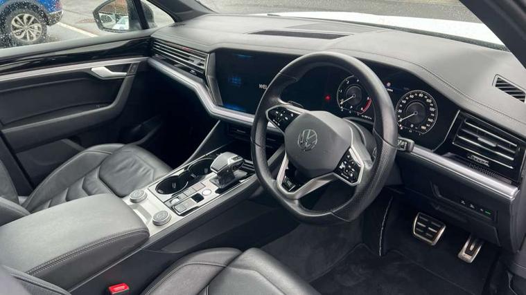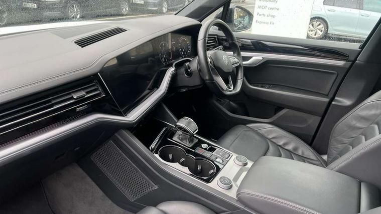 2D/3D map view, ACC - Adaptive cruise control with front assist, forward collision warning, distance monitoring, city emergency brake and speed limiter, Apple car play/Android Auto, Audible and visual fatigue detection system, Bluetooth hands free telephone connection, Car information display, Drive select with Damper control, Driver alert system, Driver profile selection, Dynamic road sign display camera controlled system with visual warning for traffic and road signs, eCall emergency system, Fully electric tailgate + keyless entry and start, Instrument cluster, MirrorLink, Multifunction camera with lane assist, Multifunction computer premium with 7" colour display, One touch indicators with repeat function, Service interval indicator, Speed sensitive power steering, Start/stop system with regenerative braking, Tailgate power latch, Think blue trainer driver tips and journey analysis, Traffic sign recognition, Voice control system, Wireless Smartphone charger, 24 litre AdBlue tank, Torsen limited slip differential, DAB Digital radio, Dynamic navigation based on TMC+, Gesture control for infotainment system, Multi device interface (MDI) with illuminated USB-C connection, Music playback - MP3, WMA and AAC files, SD card slot, Simultaneous pairing of 2 compatible mobile devices, SMS functionality - read, compose and send SMS messages using touch-screen display, Title and cover art display, Volkswagen media control, Adaptive low beam for urban and motorway use, Auto dimming rear view mirror, Automatic coming/leaving home lighting function, Automatic headlights, Black anodised roof rails, Black door mirrors, Black rear diffuser, Black side window surrounds, Black upper and lower grille louvres extending into headlights and radiator grille, Body colour door handles, Body coloured wheel arches, C signature gloss black front air intake, Chromed tailpipe on the left and right integrated in the bumper with trapezoid design, Dusk sensor, Dynamic headlight range control, Electric front tilt/slide panoramic sunroof and fixed rear sunroof, Electrically power adjustable, heated, folding, auto dimming, front passenger exterior door mirror lowering function, Front and rear electric windows, Galvanised body, Gloss black finish B pillar, Gloss black rear diffuser, Headlight washers, Heat insulating darkened glass in side and rear windows, Heated windscreen washer jets, IQ.Light-LED matrix headlight, daytime running light with dynamic cornering light and indicator, LED rear fog light, LED rear number plate lights, Plastic scuff plates in door apertures, Poor weather light, Puddle lights, Rain sensor, Rear side wing doors, Rear wiper, 12V socket in front and rear centre console and boot, 2 Coat hooks on B pillar, 3 rear head restraints, 3 spoke sport heated leather multi-function sports steering wheel with gear shift paddles - generation 2, 4 way adjustable front head restraints, 4 way electric lumbar support for driver and front passenger, 4 zone climate control, 40:20:40 split folding slide/recline rear seat, B pillar vents, Black lower edge of door extending sills, Branded points of interest, Double sun visor for drivier and passenger with LED illuminated vanity mirrors, Electric luggage compartment cover, Folding rear centre armrest with 2 cupholders, Front + rear carpet mats, Front centre armrest with storage box, Gear shift indicator, Height/reach adjust steering wheel, Illuminated air conditioned glovebox, Isofix preparation for 2 rear child seats, Jack and tool kit, Leather trimmed gear knob with gloss black inlay/aluminum trim, Leatherette door trim, LED luggage compartment lighting, Load through provision, Luggage compartment with load lashing rings, Plastic loading edge protection, Rear seat remote release levers, Soul black headlining, Stainless steel pedals, Innovision cockpit pack - Touareg, 3 point front seatbelts with pre-tensioners, ABS, Active bonnet, Automatic post collision braking system, Curtain airbags, Driver/Front Passenger airbags, EBD + Brake Assist, EDL, Electronic parking brake with auto hold, ESC with ASR, Front seat side impact airbags, Hill descent control, Hill start assist, Passenger airbag deactivate switch, Seatbelt warning lamp and buzzer, Three 3 point rear seatbelts, Two tone horn, Volkswagen roadside assistance, Warning triangle and first aid kit, Alarm with interior monitoring in cab, backup horn and towing protection, Child security locks for front and rear doors, Electronic engine immobiliser, Remote central locking, Black decorative trims on the side windows, High gloss black centre console,