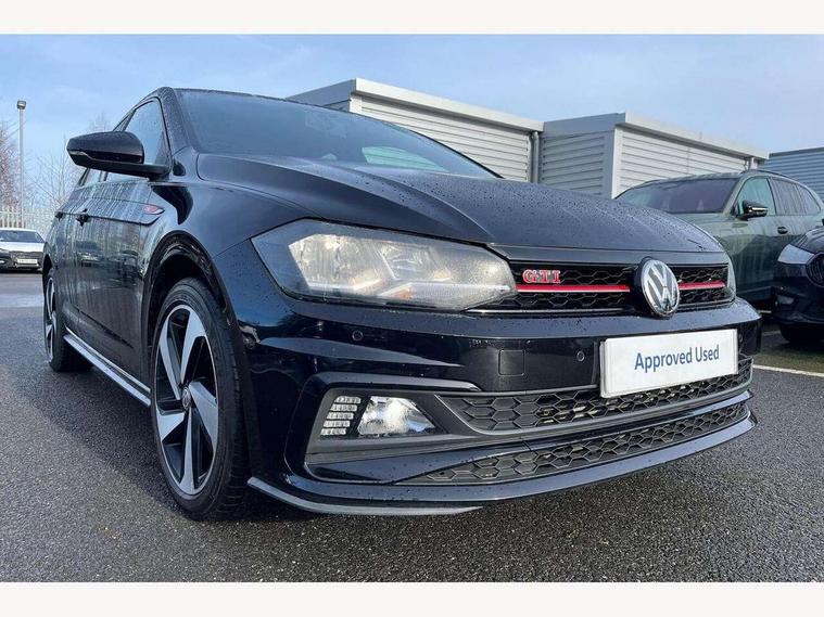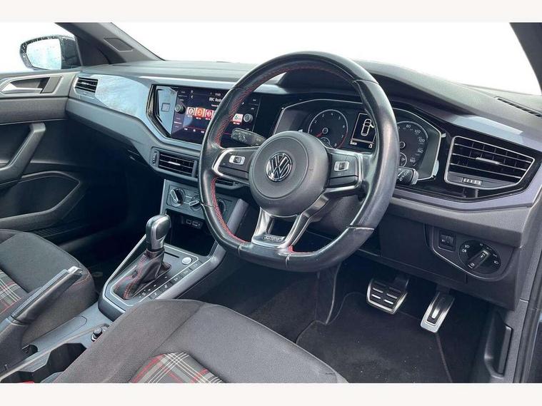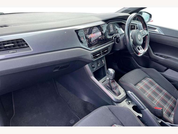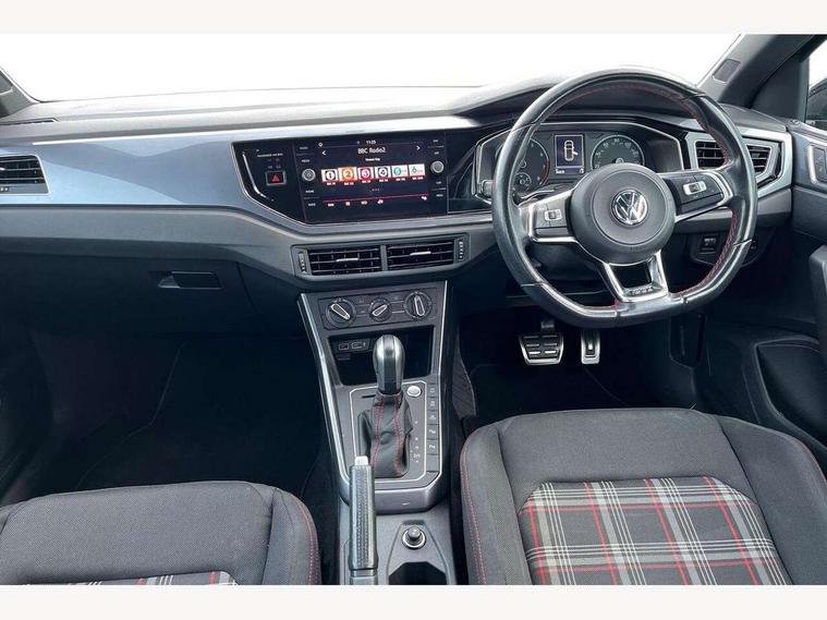 App-Connect, Digital clock, Driver alert system, Driving Mode Selection with four preset modes - Eco, normal, sport or individual modes, Lights on warning, Multifunction computer plus, Power assisted speed sensitive steering, Speedo and rev counter, electronic odometer, trip, service interval display and fuel gauge, Start/stop system, Volkswagen connect, Warning buzzer and light for front seatbelts unfastened, Battery regeneration during braking, Galvanished body, Lowered sports suspension, XDS electronic differential lock, Body colour door handles, Body coloured side sills, Electric front windows, Extended sill strips flared in black, Front fog lights including static cornering, Front windscreen washers and wipers with 4 speed intermittent delay, Gloss black rear spoiler (roof), Heat insulating tinted glass, Heated rear window with auto timer, High level 3rd brake light, Honeycomb radiator grille with red stripe, LED darkened rear light clusters, LED daytime running lights, LED rear number plate lights, Rear electric windows, Rear windscreen washer and wiper with interval delay, reverse activated, Stainless steel door sill protections with GTI logo, Twin chrome exhaust tailpipes, Unique GTI badging, 2 bag hooks in luggage compartment, 2 front cupholders and 12 V socket with cover, 3 rear head restraints, 60/40 split folding rear seat, AlumInium look pedals, Ambient lighting in front foorwell, front/rear door and dashboard light strips, Black roof lining and sun visors, Centre console storage with open storage compartment, Chrome-plated electric mirror adjustment switch surround, Chrome-plated electric window button surround, Driver and front passenger sunvisors with illuminated vanity mirrors, Dust/pollen filter, Folding rear seat backrest, Front and rear carpet mats with red stitching, Front head restraints, Front seat backrest storage pockets, Gear change selection via paddle shift on steering wheel, Gear lever gaiter in black trim surround, Glovebox, Handbrake grip button in chrome effect, Height/reach adjustable steering column, Instrument lighting, adjustable panel illumination, Interior light with delay, Isofix Preparation 2 Rear child seats, Jack and tool kit, Leather gear knob and handbrake grip, LED interior lighting - 2 reading lights front and rear with interior delay and dimming function, Luggage compartment cover, removable, Luggage compartment lighting, Luggage compartment with variable load floor, Storage compartment in front doors, Storage compartment in rear doors, Storage compartment under front seats, Three spoke leather trimmed multifunction steering wheel with GTI logo and red contrast stitching, GTI styling pack - Polo, 3 point height adj front seatbelts + pretensioners, 3x3 point rear seatbelts, ABS, Automatic post collision braking, Driver/front passenger airbag, Drivers and front passengers safety optimised head restraints, ESP with EDL + ASR, Front and rear passenger curtain airbags, Front passenger airbag deactivation, Front seat side impact airbags, Front/rear disc brakes, Hill hold control, Hydraulic Brake Assist (HBA), Red brake calipers, Single tone horn, Tyre pressure monitoring system, Alarm with interior protection and deactivation via infotainment system, Electronic engine immobiliser, Remote central locking with 2 remote folding keys, Chrome instrument surround detailing, Chrome plated air vent surround, Gloss black instrument surrounds, Steel space saver spare wheel,