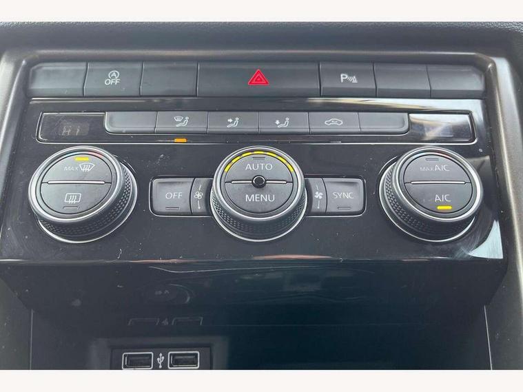 Adaptive cruise control, App-Connect, Automatic start/stop system, Bluetooth hands free telephone connection, Driver alert system with audible and visual fatigue detection system, Instrument cluster in white, Lane assist, Multifunction computer with visual gear change recommendation for fuel consumption, Power assisted speed sensitive steering, Warning sound and light for doors and tailgate open, Warning sound and light for front seatbelts unfastened, Battery regeneration during braking, CD/MP3/WMA, USB and SD card reader, Composition media system, DAB Digital radio, MDI multi device interface, Premium USB cable in choice of either Apple or Android smartphone compatibility, Auto dimming interior rear view mirror, Automatic hazard lights activation under emergency braking, Black grained lower door protectors, Black grained wheel arches, Body colour door handles, Body colour door mirrors with integrated indicators, Body colour sports bumpers with silver metallic underbody fascia, Chrome trim on upper and lower radiator grille, Door mirror puddle lights, Dusk sensor, Electrically foldable, adjustable and heated door mirrors with puddle lights and reverse activated kerb-view adjustment on passenger's door mirror, Front and rear electric windows, Front windscreen wiper with intermittent wipe and 4 position delay, Fully galvanised body, Heated rear window, High level 3rd brake light, LED rear number plate lights, Manual coming/automatic leaving home lighting function, Rain sensor, Rear tinted glass from B-pillar backwards approx 65% tinted, Rear windscreen washer and wiper with interval delay, 12V socket in centre console storage area, 2 LED front and rear reading lights, 3 rear head restraints, 4 load lashing points in luggage compartment, Ambient lighting in front footwell and light strips below trim in front doors, Climate control - 2 zone electronic air conditioning with automatic air recirculation and allergy filter, Drawer under drivers seat, Front centre armrest with storage compartment, longitudinal and height adjustable and two rear air vents, Front cupholders x 2, Front footwell illumination, Front seat back storage pockets, Glovebox, Height adjustable front seats, Height/reach adjust steering wheel, Illuminated vanity mirrors, Instrument lighting, white adjustable panel illumination, Interior light delay, Isofix easy fit child seat preparation for 2 outer rear seats, Load through provision with single cup holder when folded down, Luggage compartment cover, removable, Luggage compartment lighting, Split folding rear seat backrests with centre armrest, Storage compartment in left and right luggage area, Storage compartment in rear doors, Storage compartments in driver and front passenger doors, Variable boot floor, height adjustable and removable, 3 rear three point seatbelts, ABS, Driver and front passenger safety-optimised head restraints, Electronic parking brake with auto hold, ESC with EDL, ASR, EDTC and trailer stabilisation function, Front and rear curtain airbags, driver and front passenger airbags with passenger deactivation switch and front side impact airbags, Rigid safety cell with front and rear crumple zones, Three point height adjust front seatbelts + pretensioners, Tyre pressure loss indicator, Ventilated front and rear disc brakes, Volkswagen roadside assistance, Alarm with remote central locking and interior protection, Electronic engine immobiliser, Remote central locking with 2 remote folding keys, Space and weight saver spare wheel,