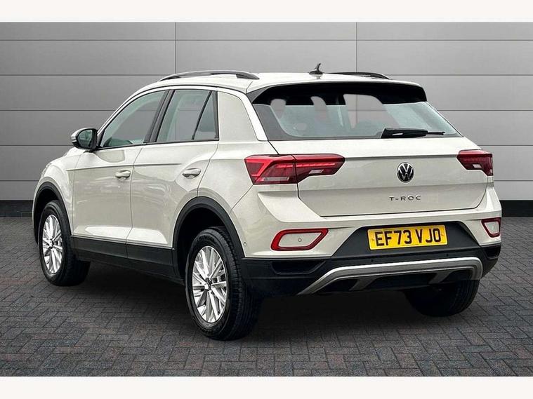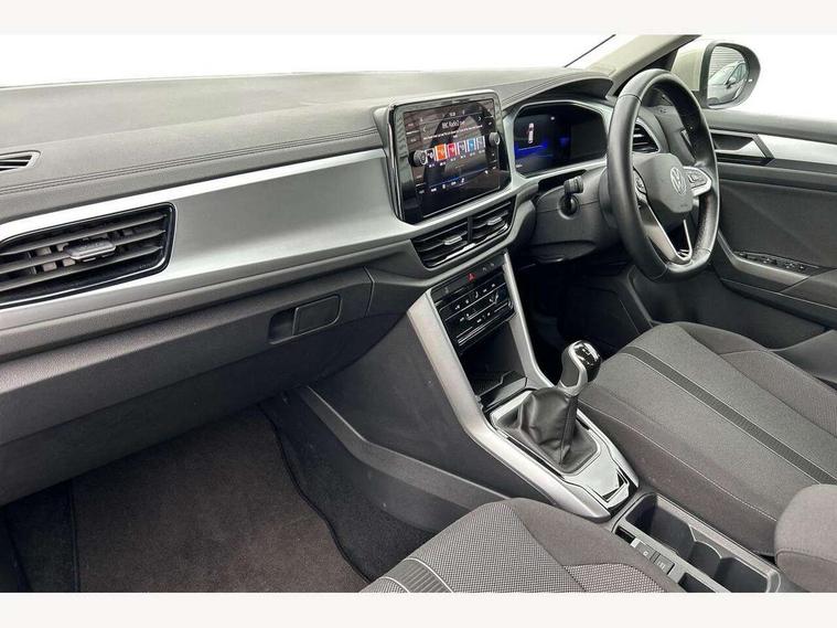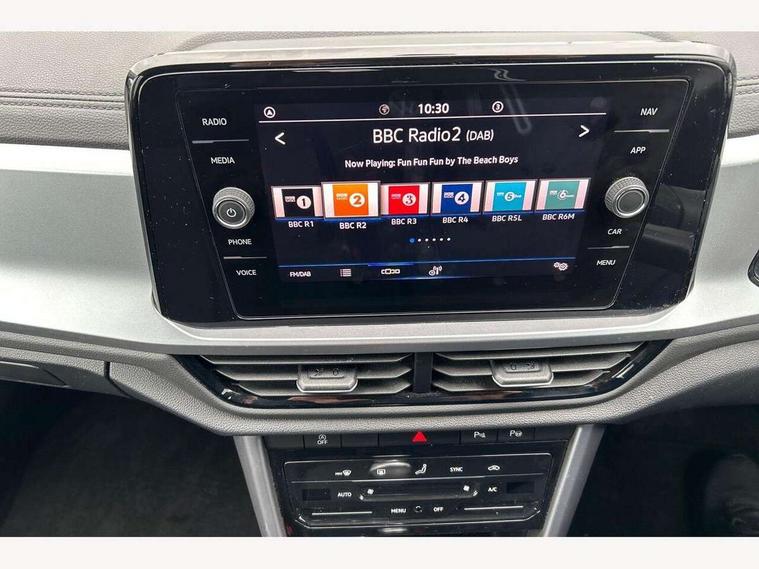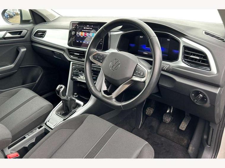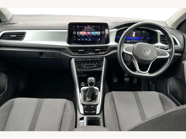 Bluetooth mobile phone interface, Driver alert system with fatigue detection, Driver tips and journey analysis, Emergency call service, Lane keeping system Lane Assist, Modified key software - reduce switch off time for key status change to Long no motion, Online services, Park assist including front and rear parking sensors, Power assisted speed sensitive steering, Service interval indicator, Tailgate/trunk lid release from outside, Think blue trainer driver tips and journey analysis, Warning sound and light for front seatbelts unfastened, Wireless app connect, Battery regeneration during braking, Front shock absorption, Rear shock absorption chassis with increased ride height, Start/stop function with battery regeneration, DAB Digital radio, Diversity antenna for FM reception, Music playback - MP3, WMA and AAC files, Premium USB cable in choice of either Apple or Android smartphone compatibility, SD card slot, Simultaneous pairing of 2 compatible mobile devices, Title and cover art display, We Connect and We Connect Plus functionality, 3rd brake light, Auto dimming interior rear view mirror, Automatic hazard lights activation under emergency braking, Automatic headlight control with LED separate daytime running lights with coming/leaving home function, Black roof rails, Body coloured bumpers and radiator grille with chrome trim and front fog lamps with chrome bezel, Body coloured exterior mirror housings and door handles, Extended roof spoiler, Exterior mirrors aspherical on driver side, convex on front passenger side, External USB type C socket and charging sockets, Front windscreen wiper with intermittent wipe and 4 position delay, Heated rear window, LED rear combination lamps, LED rear number plate lights, LED tail lamp rear comination lamps, Power windows with comfort operation and circuit breaker, Rain sensor, Rear exhaust tailpipe, Rear fog light on one side and reversing lights on both sides, Rear side wing doors, Rear wash/wipe with intermittent wipe setting, Remote electrically foldable door mirrors, puddle lights and reverse activated passenger's door mirror, 12V power socket in centre console, 3 rear head restraints, 3 seat bench in 2nd row, 4 load lashing points in luggage compartment, Air care climatronic air conditoning system with active combination filter and 2-zone temperature control, Ambient lighting with mirror logo projection, Cloth upholstery, Door and side trim panel in cloth, Drawer under drivers seat, Driver/front passenger seat height adjustment, Front centre armrest, Front comfort sports seats, Front cupholders x 2, Front reading light, Instrument lighting, white adjustable panel illumination, Interior light delay, Isofix child seat preparation, Leather gearshift handle, Load-through provision with cup holder when folded down ('Unsplit rear seat bench, split folding backrest, with centre armrest), Luggage compartment lighting, Lumbar support for driver's and front passengers seat, Non-folding front passenger seat backrest, Single front passenger seat, Storage compartment in left and right luggage area, Storage compartment in rear doors, Storage compartments in driver and front passenger doors, Sunvisors with illuminated vanity mirrors, Variable boot floor, height adjustable and removable, Driver assistance pack without proactive passenger protection - T-Roc, 3 point height adj front seatbelts + pretensioners, 3 point seatbelts in outer rear with ECE label, ABS, Child locks on rear doors, Driver and front passenger airbag with front passenger airbag deactivation, Driver and front passenger safety-optimised head restraints, Drivers seatbelt reminder, Electronic parking brake, Electronic Stability Control (ESC) inc EDL (Electronic Differential Lock) and ASR (Traction Control), Front and rear passengers curtain airbag system including front side airbags, Front assist with city emergency braking and pedestrian monitoring, Front disc brakes, Front seat side impact airbags, Hill start assist, Predictive pedestrian protection, Rear disc brakes, Single tone horn, Tyre pressure loss indicator, Volkswagen roadside assistance, Alarm with interior protection, Anti-theft alarm system with interior monitoring, backup horn, and towing protection, Remote central locking with SAFELOCK, radio remote control with 2 remote control folding keys, Pewter matt decorative inserts for intrument panel, centre console and door panels at the front, Trims for alloy wheels,