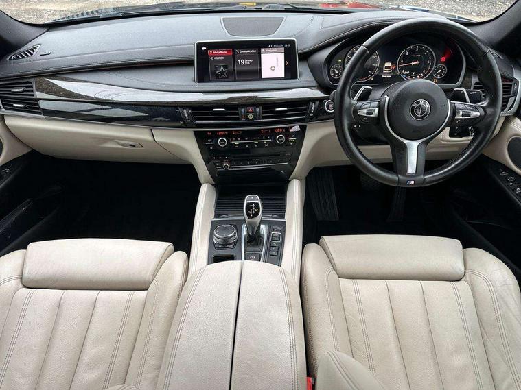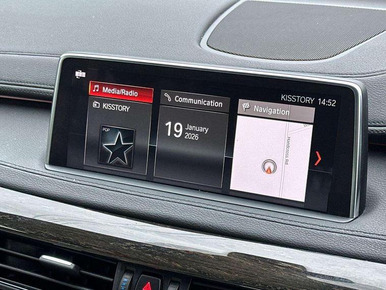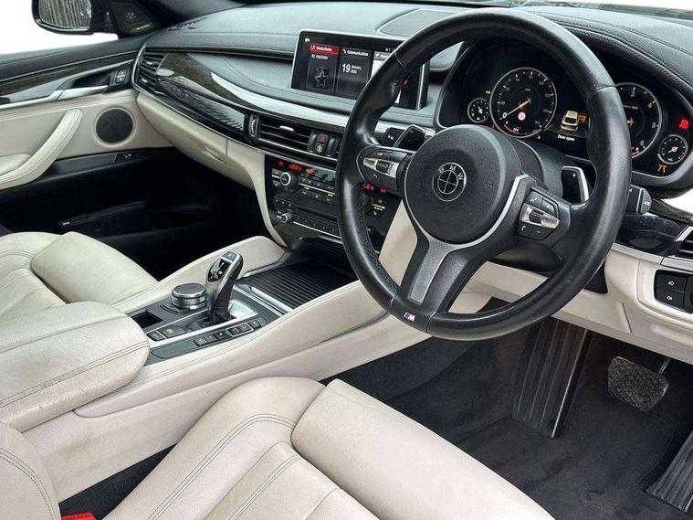 20GB Hard drive, 6.5" colour display screen, BMW apps interface, BMW information plus, BMW remote services, BMW Teleservices, Brake force display, Check control system, Electric tailgate release, Front/rear park distance control, Lights on warning, On board computer, Outside temperature gauge, Personal Profile, Professional multimedia navigation system, Service interval indicator, Servotronic PAS, Stop/start button, Voice control system, Adaptive M suspension, Diesel particulate filter, Auxiliary point for auxiliary devices, BMW professional twin tuner radio with single CD player and MP3 CD playback facility, DAB Digital radio, Auto dimming and folding door mirrors, Auto dimming rear view mirror, Body colour bumpers, Body colour door handles, Body colour door mirrors, Chrome exhaust tailpipes, Clear indicator lenses, Door mirror integrated indicators, Double kidney grille with high gloss black surround and black slats, Downlights in exterior door handles, Electric + heated aspheric door mirrors, Electric front/rear windows with anti-trap, Electric headlight adjustment, Follow me home headlights, Green tinted glass, Headlight washer jets, Heat insulated glass, Heated washer nozzles, High gloss black air breather, M aerodynamic body kit, Rain sensor with auto light activation system, Stainless steel sill finishers, Xenon headlights, 12V accessory power point in centre console, 12v socket in front centre armrest storage compartment, 12V socket in luggage compartment, 2 x 12V socket in rear centre console, 3 spoke sports leather multi-function steering wheel with gear shift paddles, 40:20:40 split folding rear seats, Ambient interior lighting, Anthracite Velour floor mats, Boot lashing points, Door sills with M logo, Driver and passenger knee pads, Electric front seats + driver memory, Front and rear cupholders, Front armrest with storage bin, Front reading lights, Front/rear courtesy lights with soft on/off dimming, Full black panel display, Heated front seats, Height adj rear head restraints, Illuminated glovebox with lock, Isofix child seat preparation, LED footwell lights, Luggage compartment cover, removable, Reach + rake adjustable steering column, Storage bins on all doors, Sunvisors with illuminated vanity mirrors, Tilt/height adjustable front head restraints, Toolkit located in luggage compartment, Extended storage pack - X6, 3 rear 3 point seatbelts, ABS, ADB - Automatic Differential Brake, Automatic Stability Control (ASC), BMW emergency call, Brake energy regeneration, Child locks on rear doors, Cornering brake control (CBC), Crash Sensor - activates hazard/interior lighting + unlocks doors, Driver/Front Passenger airbags, DSC+, Dynamic brake control, Dynamic Traction Control - DTC, Electronic brake force distribution, Electronic parking brake, Front and rear head airbags, Front passenger airbag deactivation, Front passenger seat occupancy sensor, Front side airbags, Height adjustable front seatbelts, Hill descent control, Hill start assist, Pyrotechnically pre-tensioned front seatbelts, Seat belt force limiter, Side impact protection, Tyre pressure monitor, Warning triangle and first aid kit, Locking wheel nuts, Remote central locking, Thatcham cat 1 remote alarm/immobiliser, Run flat tyres,