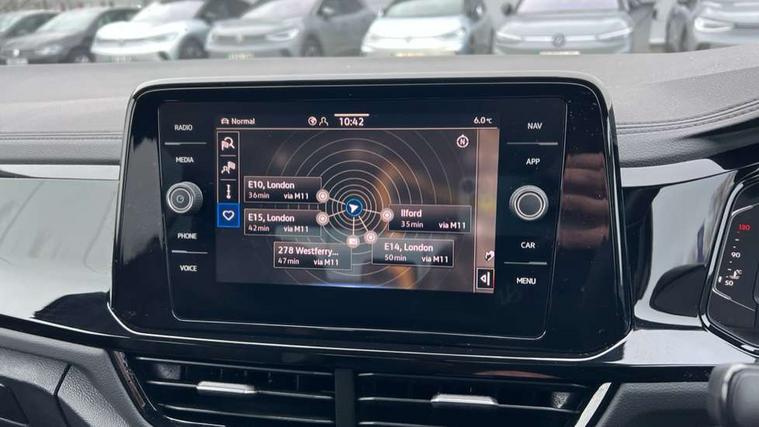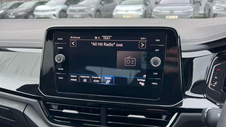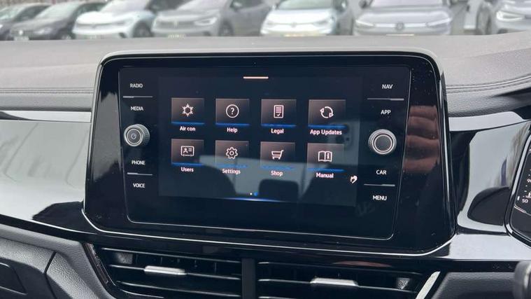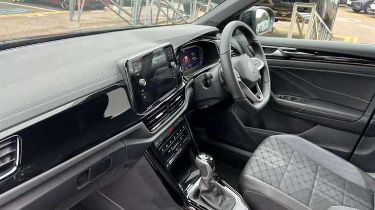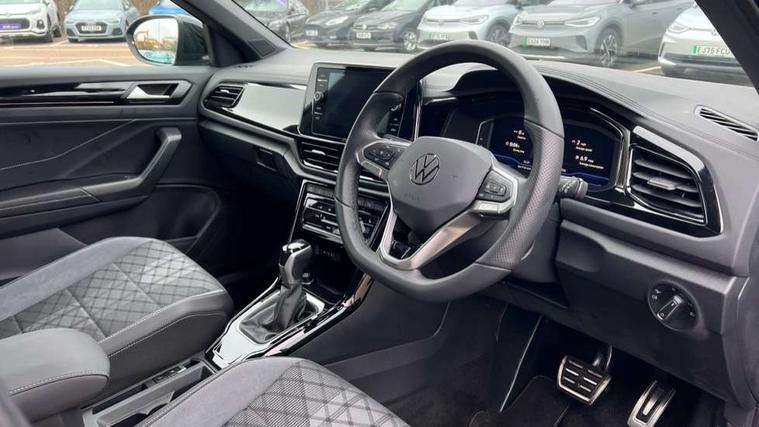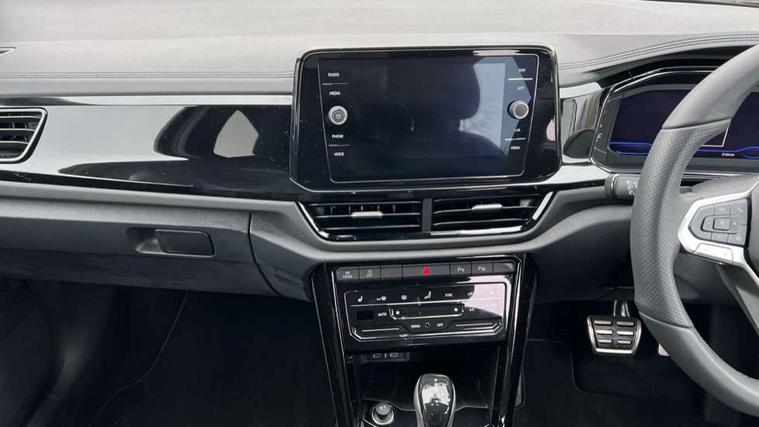 10.25" Digital cockpit pro, Advanced driver attention and drowsiness monitor, Emergency call service, Lane keeping system Lane Assist, Mobile phone interface, Modified key software - reduce switch off time for key status change to Long no motion, Online services, Park assist including front and rear parking sensors, Power assisted speed sensitive steering, Service interval indicator, Tailgate/trunk lid release from outside, Think blue trainer driver tips and journey analysis, Warning sound and light for front seatbelts unfastened, Wireless app connect, Battery regeneration during braking, Rear shock absorption chassis with increased ride height, Start/stop function with battery regeneration, DAB Digital radio, Diversity antenna for FM reception, Front and rear 6 speakers, Music playback - MP3, WMA and AAC files, Premium USB cable in choice of either Apple or Android smartphone compatibility, SD card slot, Simultaneous pairing of 2 compatible mobile devices, Title and cover art display, We Connect and We Connect Plus functionality, Auto dimming interior rear view mirror, Automatic hazard lights activation under emergency braking, Automatic headlight control with LED separate daytime running lights with coming/leaving home function, Dynamic cornering light, Electrically adjustable and heated door mirrors, Extended roof spoiler, Exterior mirrors aspherical on driver side, convex on front passenger side, External USB type C socket and charging sockets, Front windscreen wiper with intermittent wipe and 4 position delay, Heated rear window, Illuminated front grille, IQ LED matrix headlights, LED 3rd brake light, LED rear number plate lights, LED rear tail lights with dynamic turn signal, Light mode for poor weather, rain, fog or snow, Power windows with comfort operation and circuit breaker, R-Line design body coloured bumpers, Rain sensor, Rear exhaust tailpipe, Rear fog light on one side and reversing lights on both sides, Rear side wing doors, Rear wash/wipe with intermittent wipe setting, Remote electrically foldable door mirrors, puddle lights and reverse activated passenger's door mirror, 12V power socket in centre console, 3 rear head restraints, 3 seat bench in 2nd row, 4 load lashing points in luggage compartment, Air care climatronic air conditoning system with active combination filter and 2-zone temperature control, Artvelours cloth upholstery, Black roof lining, Chrome plated radiator grille inserts, air vent surrounds and light switch surrounds, Door and side trim panel with leatherette insert, Drawer under drivers seat, Driver seat height adjust, Driver's seat lumbar support, Front + rear carpet mats, Front centre armrest, Front comfort sports seats, Front cupholders x 2, Front footwell illumination, Front reading light, Front scuff plates with R Line logo, Front seat back storage pockets, Glove compartment door with light, Instrument lighting, white adjustable panel illumination, Interior ambient lighting and surround lighting, Interior light delay, Isofix child seat preparation, Leather gearshift handle, Leather wrapped multifunction steering wheel with paddle shift, Load-through provision with cup holder when folded down ('Unsplit rear seat bench, split folding backrest, with centre armrest), Luggage compartment lighting, Non-folding front passenger seat backrest, Passenger seat height adjuster, Passenger seat lumbar support, Single front passenger seat, Stainless steel pedals, Storage compartment in left and right luggage area, Storage compartment in rear doors, Storage compartments in driver and front passenger doors, Sunvisors with illuminated vanity mirrors, Variable boot floor, height adjustable and removable, Winter pack without heated windscreen washer jets - T-Roc, 3 point height adj front seatbelts + pretensioners, 3 point seatbelts in outer rear with ECE label, ABS, Child locks on rear doors, City emergency braking and pedestrian monitoring, Driver and front passenger airbag with front passenger airbag deactivation, Driver and front passenger safety-optimised head restraints, Drivers seatbelt reminder, Electronic parking brake, Electronic Stability Control (ESC) inc EDL (Electronic Differential Lock) and ASR (Traction Control), Front and rear passengers curtain airbag system including front side airbags, Front disc brakes, Hill start assist, Predictive pedestrian protection, Rear disc brakes, Two tone horn, Tyre pressure loss indicator, Volkswagen roadside assistance, Tool kit, Trims for alloy wheels, Tyre mobility kit including compressor and sealing foam,