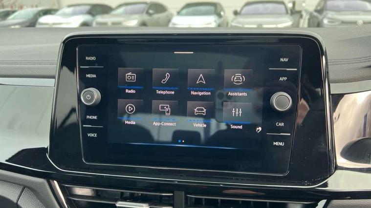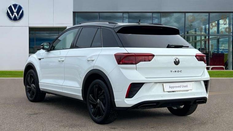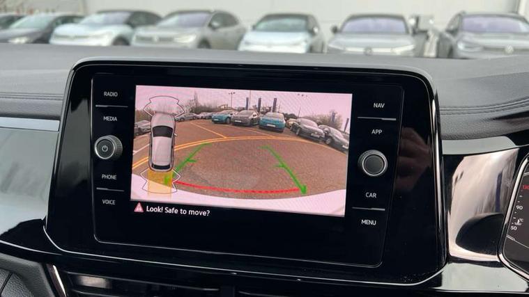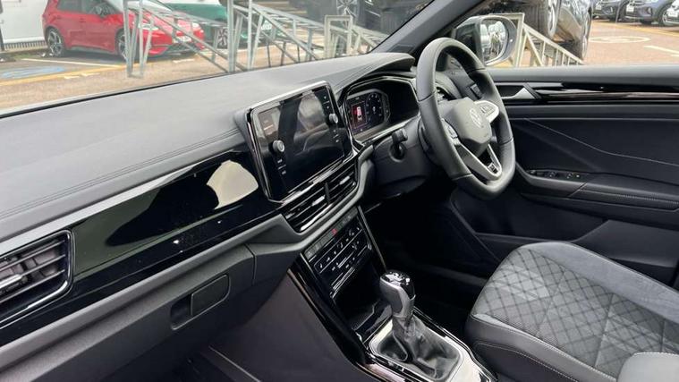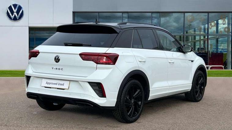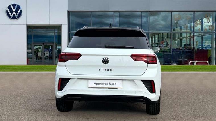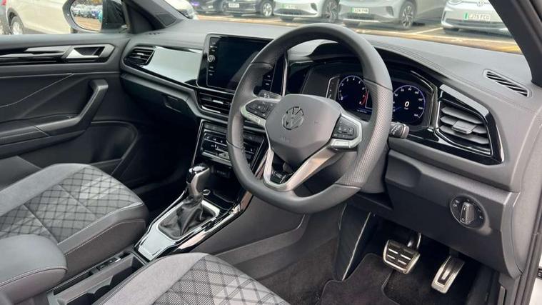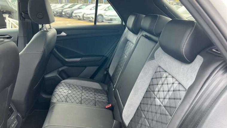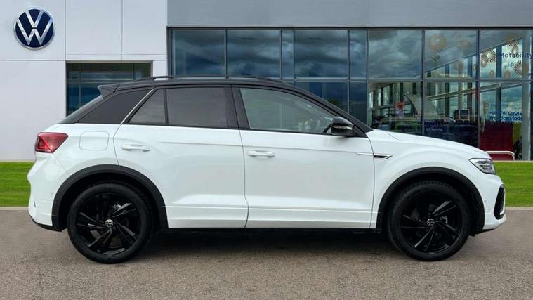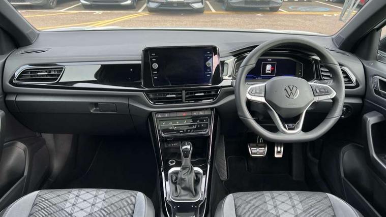 10.25" Digital cockpit pro, Advanced driver attention and drowsiness monitor, Emergency call service, Lane keeping system Lane Assist, Mobile phone interface, Modified key software - reduce switch off time for key status change to Long no motion, Online services, Park assist including front and rear parking sensors, Power assisted speed sensitive steering, Service interval indicator, Tailgate/trunk lid release from outside, Think blue trainer driver tips and journey analysis, Warning sound and light for front seatbelts unfastened, Wireless app connect, Battery regeneration during braking, Rear shock absorption chassis with increased ride height, Start/stop function with battery regeneration, DAB Digital radio, Diversity antenna for FM reception, Front and rear 6 speakers, Music playback - MP3, WMA and AAC files, Premium USB cable in choice of either Apple or Android smartphone compatibility, SD card slot, Simultaneous pairing of 2 compatible mobile devices, Title and cover art display, We Connect and We Connect Plus functionality, Auto dimming interior rear view mirror, Automatic hazard lights activation under emergency braking, Automatic headlight control with LED separate daytime running lights with coming/leaving home function, Dynamic cornering light, Electrically adjustable and heated door mirrors, Extended roof spoiler, Exterior mirrors aspherical on driver side, convex on front passenger side, External USB type C socket and charging sockets, Front windscreen wiper with intermittent wipe and 4 position delay, Heated rear window, Illuminated front grille, IQ LED matrix headlights, LED 3rd brake light, LED rear number plate lights, LED rear tail lights with dynamic turn signal, Light mode for poor weather, rain, fog or snow, Power windows with comfort operation and circuit breaker, R-Line design body coloured bumpers, Rain sensor, Rear exhaust tailpipe, Rear fog light on one side and reversing lights on both sides, Rear side wing doors, Rear wash/wipe with intermittent wipe setting, Remote electrically foldable door mirrors, puddle lights and reverse activated passenger's door mirror, 12V power socket in centre console, 3 rear head restraints, 3 seat bench in 2nd row, 4 load lashing points in luggage compartment, Air care climatronic air conditoning system with active combination filter and 2-zone temperature control, Artvelours cloth upholstery, Black roof lining, Chrome plated radiator grille inserts, air vent surrounds and light switch surrounds, Door and side trim panel with leatherette insert, Drawer under drivers seat, Driver seat height adjust, Driver's seat lumbar support, Front + rear carpet mats, Front centre armrest, Front comfort sports seats, Front cupholders x 2, Front footwell illumination, Front reading light, Front scuff plates with R Line logo, Front seat back storage pockets, Glove compartment door with light, Instrument lighting, white adjustable panel illumination, Interior ambient lighting and surround lighting, Interior light delay, Isofix child seat preparation, Leather gearshift handle, Leather wrapped multifunction steering wheel with paddle shift, Load-through provision with cup holder when folded down ('Unsplit rear seat bench, split folding backrest, with centre armrest), Luggage compartment lighting, Non-folding front passenger seat backrest, Passenger seat height adjuster, Passenger seat lumbar support, Single front passenger seat, Stainless steel pedals, Storage compartment in left and right luggage area, Storage compartment in rear doors, Storage compartments in driver and front passenger doors, Sunvisors with illuminated vanity mirrors, Variable boot floor, height adjustable and removable, Winter pack without heated windscreen washer jets - T-Roc, 3 point height adj front seatbelts + pretensioners, 3 point seatbelts in outer rear with ECE label, ABS, Child locks on rear doors, City emergency braking and pedestrian monitoring, Driver and front passenger airbag with front passenger airbag deactivation, Driver and front passenger safety-optimised head restraints, Drivers seatbelt reminder, Electronic parking brake, Electronic Stability Control (ESC) inc EDL (Electronic Differential Lock) and ASR (Traction Control), Front and rear passengers curtain airbag system including front side airbags, Front disc brakes, Hill start assist, Predictive pedestrian protection, Rear disc brakes, Two tone horn, Tyre pressure loss indicator, Volkswagen roadside assistance, Tool kit, Trims for alloy wheels, Tyre mobility kit including compressor and sealing foam,