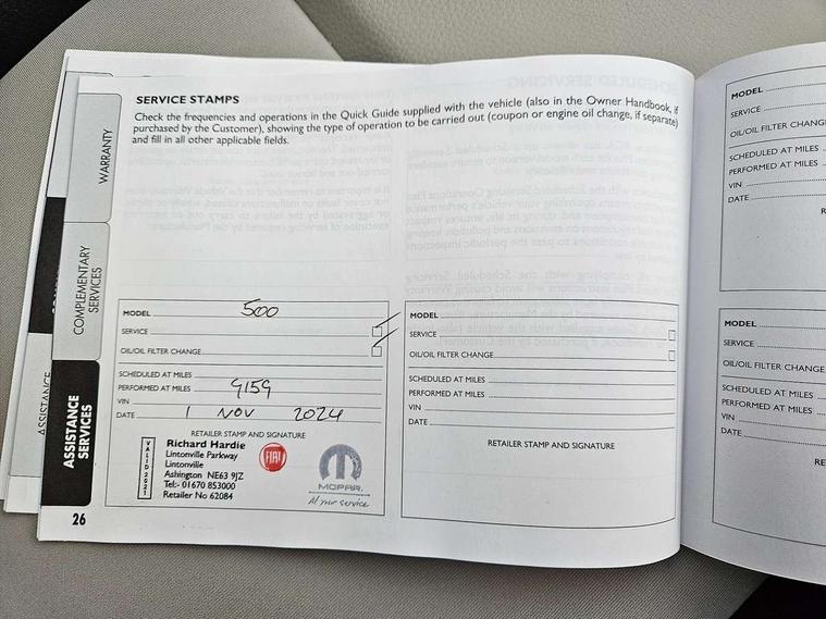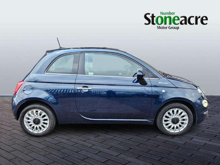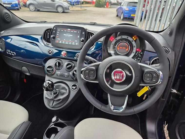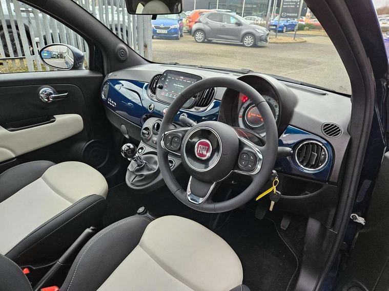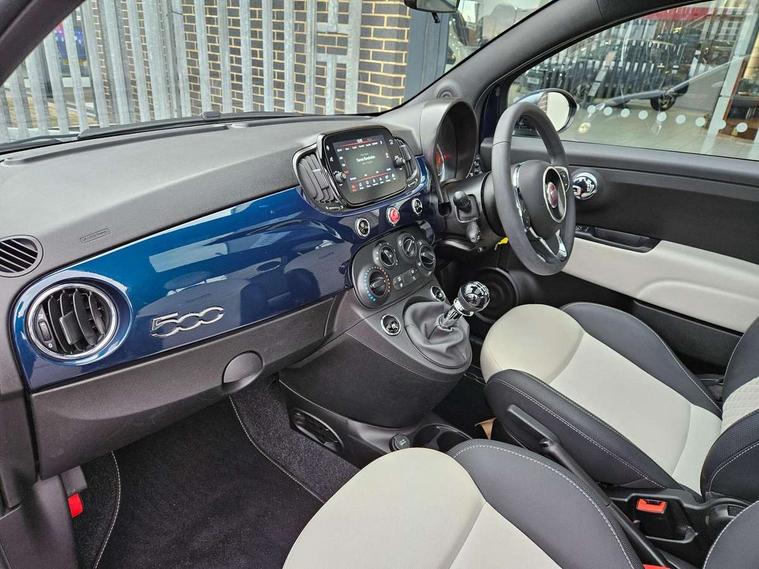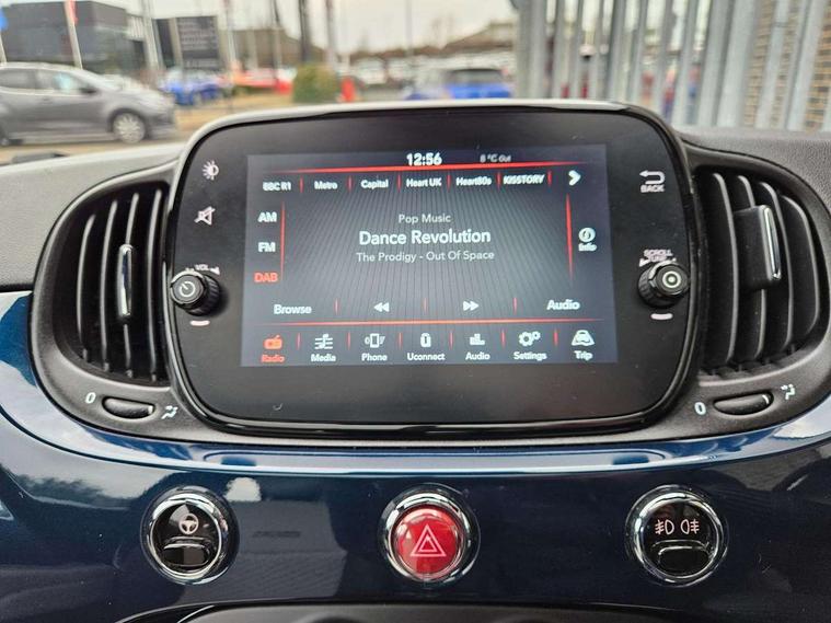 Apple car play/Android Auto, Cruise control, E-call, External temperature gauge, Power assist steering, Rear parking sensor, Speed limiter, Stop/start system, Trip computer, 4 speakers, 7" HD Touchscreen Radio, Bluetooth, USB and DAB, Rear speakers, 3rd brake light, Auto headlights, Body colour bumpers, Body coloured electrically adjustable door mirrors, Chrome plated exterior door handles, Dolcevita badge on fender, Dusk and rain sensors, Electric front windows, Fixed glass sunroof with sunblind, Front fog lights, Halogen headlamps, Heat insulated glass, Heated rear windows with wash wipe, LED daytime running lights, Rear side wing doors, Rear wiper, 1 passenger grab handle, 2 seat bench in second row, 50/50 split folding rear seats with height adjustable rear headrests, Air conditioning, Auxilliary 12V power socket, Chrome kit, Front headrests, Height adjustable drivers seat, Height adjustable steering wheel, Isofix child seat preparation, Single front passenger seat, Techno leather steering wheel with audio controls, 7 airbags - Driver, passenger, side, window and drivers knee airbags, ABS/EBD, ESC + ASR/MSR + HBA + Hill holder, Manual passenger airbag deactivation function, Traction control, Tyre pressure monitoring system, Automatic door locking, Immobiliser, Locking fuel filler cap, Remote central locking, 15" Alloy wheels,
