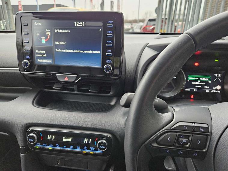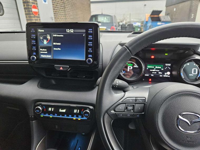 Adjustable speed limiter, Apple car play/Android Auto, Blind spot monitoring with rear cross traffic alert, Digital instrument cluster, Digital speed display meter, Drive mode selection and paddle shift, Dynamic radar cruise control, E-call with GPS, Emergency stop signalling system, Engine start/stop button, EV drive mode, Front and rear parking sensors, Hybrid system indicator, Integrated bluetooth, Lane tracing assist includes Lane centering, Lane departure alert, Steering assist and Vehicle sway warning, Multi-information display, PAS, Pre-collision system, Qi wireless charging, Reversing camera, Road sign assist - RSA, Service indicator, Trip computer, Windscreen projected head up display, i-stop, AM/FM/DAB radio with 6 speaker audio system and 8" colour screen centre display, Steering wheel mounted audio/bluetooth controls, Auto dimming rear view mirror, Automatic high beam - AHB, Body coloured front bumper, Body coloured rear bumper with gloss black lower mouldings, Coming/leaving home lighting function, Dusk sensing headlights, Front and rear electric windows, Gloss black electric adjustable/heated/folding door mirrors, Gloss black front grille with lower satin chrome trim, Gloss black rear roof spoiler, LED front fog lights, LED headlights with manual headlight levelling and LED daytime running lights, LED rear combination light with LED turn signals, LED third brake light, Privacy glass, Rain sensing front wipers with adjustable sensitivity and speed, Rear side wing doors, Rear wiper, Satin chrome lower window garnish, Shark fin antenna, 12V power outlet, 3 seat bench in 2nd row, 60/40 split rear seats, Ambient lighting, Cloth/Synthetic leather upholstery, Door panel in soft touch material, Driver, front passenger and two rear door storage, Driver, Front passenger and two rear grab handles with coathooks, Drivers seat manual slide recline and height adjustment, Drivers/front passengers with covered vanity mirrors and light, Dual zone climate control, Front centre storage with two cupholders, Front head restraints, Front passenger seat manual slide, recline and height adjust, Front passenger seatback pockets, Front sport seats, Glovebox, Interior courtesy light with LED illumination, ISOFIX child seat anchorage points attached on outer rear seats, Leather handbrake, Leather steering wheel and gear knob, Luggage compartment light, Single front passenger seat, Three height adjustable rear head restraints, Tilt/telescopic adjustable steering wheel, USB input, 2x3 point front seatbelts with pre-tensioners, 3 point seatbelts on all rear seats, Anti-lock braking system (ABS), Collision mitigation braking system, Driver and passenger central airbags, Dynamic stability control + Traction control, Electronic parking brake with auto-hold and auto-disengage function, ESP, Front and rear curtain airbags, Front driver, passenger and rear seat seatbelt warning, Front dual stage driver and single stage front passenger airbags, Front side airbags, G-Vectoring control plus, Hill start assist control (HAC), Manual child lock in rear doors, Passenger airbag cut-off switch, Rear parking support brake, Regenerative braking system, Tyre pressure monitoring system, Deadlocking system, Smart keyless entry, Thatcham approved immobiliser and alarm, 16" alloy wheels, Emergency tyre repair kit,