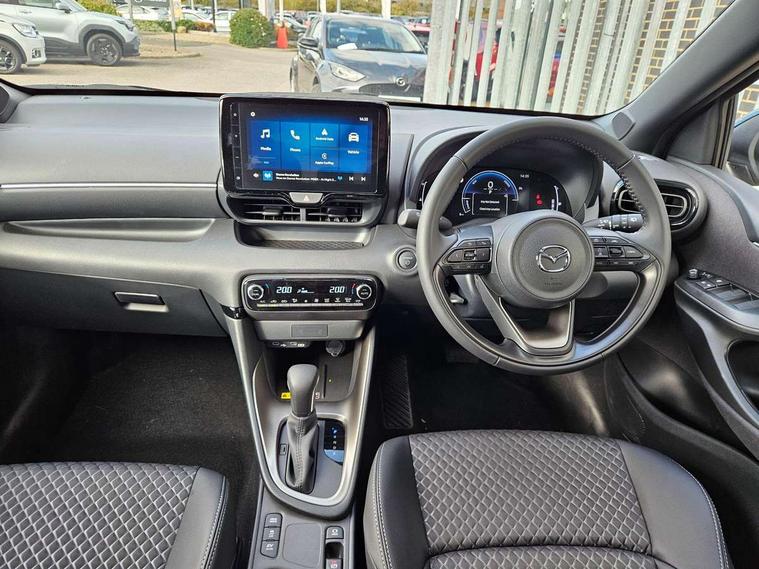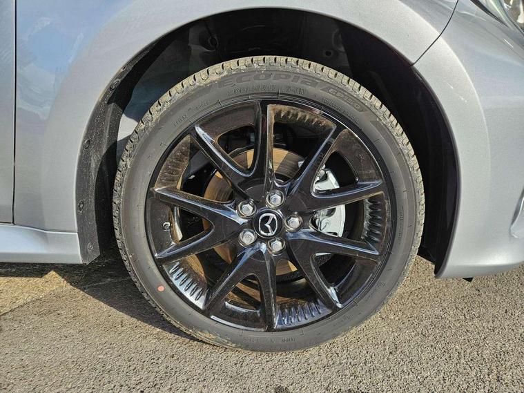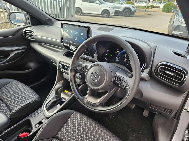 7" Digital instrument cluster with speedometer and hybrid system indicator, Adjustable speed limiter, Drive mode selector (Eco, Normal and Power), Driver attention alert system, Dynamic radar cruise control, E-call with GPS, EV drive mode, Front and rear parking sensors, Integrated bluetooth, Lane tracing assist includes Lane centering, Lane departure alert, Steering assist and Vehicle sway warning, Multi-information display, PAS, Push button start and stop, Qi wireless charging, Rear cross traffic alert with auto braking, Reversing camera, Road sign assist - RSA, Service indicator, Tailgate, Trip computer, Wireless Apple CarPlay and wired Android Auto, i-stop, 6 speaker audio system and 9" colour screen centre display, DAB Digital radio, Steering wheel mounted audio/bluetooth controls, USB type C port, Auto dimming rear view mirror, Auto folding door mirrors, Automatic high beam - AHB, Body coloured front bumper, Body coloured rear bumper with gloss black lower mouldings, Coming home function, Dusk sensing headlights, Front and rear electric windows, Gloss black electric adjustable/heated door mirrors, Gloss black front grille, Gloss black rear roof spoiler, Hybrid badge, LED front fog lights, LED headlights with manual headlight levelling and LED daytime running lights, LED rear combination light with LED turn signals, LED third brake light, Mazda unique tailgate garnish, Piano black lower window garnish, Privacy glass in rear side and rear windows, Rain sensing front wipers with adjustable sensitivity and speed, Rear side wing doors, Rear wash wiper, Shark fin antenna, Welcome lighting, 12V power outlet, 3 seat bench in 2nd row, 60/40 split fold down rear seats, Ambient lighting, Black roof lining in pillar and ceiling, Cloth/Synthetic leather upholstery, Driver, front passenger and two rear door storage, Driver, Front passenger and two rear grab handles with coathooks, Drivers seat manual slide recline and height adjustment, Drivers/front passengers with covered vanity mirrors and light, Dual zone climate control, Front centre armrest with console storage, Front head restraints, Front passenger seat manual slide, recline and height adjust, Front sport seats, Glovebox, Interior courtesy light with LED illumination, ISOFIX child seat anchorage points attached on outer rear seats, Leather handbrake, Leather wrapped gearshift, Leather wrapped steering wheel with telescopic and tilt adjustment, Luggage compartment light, Seatback pocket at rear of the front passenger seat, Single front passenger seat, Three height adjustable rear head restraints, 2x3 point front seatbelts with pre-tensioners, 3 point seatbelts on all rear seats, Airbags - driver and front passenger, Anti-lock braking system (ABS), Blind spot monitoring with rear cross parking support brake function, Collision mitigation braking system, Driver and passenger central airbags, Dynamic stability control + Traction control, Electronic parking brake with auto-hold and auto-disengage function, Emergency brake light signal (EBS), ESP, Front and rear curtain airbags, Front passenger airbag cut-off switch, Front side airbags, Hill start assist control (HAC), Manual child lock in rear doors, Pre-crash safety system - PCS, Rear parking support brake, Regenerative braking system, Seatbelt reminder audible warning, Tyre pressure monitoring system, Deadlocking system, Remote central locking, Smart keyless entry, Thatcham approved immobiliser and alarm, 17" Alloy wheels, Emergency tyre repair kit,