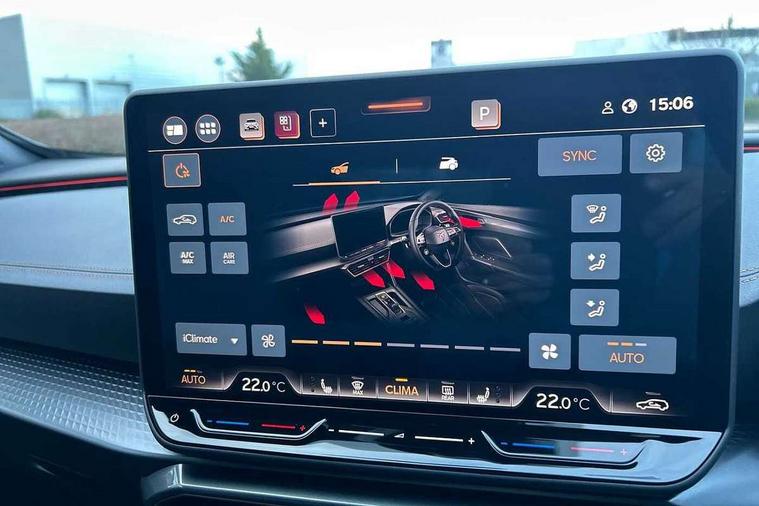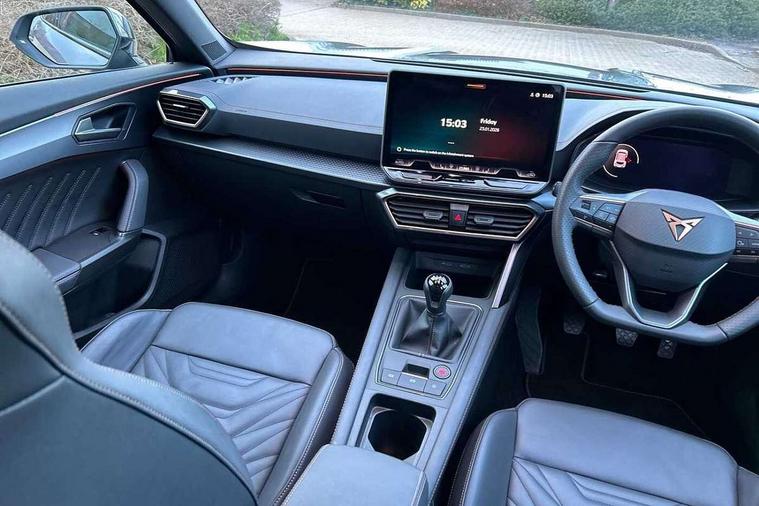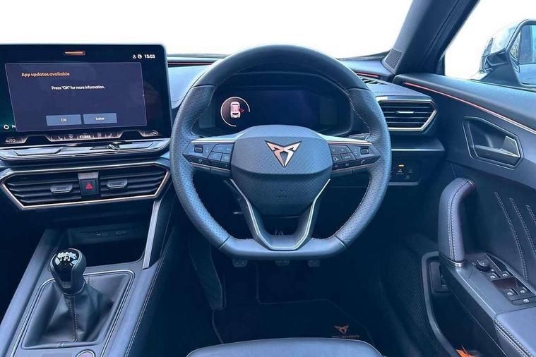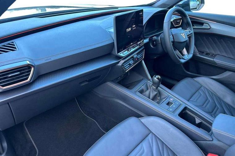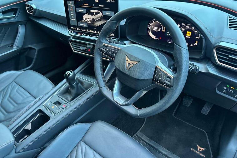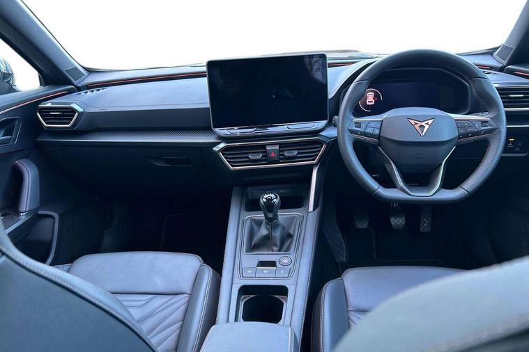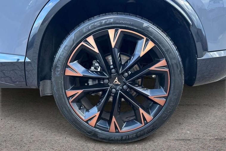 10.25" digital cockpit and configurable dashboard, Adaptive cruise control with follow-to-stop and speed limiter, Advanced driver alert system, Advanced lane assist with semi-automatic vehicle control in a medical emergency and traffic jam assist, Driving profile selection, Dynamic road sign display, Emergency steering support with turn assist, Forward collision warning with automatic braking, Front and rear parking sensors, Full link phone integration, Progressive steering, RPM, trip computer, outside temp gauge, instrument light brightness, low fuel warning light, lights on reminder, gearshift indicator, Service interval indicator, Side and exit assist, Start/stop system with regenerative braking, Top view camera, Virtual pedal and electric tailgate, Voice control system, Wired Android Auto, Wireless apple carplay, Wireless phone charger, CUPRA sport suspension, Electronic locking differential and dynamic traction support, 2 front and 2 rear USB type C sockets, Media system with navigation, 12.9" touchscreen display, voice control, DAB, steering wheel mounted controls, Auto dimming rear view mirror, Body colour door handles, Body coloured bumpers, Dark grey wing mirror, Daytime running light with automatic headlight control and coming home feature, Door panel ambient lighting, Dynamic headlight range control, Electric front/rear windows, Electrically adjustable heated and folding door mirrors with memory function, Gloss black roof rails and window surrounds, High beam assist, LED 3rd brake light, LED front fog lamps with cornering function, LED Headlights, LED Taillights with dynamic indicator, Rain sensing wipers, Rear diffuser with black simulated exhaust pipes, Rear fog lights, Rear side wing doors, Rear wash/wipe, Tinted rear windows, Welcome lights (within exterior mirror housing), 12V socket, 2 front and 2 rear reading lights, 3 seat bench in 2nd row, 60/40 split rear bench seat with armrest and mechanical seat release, Black headlining, Black interior roof lining, Dust/pollen filter, Electrically adjustable front seats with lumbar support and memory function, Front and rear head restraints, Front centre armrest, Heated front seats, Height/reach adjust steering wheel, Illuminated aluminium doorsteps, Illuminated interior front door sills, Illuminated sunvisor with mirror, Isofix, Leather dashboard, door insert and side trim panel, Leather multi function steering wheel, LED smart wraparound lighting, PVC/Leather upholstery, Single front passenger seat, Storage pockets on rear of front seats, Three zone climate control with control panel in rear, Variable luggage/load compartment floor, 3 point seatbelts on all rear seats, ABS, Brake control system - ESC and brake booster, Child proof door locks, Driver and front passenger airbags with front passenger airbag de-activation, Electronic parking brake, Front and rear disc brakes, Front side curtain airbags, Hill hold control, Pre-crash front and rear seat belt tensioner, window closure and hazard lights, Public e-call, Seat belt reminder for front and rear seats, Tyre pressure monitoring system, Anti theft alarm system, KESSY Advanced - Keyless start, keyless entry with SAFELOCK, Locking wheel bolts, Copper and aluminium interior detailing,