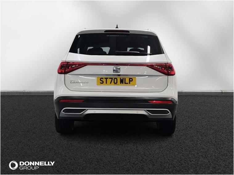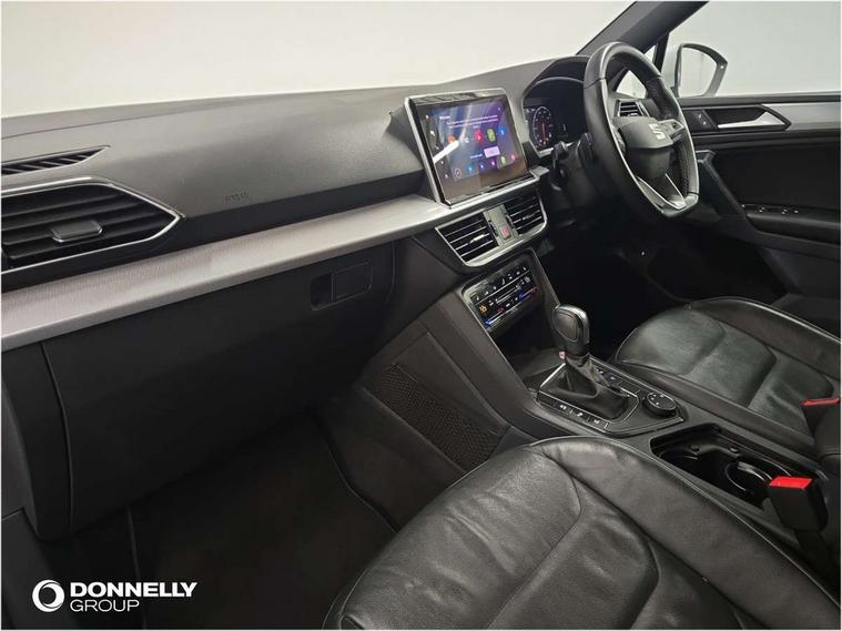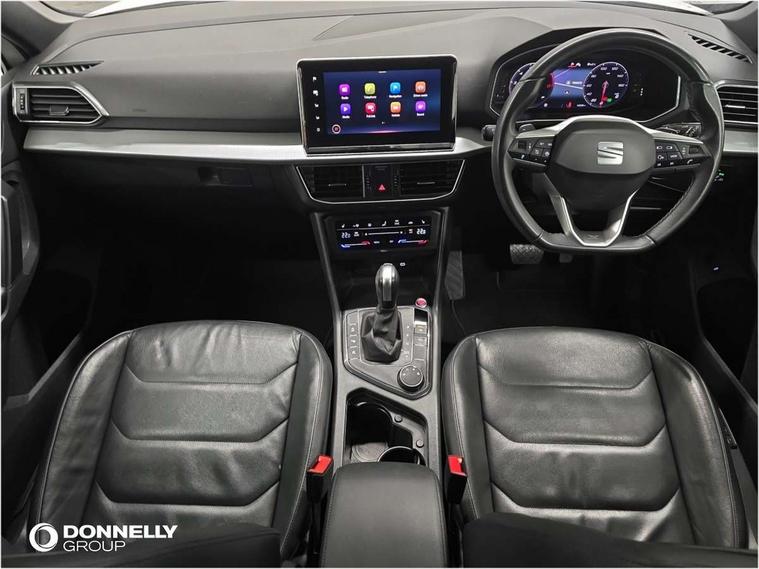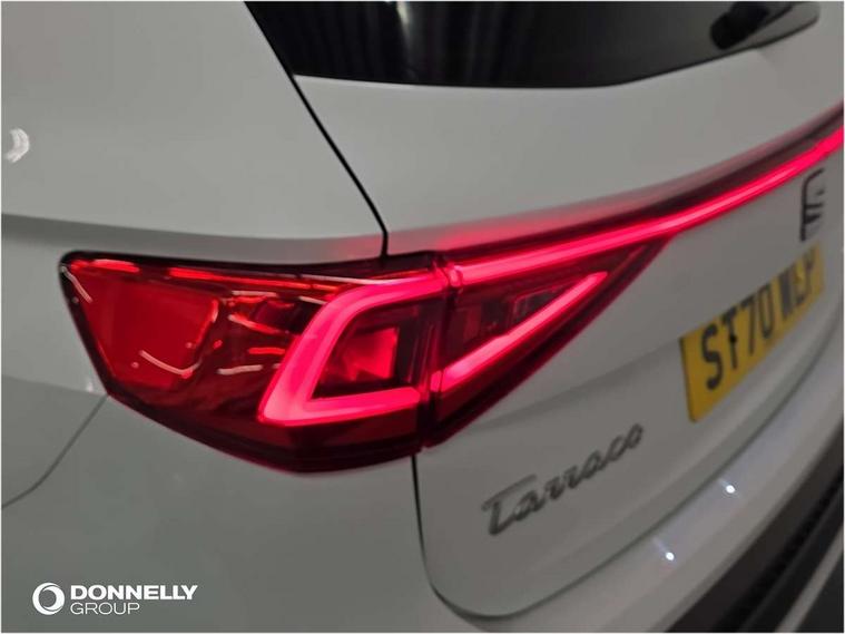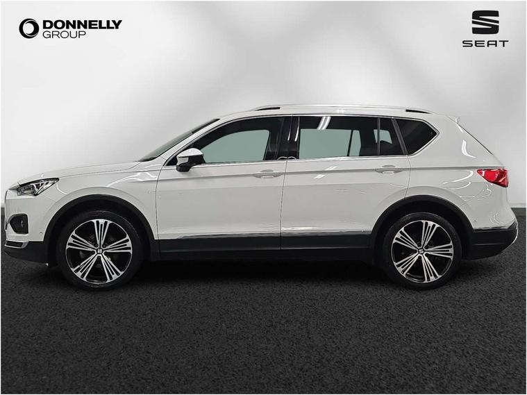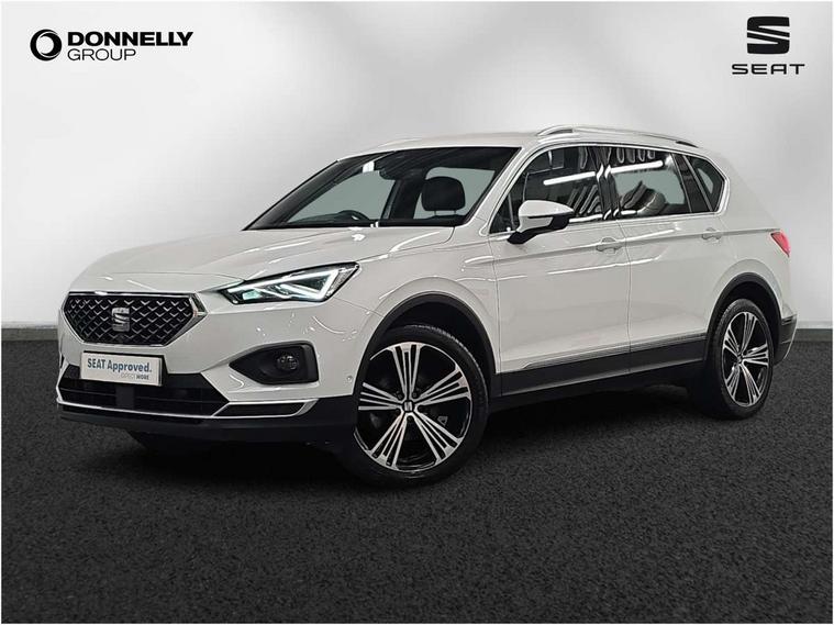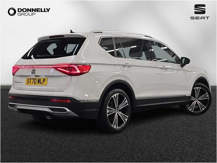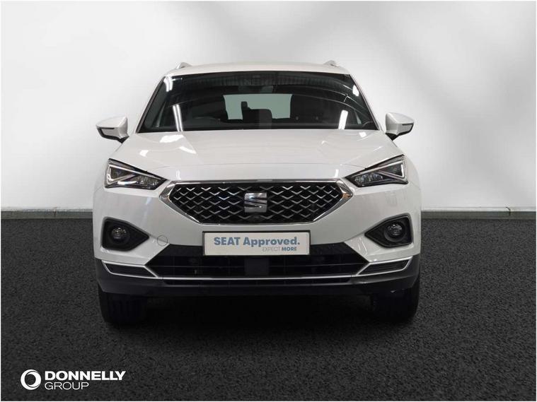 'Lights On' Reminder warning buzzer, 10.25" digital cockpit, Adaptive cruise control with speed limiter, Bluetooth audio streaming with handsfree system, Digital clock, Digital cockpit, e-Call (emergency call), Front assist city emergency braking and pedestrian protection, Full Link Wireless Smartphone Integration with Mirror Link, Apple Car Play, Lane assist, Low fuel warning light, Outside temperature gauge, Power assist steering, Rear view camera, RPM counter, Seat connect with safety, service, remote and online, SEAT Drive profile-4 different modes, progressive steering, 4Drive versions with off-road/snow, steering response, throttle response, gear shifts mode, Self parking functionality (includes front and rear parking sensors), Top view camera, Trip computer, Wash water level indicator, Comfort suspension, XDS electronic differential lock, Navigation system with 9.2" colour touchscreen with proximity sensor, 3D Map display, DAB, AM/FM Radio, 3 USB (type C), Aux-in, 8 speakers, SD card, Steering wheel mounted audio/telephone controls, USB (type C) cable for Apple and Android compatibility, Auto dimming rear view mirror, Auto headlights with automatic coming and leaving home function, Automatic headlight adjustment, Black bumpers with chrome detail, Body colour door mirrors and handles, Chrome front grille frame, Chrome roof rails, Chrome window trim, Coast to coast lighting, Dark tinted rear windows, Electric front/rear windows, Electrically adjustable and folding door mirrors, Front halogen fog lights with cornering function, Fuel door linked to central locking, Full LED headlights with LED rear lights, Heated door mirrors, Hidden exhaust pipe, Illuminated aluminium front door sill with trim logo, LED daytime running lights, LED licence plate lighting, Rain sensing wipers, Rear fog lights, Rear wash/wipe, Welcome lighting, 3 zone climate control, Ambient spot lighting and front footwell illumination, Black interior roof, Centre armrest in front with air outlet in rear, Driver and passenger sunvisor with covered and illuminated mirror, Driver's electric lumbar adjustment, Easy fold rear seat system - second and third row, Electric driver's seat with memory, Folding table on front seat backrests, Forward and backward adjustable seats 2nd row, Four cargo rings in the boot, Front cupholders, Front passenger seat lumbar adjustment, Front seat back storage pockets, Gear shift indicator, Height adjustable front headrests, Height adjustable passenger seat, Illuminated boot, Illuminated glovebox, Instrument lighting with brightness control, ISOFIX points in outer 2nd row seats and front passenger seat with top tether anchorage points, Leather gear knob, Leather upholstery with sports seats, Leather wrapped multifunction steering wheel, Luggage compartment floor with split function, Rear armrest and easy back seat release mechanism from boot, Rear head restraints, Sliding boot cover, Storage compartment in roof console for sunglasses, Storage draw under front passenger seat, Three 12V sockets, White ambient lighting in front and rear door panels + LED lights in interior door handles, Winter pack - Tarraco Xcellence Lux, 3x3 point rear seatbelts, ABS, Active front head restraints, Driver/front passenger airbag, Drivers knee airbag, Electronic parking brake with auto hold, Electronic stability control, Front passenger airbag deactivation, Front side airbags, Hill hold control, Seatbelt reminders for all seats, Tiredness recognition system, Traction control, Two curtain airbags, Tyre pressure monitoring system, Alarm, Central locking, Keyless enter and go with electric tailgate with virtual pedal, Locking wheel bolts, Power locking and remote control with two foldable keys and opening boot selector, Chrome interior detailing - door and dashboard decorative inserts, 20" Supreme machined alloy wheels 37/1, Tool kit,
