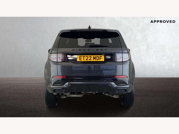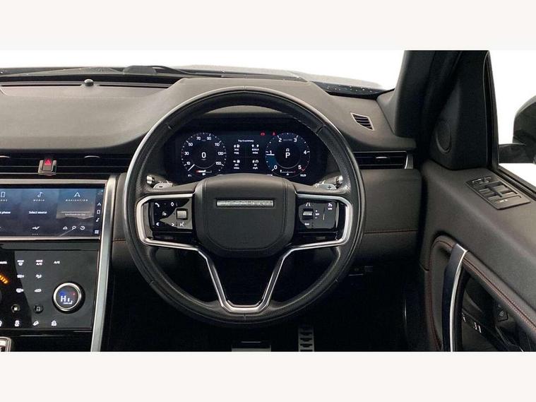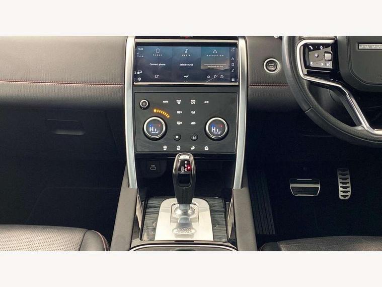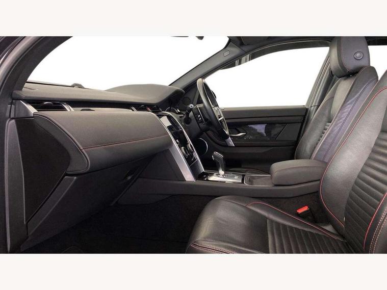 10" touch screen, 3D Surround Camera with 360 View, 180 Rear View, Front Traffic Detection, Forward Vehicle Guidance, Tow Hitch Assist and clear sight Ground View, Android Auto, Apple CarPlay, Driver condition monitor, eCall emergency call system, Front and rear parking aid, InControl remote premium, Lane keep assist, PAS, Pivi Pro connected navigation system with upgraded Infotainment, Powered tailgate/boot lid, Rear view camera, Service interval indicator, Traffic sign recognition with adaptive speed limiter, Trip computer, Wade Sensing, All terrain progress control, Coil suspension system, Diesel particulate filter, Terrain Response 2, Bluetooth connectivity including audio streaming, Digital Audio Broadcast radio-DAB, Steering wheel mounted audio controls, 3rd brake light, Automatic headlights, Day time running light, Electric front/rear windows, No badges, Power fold, auto-dimming, heated door mirrors with approach lights, Privacy glass, Rain sensing windscreen wipers, Rear fog lights, Rear side wing doors, Rear wiper, 3 seat bench in 2nd row, Bright metal pedals, Centre console with armrest, Front passenger isofix child seat attachment, Front passenger seat, Rear headrests, Satin chrome gearshift paddles, Sunvisors with illuminated vanity mirrors, Tilt/reach adjustable steering wheel, Black exterior pack - Discovery sport, Online pack - Discovery sport, 3 point seatbelts on all seats, ABS, Brake hold function, Child locks on rear doors, Collision mitigation braking system, Cornering brake control (CBC), Driver/Front Passenger airbags, Drivers knee airbag, Electronic brake force distribution, Electronic parking brake, Emergency brake assist, ESP + traction control, Hill descent control, Hill launch assist, Pedestrian airbag system, Rear seat ISOFIX, Side and curtain airbags for front and 2nd row seats, Trailer stability control, Tyre pressure monitoring system, Battery Back Up System (BBUS) with tilt sensor, Intrusion sensor, Locking wheel nuts, Centre stack rails in noble chrome,