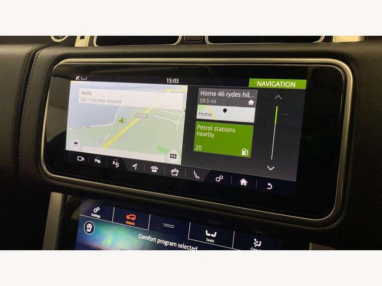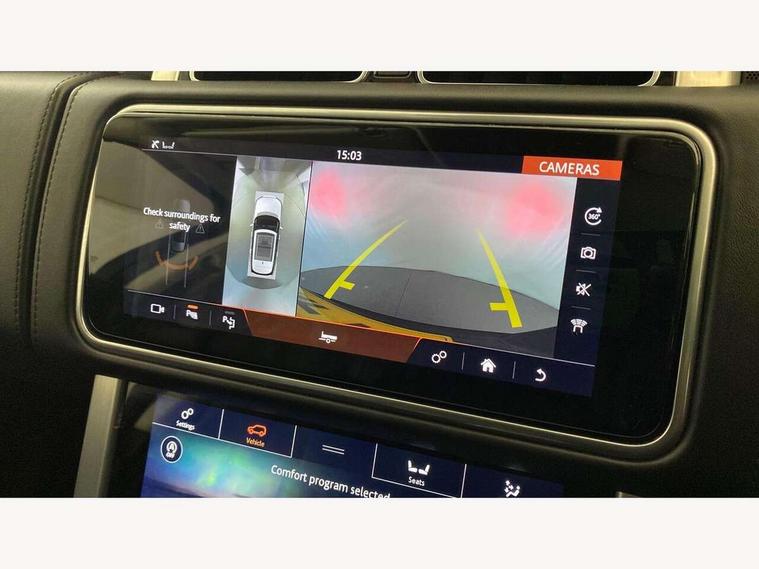 360 degree parking aid, 360 degree surround camera, Adaptive cruise control with steering assist, Android Auto, Apple car play, Blind spot assist, Bluetooth mobile phone connection, Clear exit monitor, Driver condition monitor, Dynamic response, Dynamic route guidance, Electric power assisted steering (EPAS), InControl remote premium, Interactive Driver display instrument cluster, Lane keep assist, Navigation pro system with 10" touch screen, app interface and media storage, Park Assist - Parallel Park/Parking Exit/Perpendicular park, Powered gesture tailgate/boot lid, Pro services and wifi hotspot, Push button starter, Rear camera wash, Rear traffic monitor, Rotary shifter, Service interval indicator, Touch pro duo system, Traffic sign recognition with adaptive speed limiter, Trip computer, Voice control system, 8 speed automatic transmission, Active rear locking differential, Adaptive dynamics, All terrain progress control, All Wheel Drive (AWD), Automatic access height, Diesel particulate filter, Electronic air suspension, Terrain Response 2 Auto, Twin speed transfer box, Digital Audio Broadcast radio-DAB, Digital TV, InControl app, InControl protect, USB socket, Acoustic windscreen, Auto dimming interior rear view mirror, Auto self levelling headlights, Automatic headlights, Body coloured bumpers, Centre high mounted stop light, Door/quarter lights in toughened plate glass, Electric windows with one touch open/close and anti trap, Electrical towing preparation, Follow me home headlights, Front and rear recovery eyes, Front fog lights, Headlamp power wash, Heated rear window, Heated windscreen, Illuminated aluminium tread plates with Autobiography script, Integrated twin tailpipes, Laminated front and rear side glass, LED rear lamps, LED tail lights, Power fold, auto-dimming, heated door mirrors with memory and approach lights, Power front/rear windows with global close, Rain sensing windscreen wipers, Rear fog lights, Rear wash/wipe, Side repeater indicators in mirror, Trailer stability assist, 12V power point in luggage area, 12V power sockets, 3 rear headrests, Black gearshift paddles, Centre console with storage and armrest, Configurable Ambient interior lighting, Customer configurable single point entry, Driver and passenger front seat armrests, Easy boot loading, Electrically adjustable steering column, Extreme passenger seat away, Folding rear seats, Four zone climate control, Front and rear cupholders, Front and rear grab handles, Front headrests, Front seat back map pockets, Heated steering wheel, Loadspace cover, Loadspace light, Lockable glovebox, Luggage compartment lighting, Luggage tie down in loadspace, Parking heat with remote control, Perforated Semi-Aniline leather upholstery, Power deployable rear centre console, Premium carpet mats, Rear centre armrest, Rear ISOFIX, Rear seat lumbar and powered headrest with wings, Remote intelligent seat fold, Soft close doors, Through load facility, Twin blade sunvisors with Illuminated vanity mirrors, 3 rear 3 point seatbelts, Anti-lock braking system (ABS), Auto lock system when vehicle in motion, Cornering brake control (CBC), Curtain airbags, Customer configurable autolock, Driver/front passenger head+thorax airbag, Drivers knee airbag, DSC - Dynamic Stability Control, Electronic brake force distribution, Electronic parking brake, Electronic traction control, Emergency brake assist, Emergency braking, ESP, Front airbags with passenger seat occupant detector, Front seatbelt pretensioners with force limiters, Front side airbags, Height adjustable front seatbelts, High speed emergency braking, Hill descent control, Hill launch assist, Low traction launch, Power operated child locks, Roll stability control, Tyre pressure monitoring system (TPMS), Immobiliser, Intrusion sensor and alarm, Keyless entry, Locking wheel nuts, Remote central locking,