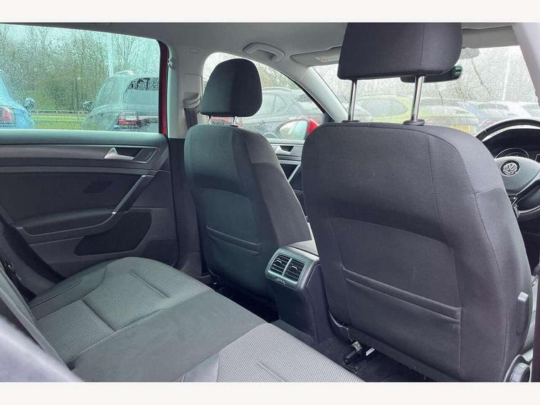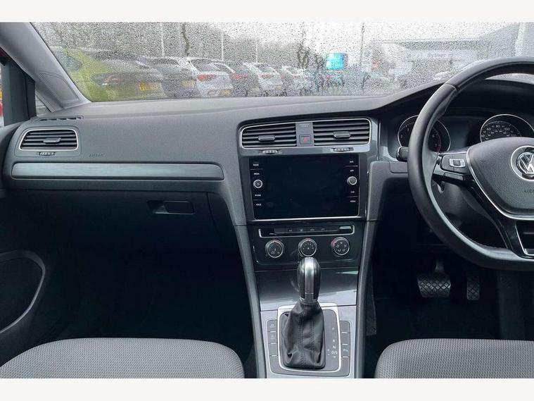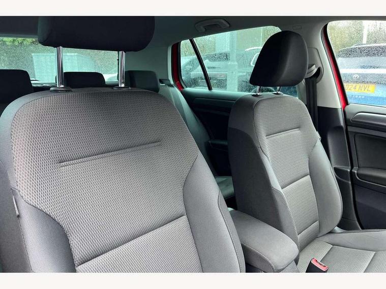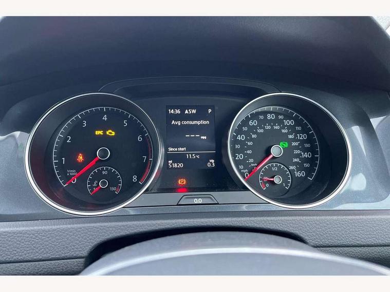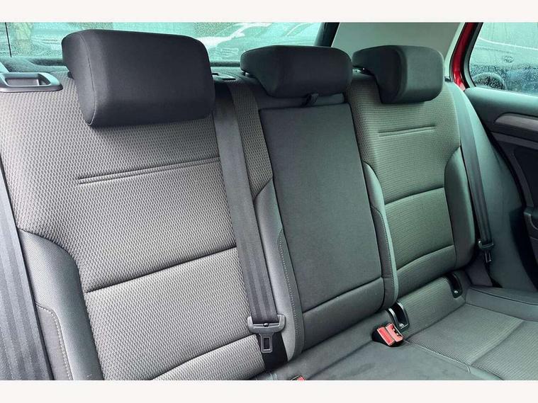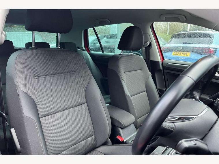 'Lights On' Reminder warning buzzer, 8" colour touch screen, ACC - Adaptive cruise control with front assist, forward collision warning, distance monitoring, city emergency brake and speed limiter, App-Connect, Bluetooth telephone and audio connection for compatible devices, Brake pad wear indicator warning light, Drive mode selector, Driver alert system, Driver profile selection, Front assist, radar sensor controlled distance monitor, city emergency braking + predictive pedestrian protection, Front assistant collision mitigation, Instrument cluster in white, Multifunction computer with visual gear change recommendation for fuel consumption, Power assisted speed sensitive electro-mechanical steering, Speedo, rev counter, electronic odometer, trip, service interval display, exterior temperature and fuel gauge, Stop/start system, Ultrasonic front and rear optical and audible parking sensors, Warning buzzer and light for front seatbelts unfastened, Battery regeneration during braking, XDS electronic differential lock, 8 Speakers, Composition media system, DAB Digital radio receiver, MP3/WMA compatability, SMS Functionality, USB and SD card connectivity, Aerodynamic black radiator grille with chrome trimmed insert, Automatic coming/leaving home lighting function, Automatic dimming rear view mirror/rain sensor, Black rear diffuser, Body colour bumpers, Body colour door handles, Body colour door mirrors with integrated indicators, Electric front windows, Electric rear windows, Electrically adjustable and heated door mirrors, Glavanised body, Heated rear windscreen, High level 3rd brake light incorporating LED Technology, Range adjustable headlights via infotainment system with LED daytime running lights, Rear number plate lights incorporating LED technology, Rear window aerial, Rear window wash/wipe with intermittent wipe, Reflectors in all doors, Remote electrically foldable door mirrors, door mirror puddle lights and reverse activated kerb-view adjustment on passengers door mirror, Tailgate with integrated rear roof spoiler, Windscreen wipers/ intermittent wipe + 4 position delay, 12V socket in luggage compartment, 3 rear headrests, 4 load lashing points in luggage compartment, 60/40 split folding rear seat backrest, Bag hook in luggage compartment x 2, Cooled glovebox, Dust/pollen filter, Front and rear reading lights incorporating LED technology, Front centre armrest with storage compartment and two rear air vents, Front seat back storage pockets, Grab handles front x 2, rear x 2 with integrated coat hooks, Height and reach adjustable steering wheel, Illuminated vanity mirrors, Instrument lighting white adjustable panel illumination, Interior light delay, Isofix preparation for 2 rear child seats, Load through provision with rear centre armrest and cupholders x2, Luggage compartment light, Multifunction leather steering wheel with leather trimmed gear knob, Overhead storage box, Pearl grey headlining, Storage box in luggage compartment, Storage compartment in roof console with cover, Storage compartments in front doors, Storage compartments in rear doors, Stowable luggage compartment cover, Sun visors, Three spoke multi-function leather trimmed steering wheel and gearknob, Variable boot floor, height adjustable and removable, Mirror pack - Golf, 3 rear three point seatbelts, Airbags - Driver's and front passenger's, curtain airbag, Driver's knee, front side impact and passenger's airbag deactivation switch, Anti-lock Braking System (ABS) with Hydraulic Brake Assist (HBA), Automatic post collision braking system, Child locks on rear doors, Driver/Passenger optimised head restraints, Electronic parking brake with auto hold, Electronic stability control (ESC) including Electronic differential lock (EDL) and ASR (Traction control) with deactivation via infotainment system, Pre crash preventive occupant protection, Three point height adjustable front seatbelts with tensioners, Tyre pressure loss indicator, Alarm with interior protection, Electronic engine immobiliser, Remote central locking with 2 remote folding keys, Brushed dark silver decorative inserts in dash and door panels, Chrome plated air vent surround, Chrome-plated light switch surround, Polar night black centre console, Steel space saver spare wheel,