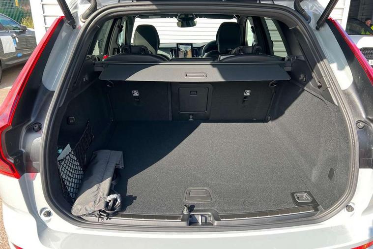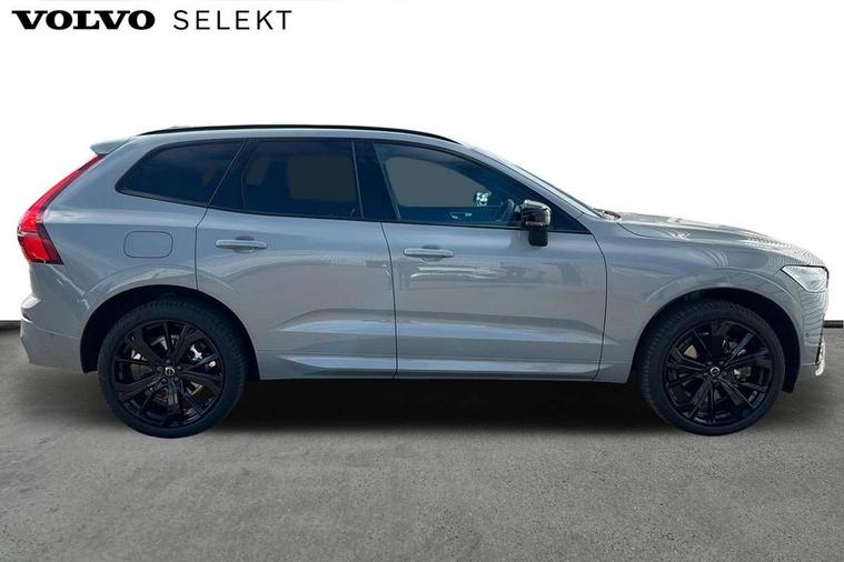 11.2" centre console touch screen, 12.3" Progressive Driver Display, 360 degree surround view parking camera with side proximity sensors, Adaptive cruise control, Adjustable steering wheel force, Android auto (Wired), Apple carplay (wired), Bluetooth handsfree system, Driver alert control with lane keeping aid, Emergency services call system, Front and rear park assist, Google Automotive Services, Intelligent speed assistance, Oncoming Lane Mitigation, PAS, Power operated tailgate with handsfree opening and closing, Service interval indicator, Speed limiter, Speed sensitive steering, Trip computer, Volvo cars services with app, Volvo on call with App, Wireless/Inductive Mobile Phone Charging, 8 speed automatic transmission with start/stop + manual change functions, DAB Digital radio, Premium Sound by Harman Kardon, dirac unison, dolby pro logic II surround sound, 13 speakers/600W output and fresh air subwoofer, Steering wheel remote infotainment controls, Adaptive brake lights with high level LED brake lights, Auto dimming interior + exterior mirrors, Automatic headlight levelling system, Automatic LED Headlights + Active high beam incorporating daytime running lights, Dark tinted windows for rear side windows and cargo area, Electric adjustable/heated/auto power folding door mirrors, Electric front+rear windows, Front aluminium tread plates, Heated front windscreen, High gloss black door mirrors and window surround, High gloss black front and rear bumper decoratives, High gloss black front grille, Surround, Strikethrough and Ironmark, High gloss black rear model, engine and volvo logo badges, Home safe and approach lighting, Integrated roof rails in high gloss black, Puddle lights, Rain sensor with automatic windscreen wiper activation, Rear side wing doors, Rear wiper, Roof antenna, Roof spoiler, Tinted windscreen, Visible VIN plate, 12V socket in front tunnel console and luggage compartment, 3 seat bench in 2nd row, 3 Spoke tailored steering wheel with chrome trim, 4 Zone electronic climate control, A-pillar parking ticket holder, Air purifier particulate matter (PM) 2.5 filter, B Pillar ventilation, Bright metal luggage scuff plate, Centre console cupholders and storage, Charcoal floor mats, Contour sports seats with nappa soft leather/textile upholstery, Front and rear courtesy lights, Front and rear door pocket illumination, Front cupholder illumination, Front footwell illumination, Front reading lights, Front seat cushion extensions, Glovebox compartment with illumination, Head restraints for all seats, Heated front seats, Heated steering wheel, Height/reach adjustable steering column, Illuminated luggage compartment, Illuminated vanity mirrors + ticket holder, Inner door release handle illumination, ISOFIX attachment on outer rear seats, Load cover, Load protection net, Multi directional lumbar support, Power driver seat with memory + exterior mirrors memory, Power height adjustable passenger seat, Power passenger seat with memory, Rear armrest with cupholder, Rear footwell and front and rear side step illumination, Rear reading lights, Rear seat concealed storage, Single front passenger seat, Tailgate illumination and ambient door lighting, Underfloor stowage compartment, Versatile split folding rear seat - 60/40, Driver assist pack without Adaptive cruise control - XC60, 5 three point seatbelts, City safety with steering support with Pedestrian + cyclist + front collision warning with full auto brake and rear auto brake, Drivers knee airbag, Dual stage driver/passenger airbags, Electronic parking brake with auto hold, First aid kit, Front seats SIPS airbags, Hill descent control - Off-road drive mode, Hill start assist, IC (Inflatable Curtains) - Full Length, Passenger airbag cut-off device, Power child locks on rear doors, Road sign information display, Run off Road Mitigation, Run off Road Protection, Seatbelt reminder and pretensioners, SIPS (Side Impact Protection System), Slippery road and hazard light alert, Stability and Traction Control with Spin control, Engine Drag Control and Corner Traction Control, Tyre pressure monitoring system, Vehicle deceleration control with Anti-lock Brake System, Electronic Brake Distribution and Emergency Brake Assist, Warning triangle, WHIPS whiplash protection system - front, Anti-theft alarm including immobiliser/volume sensor + level sensor, Key integrated remote control central locking + fuel flap with deadlocking system and auto open/close power windows, Keyless Drive (includes Keyless Entry and Keyless Start), Locking wheel nuts, Private locking for tailgate, 21" 5 Double spoke high gloss black alloy wheels, Summer tyres,