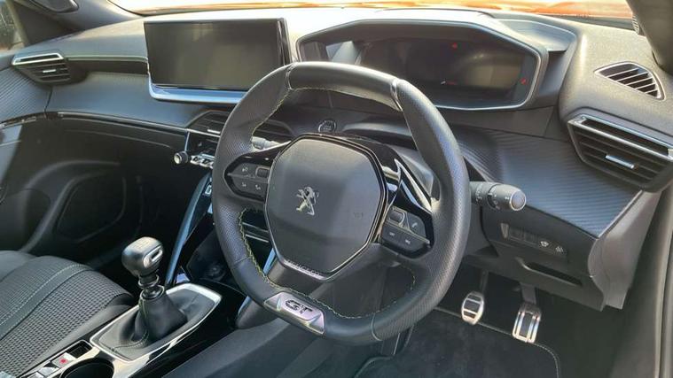 Bluetooth telephone facility, Connected 3D navigation, Driver attention warning, Exterior temperature indicator with ice warning, Front and rear parking sensors, Lane keep assist, Mirror screen with mirror link, apple carplay and android auto, Multi function trip computer, PEUGEOT i-Cockpit with 10" capacitive colour touchscreen, PEUGEOT i-Cockpit with compact steering wheel, PEUGEOT i-Cockpit with configurable 3D headup instrument panel, PEUGEOT SOS and assistance, Smart phone docking station, Speed limit recognition and recommendation, Start/stop system, Visio Park 1 with 180 degree Colour reversing camera, 2 front USB socket with USB-C, 2 USB sockets in rear, 6 speakers radio with mp3 compatible, DAB Radio (Digital Audio Broadcasting), Voice recognition for radio, navigation and telephony features, 2 X Rear number plate lights, Acoustic windscreen, Automatic hazard light activation upon heavy brake application, Black diamond roof, Black front wing trim with gloss black detail and GT badging, Body coloured exterior door handles, Chrome exhaust tailpipe, Chrome Lion Badge front and rear, Dark tinted rear side and tailgate windows, Diamond black mirror shells, Diamond black rear spoiler (roof), Electric, heated, and power folding door mirrors, Frameless electrochrome interior rear view mirror, Front bumper - Silver lower trim, Full LED headlights with smartbeam assist, Gloss black longitudinal roof rails, Gloss black rear cluster connecting strip, Gloss black roof bars, Gloss black window surround, GT model designation badging on tailgate, Headlights left on audible warning, LED daytime running lights with 3 claw headlight with distinctive tooth design, LED side indicator lights integrated into door mirrors, LED third brake light, Model designation badges front and rear, One touch electric front/rear windows with pinch protection, Radiator grille - Dark chrome chequered and gloss black edge trim, Radiator grille - gloss black top edge trim, Rear full LED 3D peugeot signature claw effect lights with daylight function, Rear reversing lights, Rear side wing doors, Rear windscreen wiper triggered automatically in reverse gear, Saline grey finish on B pillar, Stainless steel door sill scuff plates, Tailgate with heated rear windscreen and wiper blade, Trailer Stability Programme, Variable front intermittent wipers, Welcome lighting, Wheel arch extensions, 1/3 to 2/3 split folding rear seats, 12v power outlet - front, 12V socket, 3 seat bench in 2nd row, 8 Colour personalisable ambient lighting, Aluminium pedals, Automatic air conditioning with pollen and active carbon filter, Central front armrest with storage compartment, Driver and front passenger sport seats, Electric power steering with reach and rake adjustable steering column, Front and rear carpet mats in black with lime green stitch detail, Front centre armrest, Front LED interior light with 2 reading spotlights and rear interior light with timer, Front passenger seat manual adjustment - height, longitudinal and back rest angle, Gear lever top - manual in full grain leather, Gear shift indicator, Heated front seats, High centre console, ISOFIX child seat mounting points on passenger seat, Lime green contrast stitching to front centre console, door panels and dashboard facia, Mistral full-grain perforated leather steering wheel with Lime Green stitch detail and satin chrome 'GT' emblem, Modular boot floor, Multifunction steering wheel, Piano keys: Gloss black and chrome toggle switches to access main functions of the vehicle and touchscreen functions, Roof lining - Saline grey, Seatbelt unfastened on the move audible and visual alert for front and rear seats, Single front passenger seat, Switch for Push Button Start finished in black with chrome surround, Visibility pack - 2008, 2x 2nd row ISOFIX child seat mountings, ABS (Anti-lock Braking System) with EBD (Electronic Brakeforce Distribution) and EBA (Emergency Braking Assistance), Acoustic vehicle alerting system, Active safety brake with night function/cyclists/pedestrians, Adaptive driver and front passenger airbags with passenger airbag deactivation function, Child locking functionality on rear doors, Driver/front passenger side airbags, Electric parking brake, ESP (Electronic Stability Program) + Hill Start Assist, Front and rear curtain airbags, Front and rear disc brakes, Front and rear three-point retractable seatbelts, with force limiters, Front optimised safety headrests and rear retractable headrests (x3), height adjustable, Tyre pressure sensor, Alarm system with anti-lift sensor, Automatic door locking when moving off, Deadlocks, Electronic code immobiliser, Exterior door lock x1 (Left-hand or passenger’s side), Remote central locking, Carbon effect Dashboard, front and rear door panel finish,