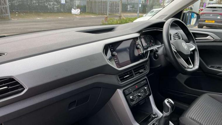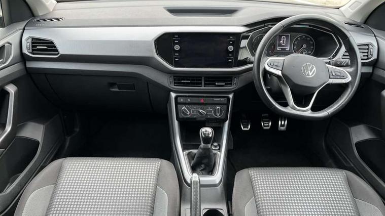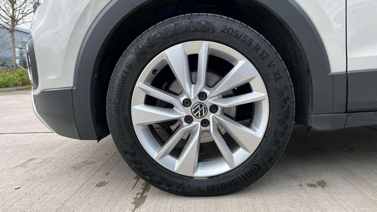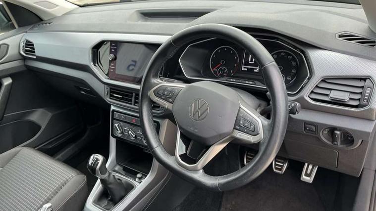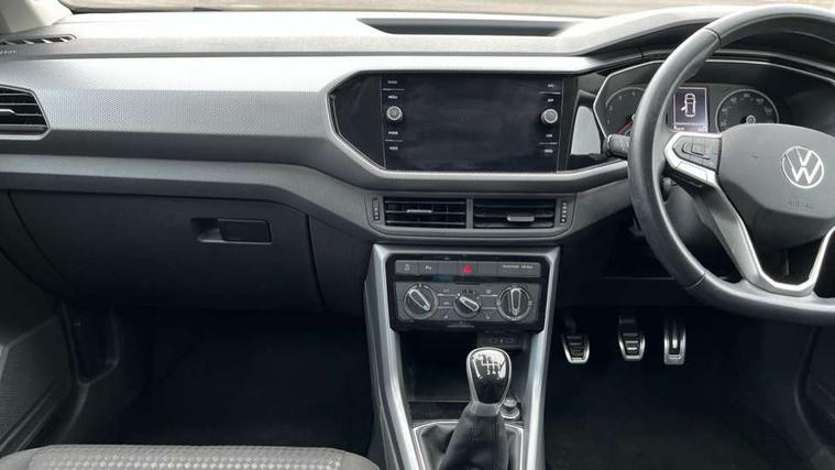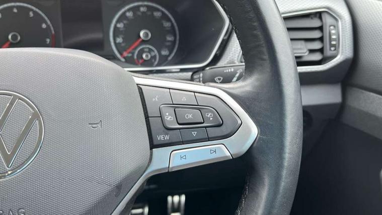 'Lights On' Reminder warning buzzer, Adaptive cruise control including front assist, forward collision warning, autonomous emergency braking, speed limiter, Blind spot monitoring, Bluetooth telephone and audio connection for compatible devices, Car information display, Driver alert system, eCall emergency call system, Lane assist, Low washer fluid warning light, Multifunction computer with visual gear change recommendation for fuel consumption, Operating permit alteration, Power assisted speed sensitive steering, Speedo, rev counter, electronic odometer, trip, service interval display, exterior temperature and fuel gauge, Stop/start system, Warning sound and light for doors and tailgate open, Warning sound and light for front seatbelts unfastened, We Connect Go Dongle, Wireless Car net app connect with Apple CarPlay, combined functionality of Apple CarPlay/Android Auto and MirrorLink, Battery regeneration during braking, Misfuel prevention device, 2x USB connection with USB charging sockets and in rear centre console, DAB Digital radio receiver, Diversity antenna for FM reception, Multi device interface (MDI) with USB connection, Music playback - MP3, WMA and AAC files, Premium USB cable for Apple or Android smartphone compatibility, Simultaneous pairing of 2 compatible mobile devices, Title and cover art display, 3D active badge on B-pillar, Active door sills, Active sill panel trims, Automatic hazard lights activation under emergency braking, Black roof rails, Body colour door handles, Body coloured bumpers, Dusk sensor + automatic driving lights, Electrically foldable, adjustable and heated door mirrors with reverse activated kerb view adjustment on passenger's side, Front and rear electric windows, Front fog lights with static cornering function, Galvanised body, Heated rear window, High level 3rd brake light, Lower door sills and door pillars in black, Radiator grille with high gloss surface and chrome strip, Rear fog light on one side, reversing light on both sides, Rear lights incorporating LED technology, Rear side wing doors, Rear tinted glass 65% approx light absorbing from B pillar backwards, Rear window aerial, Rear windscreen washer and wiper with interval delay, Reflectors in all doors, Tailgate with integrated roof spoiler, Windscreen wipers/ intermittent wipe + 4 position delay, 12V Accessory socket in centre console, 3 rear head restraints and 3 rear three point seat belts with ECE label, 3 seat bench in 2nd row, 60/40 split folding rear seat backrest, Ambient lighting and sourround lighting, Brushed stainless steel pedals, Drawer under drivers seat, Driver and front passenger sunvisor with vanity mirror, Driver's sunvisor with ticket holder, Dust and pollen filter, Front + rear carpet mats, Front and rear reading lights X 2, Front centre armrest with storage compartment, Front seat back storage pockets, Front seats with adj lumbar support, Glovebox, Heating and fresh air system with 4 stage blower, Height/reach adjust steering wheel, Instrument lighting white adjustable panel illumination, Interior light with delay, Isofix child seat preparation for 2 rear child seats, Luggage compartment cover, Luggage compartment lighting, Moveable and foldable Rear bench seat, Single front passenger seat, Storage compartment in drivers and front passengers door, Three spoke multi-function leather trimmed steering wheel and gearknob, Trapeze cloth upholstery, Variable boot floor, Winter pack - T-cross, Anti-lock Braking System (ABS) with Hydraulic Brake Assist (HBA), Automatic post collision braking system, Driver and front passenger safety-optimised head restraints, Drivers and Front Passengers airbags with front passengers airbag deactivation switch, ESC with EDL, ASR, EDTC and trailer stabilisation function, Extended and proactive pedestrian protection, Front and rear curtain airbags, Front seat side impact airbags, Height adjustable 3 point automatic front seatbelts with pretensioners, Hill start assist, Pre crash preventive occupant protection, Rear door child safety locks, Rigid safety cell with front and rear crumple zones, Single torn horn, Tyre pressure loss indicator, Volkswagen roadside assistance, Alarm with interior protection and deactivation via infotainment system, Child security locks in rear doors, Electronic engine immobiliser, Remote tailgate unlocking using key fob, Decorative strips in doors in matt silver/ center console, 17" Clayton alloy wheels + anti theft wheel bolts, Breakdown kit,