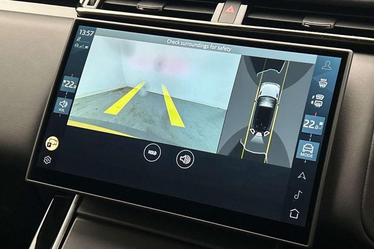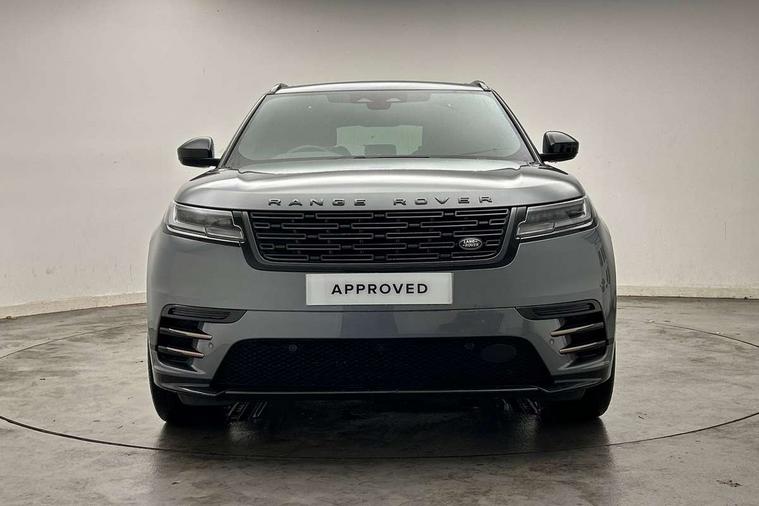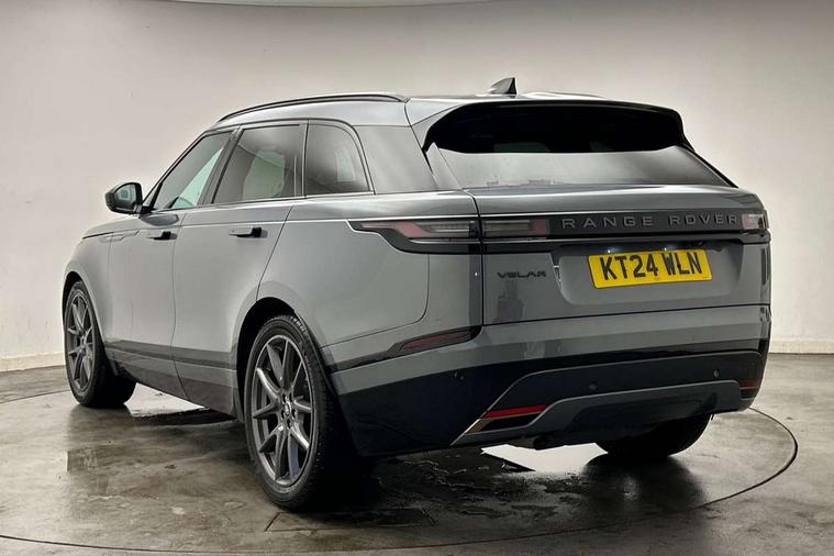 Adaptive cruise control with steering assist, Android Auto, Apple CarPlay, Blind spot assist, Bluetooth connectivity, Brake pad wear indicator warning light, Driver condition monitor, eCall emergency call system, Front and rear parking aid, InControl remote, Land Rover InControl apps, Lane keep assist, Pivi pro with connected navigation, Rear collision monitor, Rear traffic monitor, Service indicator, Speed proportional electronic power assisted steering (EPAS), Traffic sign recognition with adaptive speed limiter, Trip computer, Voice control system, Wireless device charging, 8 speed automatic transmission, Adaptive dynamics, All terrain progress control, Electronic air suspension, Open differential with torque vectoring by braking, Single speed transfer box, DAB radio, Steering wheel mounted controls, 3rd brake light, Acoustic laminated windscreen, Auto dimming interior rear view mirror, Automatic headlamp levelling, Automatic headlights, Body coloured bumpers, Boot protection plate, Electric windows with one touch open/close and anti trap, Flush deployable exterior door handles, Follow me home headlights, Heated rear window with timer, Heated washer jets, Heated windscreen, Metal front tread plates, Metal load space scuff plates, Pixel LED headlights with signature DRL, Power fold, auto-dimming, heated door mirrors with memory and approach lights, Rain sensor windscreen wipers, Rear animated directional indicators, Rear fog lights, Rear side wing doors, Rear wash/wipe, Tailgate/boot lid spoiler, Trailer stability assist, Velar badge, 3 seat bench in 2nd row, Ambient lighting, Bright metal pedals, Carpet mats, Driver/passenger sunvisors with illuminated vanity mirrors, Ebony morzine headlining, Electrically adjustable steering column, Extended leather upgrade, Heated steering wheel, Isofix system on outer rear seats, Loadspace cover, Overhead lighting console, Overhead stowage for sunglasses, Passive front headrests, Rear air vents, Rear centre headrest, Single front passenger seat, Twin front cupholders, Twin sliding front centre armrest, Online pack with data plan - Velar, Power socket pack 2 - Velar, 355mm Front and 325mm Rear brakes, 3x3 point rear seatbelts, Anti-lock braking system (ABS), Cornering brake control, Curtain airbags, Customer configurable autolock, Door side intrusion beams, Driver airbag, DSC - Dynamic Stability Control, Electronic brake force distribution, Electronic parking brake, Electronic traction control, Emergency braking, Front and rear seatbelt reminder, Hill descent control, Hill launch assist, Low traction launch, Passenger airbag, Power operated child locks, Rear airbags, Roll stability control, Side airbags, Tyre pressure monitoring system (TPMS), Global lock and unlock switch on driver door, Immobiliser, Intrusion sensor, Keyless entry, Lock only switch on front passenger door, Locking wheel nuts, Perimetric alarm, Remote central locking, All season tyres,