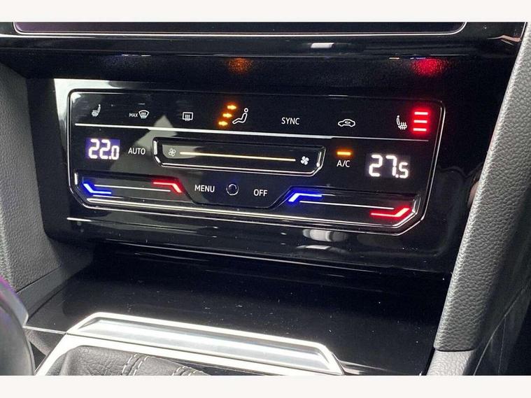 Adaptive cruise control (ACC) with speed limiter, front assist (reacting vehicles pedestrian and cyclists) and follow to stop, App connect including wireless Apple CarPlay, Camera for warning system, Digital cockpit with 10.25" high resolution TFT display screen with customisable menus and information, Driver alert system with fatigue detection, Driver profile selection including ECO function, Dynamic road sign display, eCall - Emergency call service for SOS calls to emergency response, Emergency assist, Hands free boot opening, Press and drive key, Progressive steering, Speedo and rev counter, electronic odometer, trip, service interval display and exterior temperature gauge, Tailgate, Travel assist - Lane keeping assist and traffic jam assist, Voice activation for telephone and navigation, Start/stop function with battery regeneration, External, USB type C data sockets with increased charging performance front (45 Watt), Premium USB cable in choice of either Apple or Android smartphone compatibility, Auto dimming interior rear view mirror, Automatic headlights, Body colour door handles, Body colour side skirt, Body coloured top and matt black lower door mirrors with integrated indicators, Chrome plated radiator grille inserts and light switch surrounds, Chrome side window surrounds, Dynamic headlight range control, Electric folding door mirror, adjustable, heated with front passenger exterior mirror lowering function, Front and rear electric windows, Front and rear stainless steel door sill protection, Front windscreen washers and wipers with 4x interval delay, Heat insulating side and rear windows, Heated rear windscreen, Heated windscreen washer jets, LED 3rd brake light, LED rear combination lamp with dynamic indicators, LED rear number plate lights, Panoramic sunroof with tilting and sliding including integrated roller blind, R Line design body coloured bumpers, Rain sensor, Rear fog lamp on one side and reversing lamp on both sides, Rear side wing doors, Rear tinted glass from B pillar backwards, approx 65% tinted, Rear windscreen washer and wiper with interval delay, Roof spoiler, Tailpipes behind rear bumper, 12V socket in front centre console, 12V socket on rear of front centre armrest, 3 rear head restraints, 3 seat bench in 2nd row, 30 colours options interior ambient lighting, 60:40 split folding rear seat backrests with centre armrest, Air care climatronic 3 Zone electronic air conditioning with automatic air recirculation, Black roof lining, Chrome trim on upper and lower air vents extending across cockpit, Driver and front passenger sunvisor with vanity mirror, Front + rear carpet mats, Front cupholders x 2, Front footwell illumination, Front sports comfort seats, Glovebox, Heated front seats, Height/reach adjust steering wheel, Isofix child seat preparation easy fit for two outer rear seats, Luggage compartment lighting, Removable luggage compartment cover, Single front passenger seat, Split folding front seat backrest with front centre armrest, Stainless steel pedals, Two LED front reading light, 3 rear three point seatbelts, ABS+EBD+Brake assist, Child locks on rear doors, Driver airbag and front passenger airbags with deactivation switch including driver knee airbags, Electronic parking brake, Electronic stability control (ESC) and Electromechanical brake booster, Front disc brakes, Front side airbags with curtain airbags, Hill start assist, Pro active occupant protection to detect critical situations with elevated accident potential from the front, Rear disc brakes, Three point height adjust front seatbelts + pretensioners, Two tone horn, Tyre pressure loss indicator, Warning buzzer for seatbelts if unfastened, Warning triangle, Alarm with interior protection with deactivation via infotainment system, Electronic engine immobiliser, Keyless entry system including start/stop button on centre console, Remote central locking, Aluminium decorative inserts, Chrome trim on lower doors in front and rear, Leatherette insert on door and side trim panel in foam film, Piano black decorative inserts in centre console,