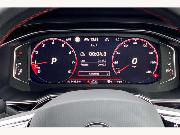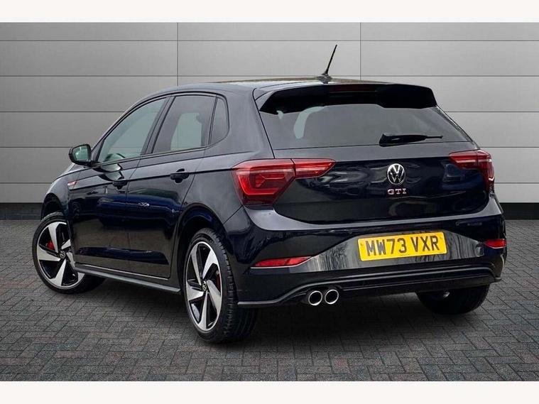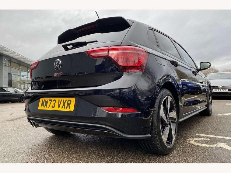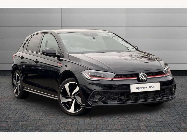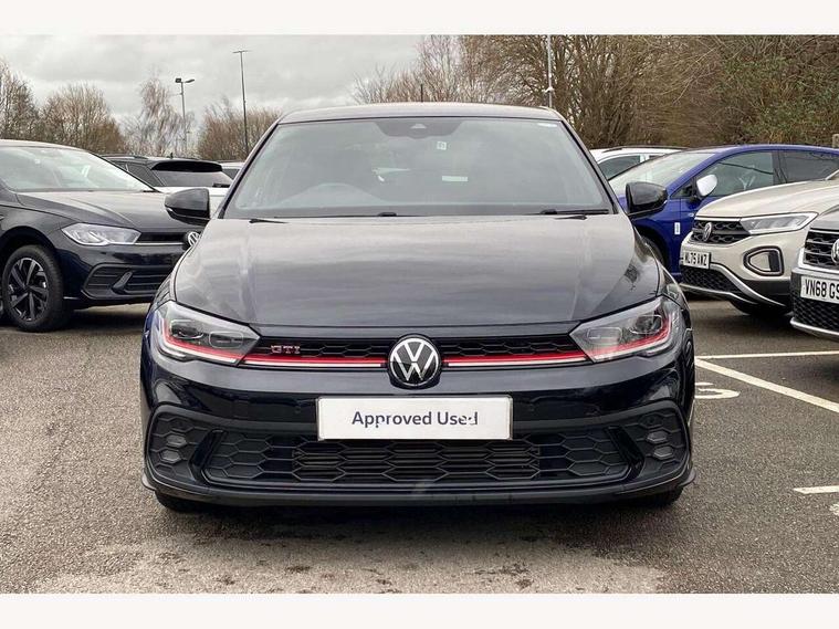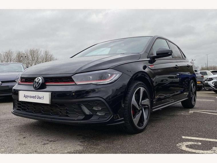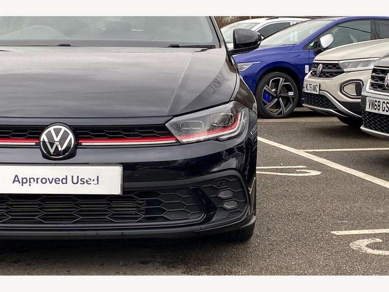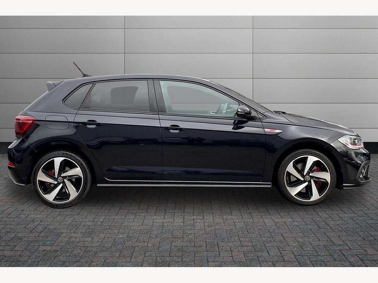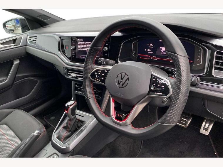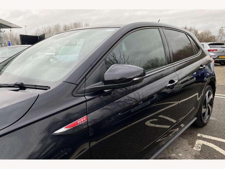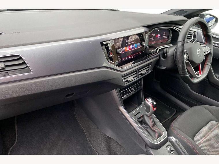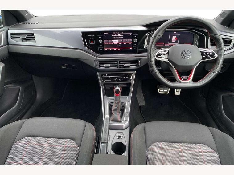Adaptive cruise control with follow-to-stop and speed limiter, Bluetooth mobile phone interface, Digital Cockpit Pro with 10.25" Display, Driver alert system, Dynamic road sign display, Eco mode, Emergency call service, Power assisted speed sensitive steering, Preparation for We connect and We connect plus, Speedo and rev counter, electronic odometer, trip, service interval display and fuel gauge, Travel Assist - Lane keeping system and traffic jam assist, Travel assist including emergency assist, Trip computer, Warning signal and warning light for front and rear seatbelts not fastened, Washer fluid level indicator, Wireless app connect, Adaptive chassis control, Front wheel drive, Heavy duty rear axle, Rear shock absorpion sports version, Sports select suspension lowered by 15mm, Start-stop system with battery regeneration (recuperation - energy recovery during braking), DAB Digital radio, Diversity antenna for FM reception, Front and rear 6 speakers, Body colour bumpers, Body colour door handles, Electric front windows, Front scuff plates in aluminium with GTI logo, Heat insulating darkened glass in side and rear windows, Heat insulating glass windscreen, Power folding adjustable/heated exterior mirrors and front passenger exterior mirror lowering function, Rain sensor, Rear electric windows, Rear fog light, Rear side wing doors, Rear windscreen washer and wiper with interval delay, Sport bumpers with air intakes with honeycomb structure, Third brake light, Twin chrome exhaust tailpipes, 12V power socket in centre console, 2 USB-C ports in the front, 2 USB-C charging sockets on the center console in the rear, 3 rear head restraints, 60/40 split folding rear seat and rear seat bench not split, Air care climatronic air conditoning system with active combination filter and 2-zone temperature control, Black roof lining, Chrome plated radiator grille inserts, air vent surrounds and light switch surrounds, Door and side trim panel, Driver and front passenger seat height adjustment, Driver/passenger sunvisors with illuminated vanity mirrors, Front + rear carpet mats in recycled material, Front centre armrest, Front footwell illumination, Front seat backrest storage pockets, GTI sports gearshift knob in aluminium leather, Handbrake lever handle in leather, Headliner in recycled material, Isofix child seat preparation easy-fit (for two outer rear seats, and front passenger seat) compatible with I-size, LED interior light with switch off delay and dimmer, 2 reading lights front and rear, Luggage compartment cover, Luggage compartment floor, Luggage compartment lighting, Single front passenger seat, Stainless steel pedals, Standard pedal cluster, Three spoke leather wrapped multifunction sports steering wheel with shifting paddles, IQ LED matrix headlights pack - Polo, Light and sight pack - Polo GTI, 3 point height adj front seatbelts + pretensioners, 3x3 point rear seatbelts, ABS, Driver and front passenger airbag with front passenger airbag deactivation, Drivers and front passengers safety optimised head restraints, ESC (Electronic stability control) + EDL (Electronic Differntial lock) and ASR (Traction control), Extended and predictive pedestrian/ cyclist protection, Front and rear disc brakes with red brake calipers, Front curtain and side airbags with center airbag, Hill hold control, Manual child lock in rear doors, Two tone horn, Tyre pressure loss indicator, Alarm with interior protection, Anti-theft alarm system with interior monitoring, backup horn, and towing protection, Anti-theft wheel bolts, Electronic engine immobiliser, Chrome applications on rotary light, mirror adjustment, window regulator switches, outlet with frame in black, Low rolling resistance tyres,