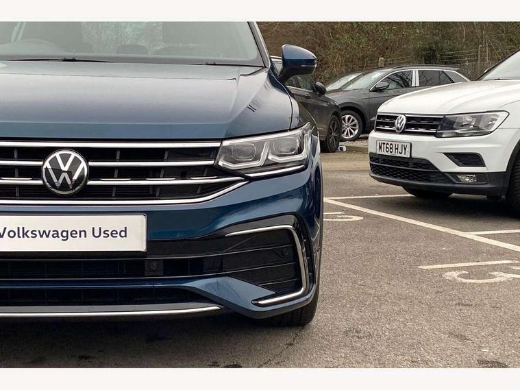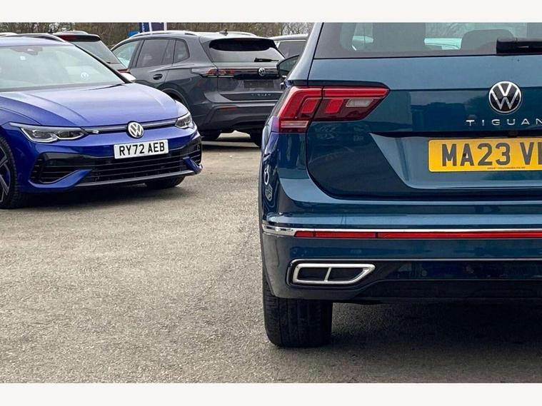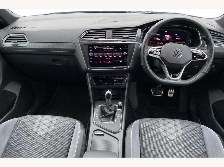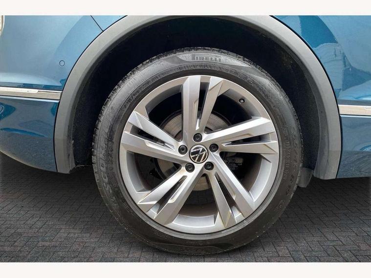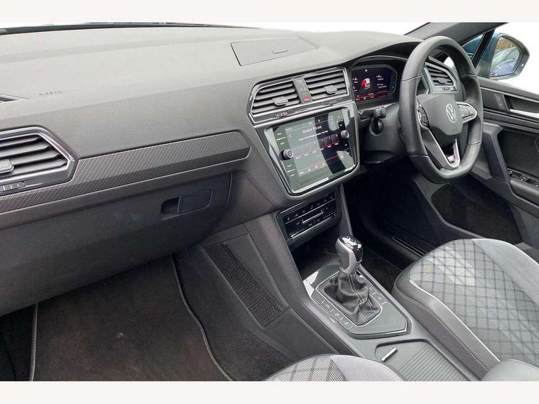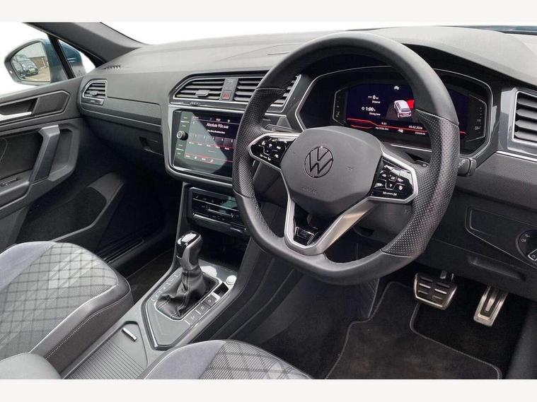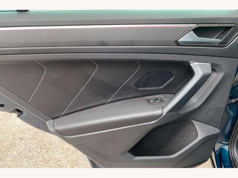 Adaptive cruise control ACC stop and go including speed limiter, App-Connect incl. App-Connect Wireless for Apple CarPlay and Android Auto, Bluetooth phone integration system, Comfort drive travel assist, Digital cockpit pro, Driver alert system, Driver profile selection, Dynamic road sign display, eCall emergency call system, Electromechanical speed sensitive power steering, Emergency assist, Front and rear parking distance sensors, Instrument cluster mph speedometer Great Britain, Lane keeping system Lane Assist, Lights on warning, Multifunction front facing camera, Outside temperature display, Premium multifunction display with multi colour display, Preparation for subsequent activation Navigation feature Discover Media includes Streaming and Internet, Remote control boot opening, Rev counter, Service interval indicator, Speed limit display, Start/stop system with regenerative braking, Tailgate/trunk lid unlocking from outside, Trip computer, Warning sound and light for doors and tailgate open, Battery regeneration during braking, Sports suspension, 8 Speakers, Digital radio reception DAB+, Diversity antenna for FM reception, Radio, Auto dimming interior rear view mirror, Automatic headlight control system, Body colored bumpers in R-Line style, Body colored exterior mirror housings, Body colour door handles, Chrome moldings on the side windows, Coming/leaving home lighting function, Dynamic headlight range control, Front and rear electric windows, Heated rear window, High level 3rd brake light, Laminated safety glass windshield, heat and sound insulating, LED headlamps with LED separate daytime running light and dynamic cornering light, LED rear combination lamps, LED rear number plate lights, License plate carrier in front and rear, Poor weather light and cornering light, Power adjustable, folding and heated door mirrors with surround lighting, front passenger exterior mirror lowering function, Privacy glass for rear side windows and rear window, R Line body kit, R Line side sills, Rain sensor, Rear exhaust tailpipe, Rear fog lamp, Rear side wing doors, Rear spoiler in R style, Rear windscreen washer and wiper with interval delay, Side and rear windows in heat insulating glass, Trailer Stability Programme, Unique R Line badging, Windscreen wipers/ intermittent wipe + 4 position delay, 12V outlet in center console rear and in luggage compartment, 12V outlet in front and tray, 2 LED front reading lights, 2 LED rear reading lights, 3 bench rear seats in 2nd row, 3 rear headrests, Air Care Climatronic 3 zone automatic climate control with enhanced air filter and controls in the rear, Art Velours greyson sports cloth upholstery, Backrest release for left front seat, Black headlining, Brushed stainless steel pedals and footrest, Carpet mats in front and rear with decorative stitching in Gray, Climate control unit rear with touch function, Door and side trim panel in foam film, insert in leatherette, Driver + front passenger lumbar support, Front footwell illumination, Front scuff plates in aluminum with R-Line logo, Front seats head restraints (x-adjustment), Height adjustable front seats, Height/reach adjust steering wheel, Isofix Preparation 2 Rear child seats, Leather gear knob, Rear bench seat asymetrically split folding, longitudinally movable and folding with load-through hatch and center armrest, Remote unlocking for rear seat backrest, Single front passenger seat, Sun visors with illuminated vanity mirrors, Top front comfort seats, Winter pack - Tiguan, 3 point seat belt for centre rear seats, 3 point seat belts with seat belt pretensioners for the outer rear seats, Curtain airbags for front and rear passengers, Driver/Front Passenger airbags, Drivers knee airbag, Electronic parking brake with auto hold, Electronic Stability Control with driver steering recommendation, ABS, ASR, EDL, EDTC and trailer stabilization, Front assist with autonomous emergency braking (for Adaptive Cruise Control ACC up to 130 mph), Front disc brakes, Front passenger airbag deactivation, Front side airbags, Height adjustable front 3 point seatbelts + pretensioners, Manual child proof rear door locks, Pedestrian monitoring system, Proactive passenger protection system in combination with front assist, Rear disc brakes, Two tone horn, Tyre pressure loss indicator, Warning sound and light for front seat belts if unfastened, Warning triangle, Anti theft alarm system with interior monitoring, backup horn and towing protection, Anti theft wheel bolts, Electronic engine immobiliser, Keyless locking and starting system keyless access with safelock, Chrome elements on the mirror switch power window switches and door pulls, Decorative inserts Carbon Gray for dashboard and front door trim panels, Interior door handle in matte chrome, 19" Valencia alloy wheels with AirStop tyres, Tool kit, Tyre mobility kit Includes 12V compressor and tyre sealant,
