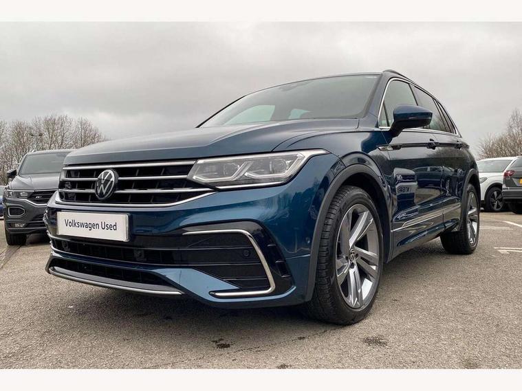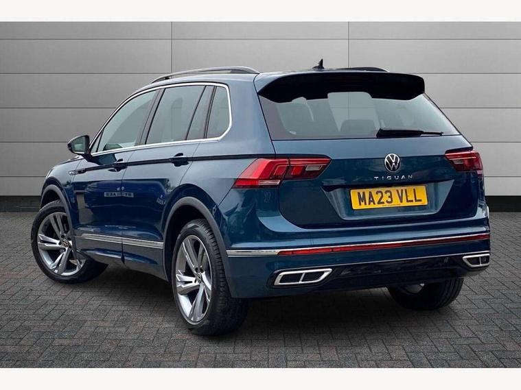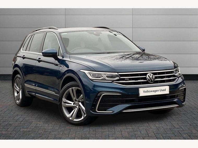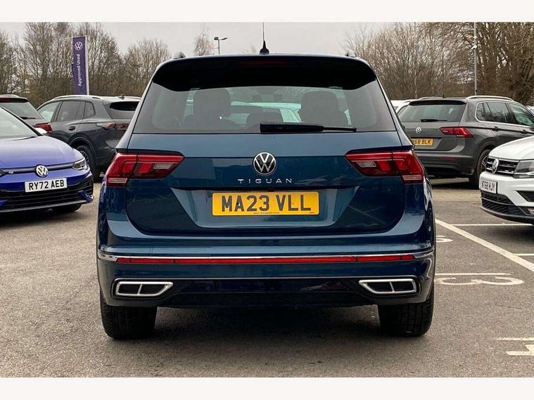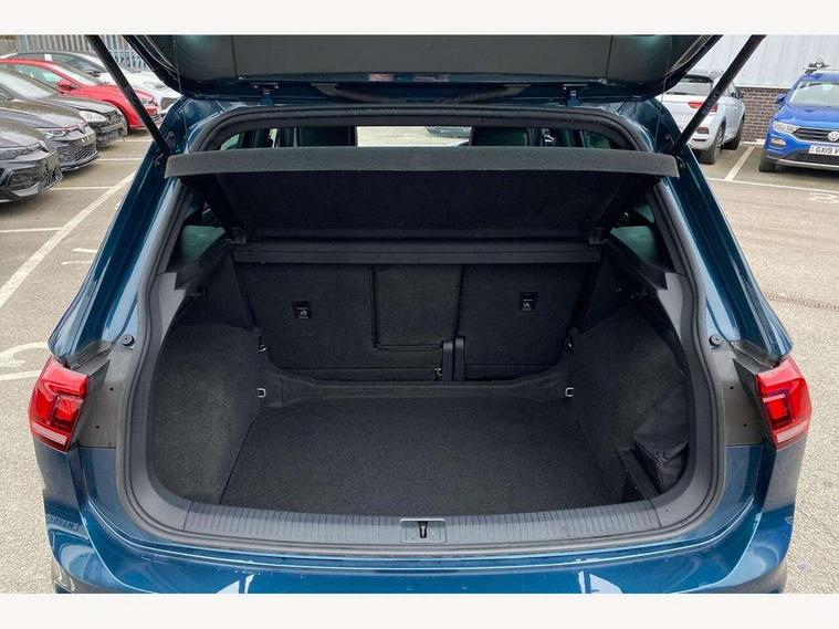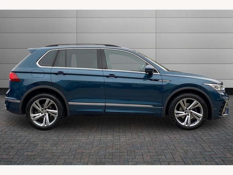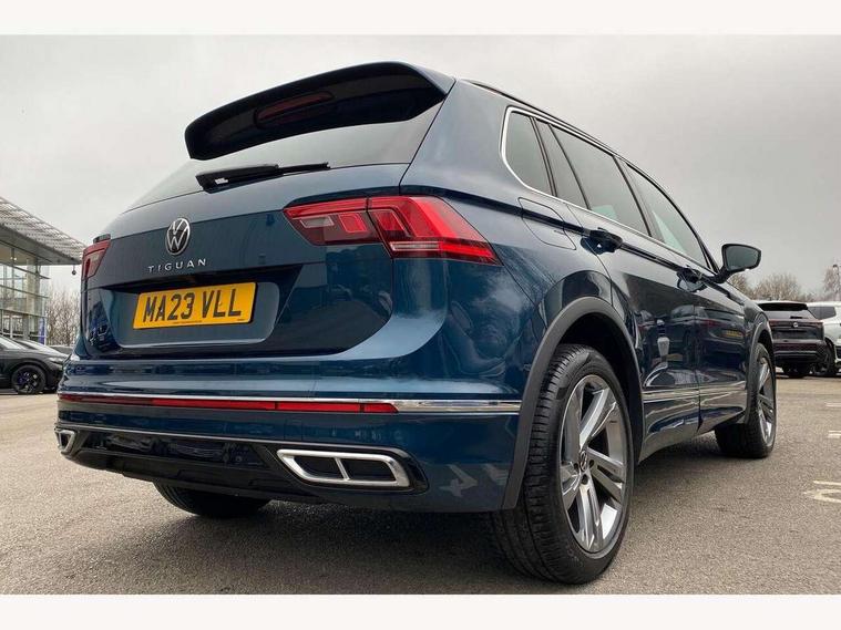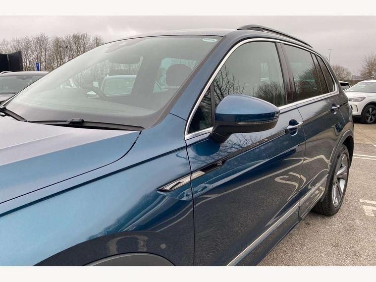 Adaptive cruise control ACC stop and go including speed limiter, App-Connect incl. App-Connect Wireless for Apple CarPlay and Android Auto, Bluetooth phone integration system, Comfort drive travel assist, Digital cockpit pro, Driver alert system, Driver profile selection, Dynamic road sign display, eCall emergency call system, Electromechanical speed sensitive power steering, Emergency assist, Front and rear parking distance sensors, Instrument cluster mph speedometer Great Britain, Lane keeping system Lane Assist, Lights on warning, Multifunction front facing camera, Outside temperature display, Premium multifunction display with multi colour display, Preparation for subsequent activation Navigation feature Discover Media includes Streaming and Internet, Remote control boot opening, Rev counter, Service interval indicator, Speed limit display, Start/stop system with regenerative braking, Tailgate/trunk lid unlocking from outside, Trip computer, Warning sound and light for doors and tailgate open, Battery regeneration during braking, Sports suspension, 8 Speakers, Digital radio reception DAB+, Diversity antenna for FM reception, Radio, Auto dimming interior rear view mirror, Automatic headlight control system, Body colored bumpers in R-Line style, Body colored exterior mirror housings, Body colour door handles, Chrome moldings on the side windows, Coming/leaving home lighting function, Dynamic headlight range control, Front and rear electric windows, Heated rear window, High level 3rd brake light, Laminated safety glass windshield, heat and sound insulating, LED headlamps with LED separate daytime running light and dynamic cornering light, LED rear combination lamps, LED rear number plate lights, License plate carrier in front and rear, Poor weather light and cornering light, Power adjustable, folding and heated door mirrors with surround lighting, front passenger exterior mirror lowering function, Privacy glass for rear side windows and rear window, R Line body kit, R Line side sills, Rain sensor, Rear exhaust tailpipe, Rear fog lamp, Rear side wing doors, Rear spoiler in R style, Rear windscreen washer and wiper with interval delay, Side and rear windows in heat insulating glass, Trailer Stability Programme, Unique R Line badging, Windscreen wipers/ intermittent wipe + 4 position delay, 12V outlet in center console rear and in luggage compartment, 12V outlet in front and tray, 2 LED front reading lights, 2 LED rear reading lights, 3 bench rear seats in 2nd row, 3 rear headrests, Air Care Climatronic 3 zone automatic climate control with enhanced air filter and controls in the rear, Art Velours greyson sports cloth upholstery, Backrest release for left front seat, Black headlining, Brushed stainless steel pedals and footrest, Carpet mats in front and rear with decorative stitching in Gray, Climate control unit rear with touch function, Door and side trim panel in foam film, insert in leatherette, Driver + front passenger lumbar support, Front footwell illumination, Front scuff plates in aluminum with R-Line logo, Front seats head restraints (x-adjustment), Height adjustable front seats, Height/reach adjust steering wheel, Isofix Preparation 2 Rear child seats, Leather gear knob, Rear bench seat asymetrically split folding, longitudinally movable and folding with load-through hatch and center armrest, Remote unlocking for rear seat backrest, Single front passenger seat, Sun visors with illuminated vanity mirrors, Top front comfort seats, Winter pack - Tiguan, 3 point seat belt for centre rear seats, 3 point seat belts with seat belt pretensioners for the outer rear seats, Curtain airbags for front and rear passengers, Driver/Front Passenger airbags, Drivers knee airbag, Electronic parking brake with auto hold, Electronic Stability Control with driver steering recommendation, ABS, ASR, EDL, EDTC and trailer stabilization, Front assist with autonomous emergency braking (for Adaptive Cruise Control ACC up to 130 mph), Front disc brakes, Front passenger airbag deactivation, Front side airbags, Height adjustable front 3 point seatbelts + pretensioners, Manual child proof rear door locks, Pedestrian monitoring system, Proactive passenger protection system in combination with front assist, Rear disc brakes, Two tone horn, Tyre pressure loss indicator, Warning sound and light for front seat belts if unfastened, Warning triangle, Anti theft alarm system with interior monitoring, backup horn and towing protection, Anti theft wheel bolts, Electronic engine immobiliser, Keyless locking and starting system keyless access with safelock, Chrome elements on the mirror switch power window switches and door pulls, Decorative inserts Carbon Gray for dashboard and front door trim panels, Interior door handle in matte chrome, 19" Valencia alloy wheels with AirStop tyres, Tool kit, Tyre mobility kit Includes 12V compressor and tyre sealant,