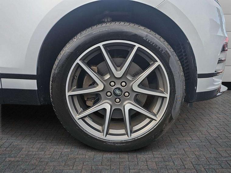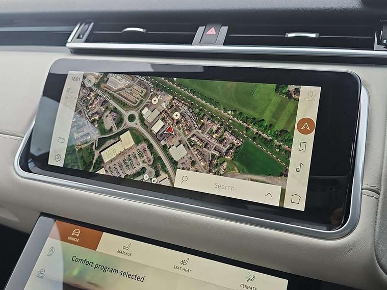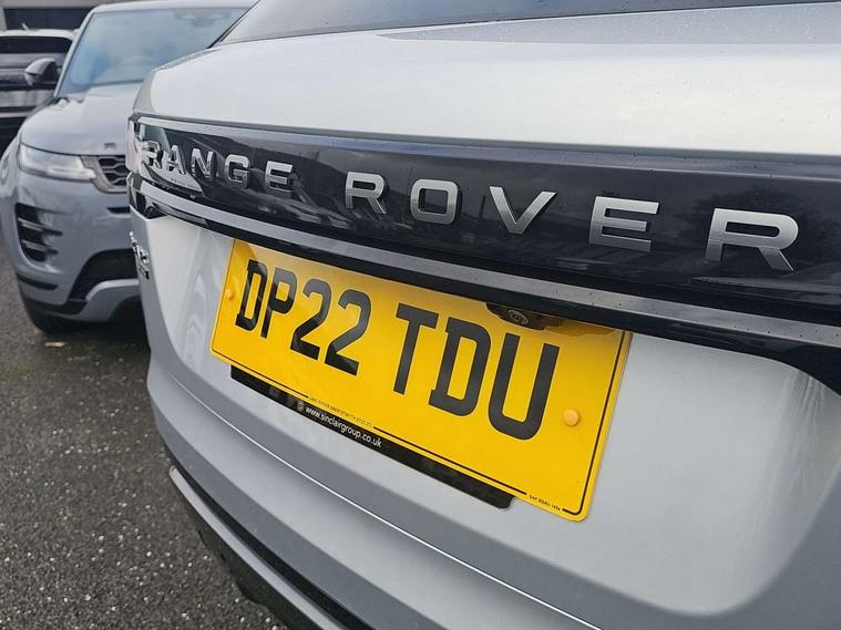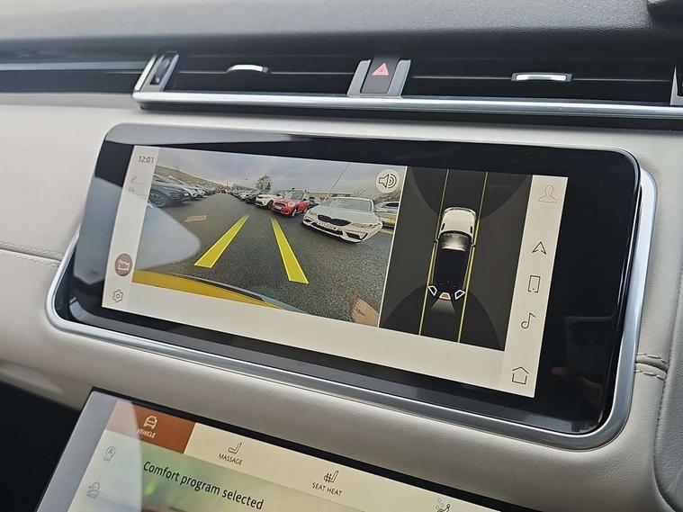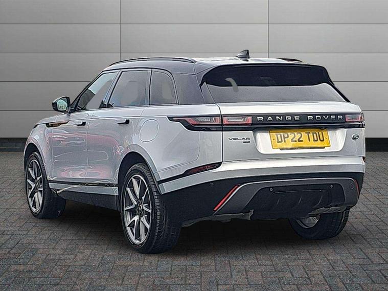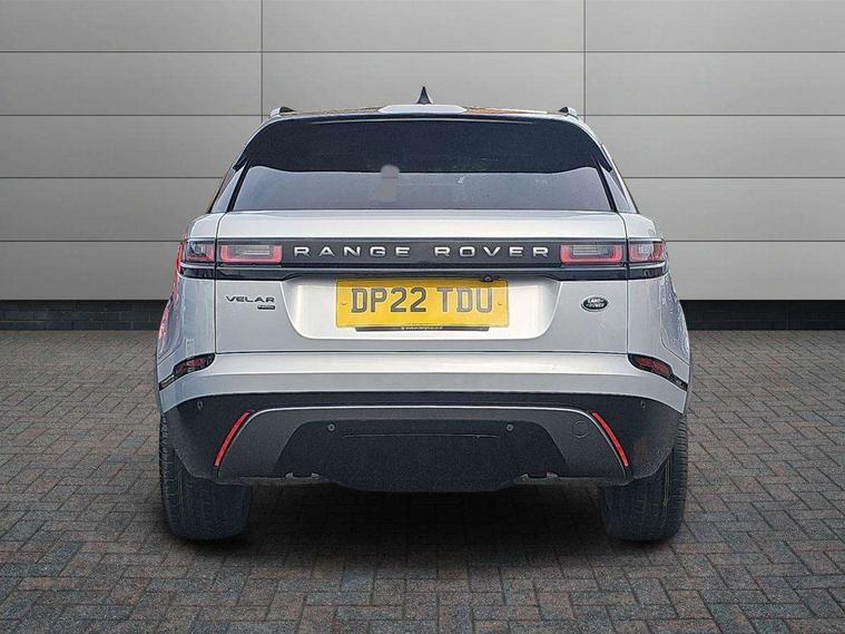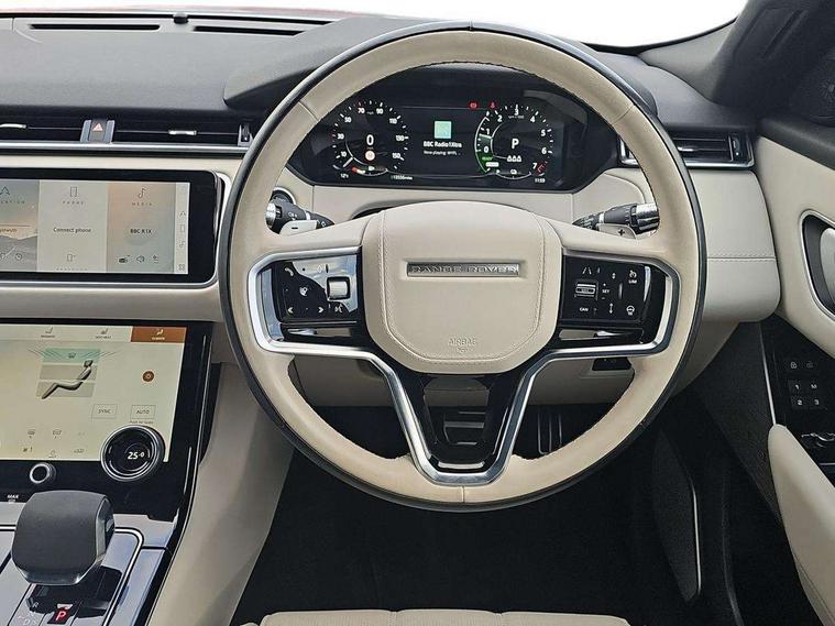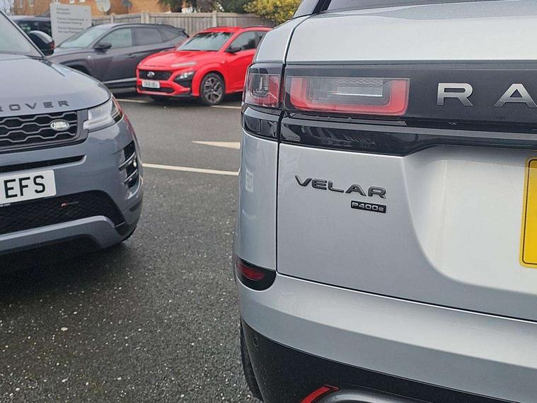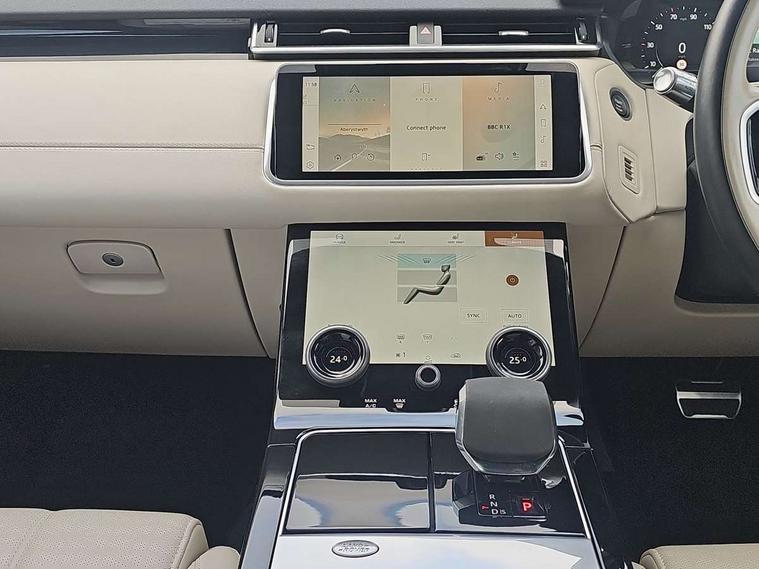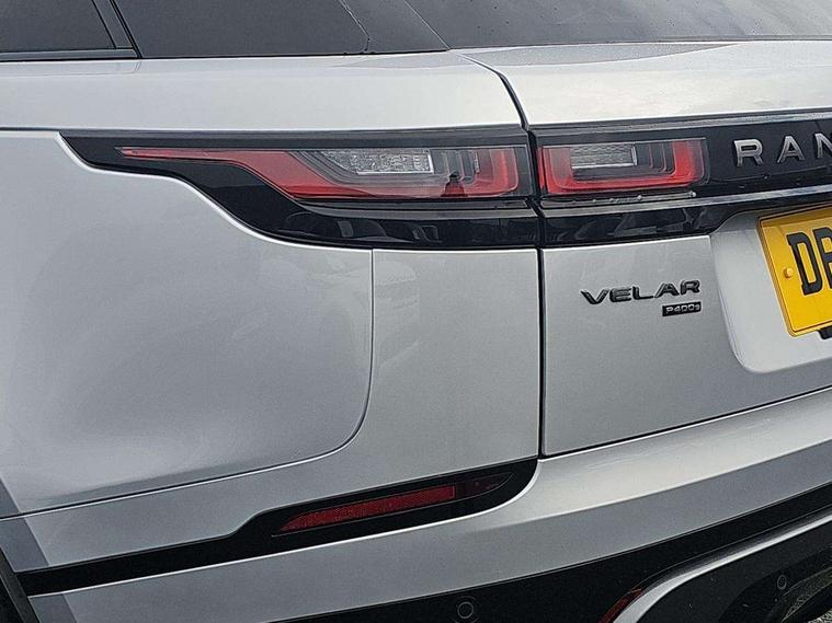 10" deployable touchscreen, Adaptive cruise control with steering assist, Android Auto, Apple car play, Blind spot assist, Bluetooth connectivity, Brake pad wear indicator warning light, Driver condition monitor, eCall emergency call system, InControl remote, Interactive Driver display instrument cluster, Land Rover InControl apps, Lane keep assist, Pivi pro with connected navigation, Push button start, Rear collision monitor, Rear traffic monitor, Service indicator, Speed proportional electronic power assisted steering (EPAS), Traffic sign recognition with adaptive speed limiter, Trip computer, Voice control system, 8 speed automatic transmission, AC/DC charging, Adaptive dynamics, All terrain progress control, Coil suspension system, Home charging cable, Open differential with torque vectoring by braking, Public charging cable, Single speed transfer box, Digital Audio Broadcast radio-DAB, Steering wheel mounted controls, Acoustic laminated windscreen, Adaptive front lighting system, Auto dimming interior rear view mirror, Automatic headlamp levelling, Automatic headlights, Body coloured bumpers, Boot protection plate, Electric heated/power fold door mirrors with approach lights and auto dimming driver side, Electric windows with one touch open/close and anti trap, Flush deployable exterior door handles, Follow me home headlights, Heated rear window with timer, Heated washer jets, Heated windscreen, LED 3rd brake light, Metal load space scuff plates, Rain sensor windscreen wipers, Rear animated directional indicators, Rear fog lights, Rear side wing doors, Rear wash/wipe, Tailgate/boot lid spoiler, Trailer stability assist, Velar and R-dynamic badge, 3 seat bench in 2nd row, Ambient lighting, Bright metal pedals, Driver/passenger sunvisors with illuminated vanity mirrors, Electric adjustable steering column, Isofix system on outer rear seats, Loadspace cover, Overhead lighting console, Overhead stowage for sunglasses, Passive front headrests, Rear air vents, Rear centre headrest, Satin chrome gearshift paddles, Single front passenger seat, Twin front cupholders, Twin sliding front centre armrest, Online pack with data plan - Velar, 380mm front brakes and 325mm rear brakes, 3x3 point rear seatbelts, Anti-lock braking system (ABS), Cornering brake control, Curtain airbags, Customer configurable autolock, Door side intrusion beams, Driver airbag, DSC - Dynamic Stability Control, Electronic brake force distribution, Electronic parking brake, Electronic traction control, Emergency brake assist, Emergency braking, Front and rear seatbelt reminder, Hill descent control, Hill launch assist, Low traction launch, Passenger airbag, Power operated child locks, Rear airbags, Roll stability control, Side airbags, Tyre pressure monitoring system, Unpainted brake calipers, Global lock and unlock switch on driver door, Immobiliser, Intrusion sensor, Keyless entry, Lock only switch on front passenger door, Locking wheel nuts, Perimetric alarm, Remote central locking,