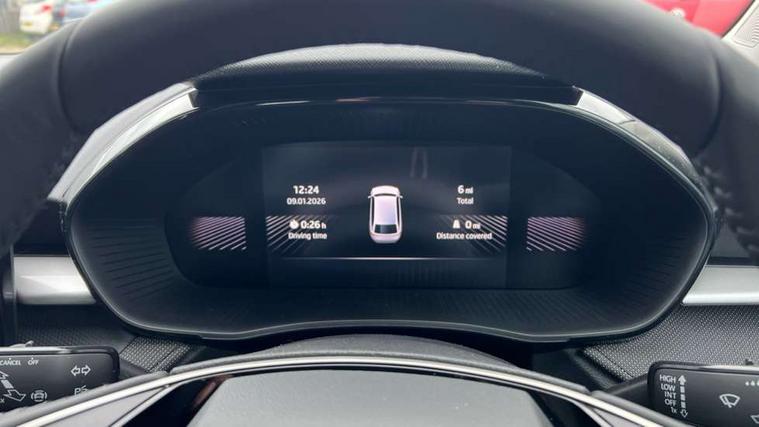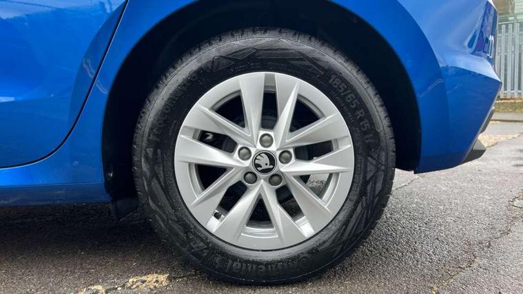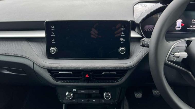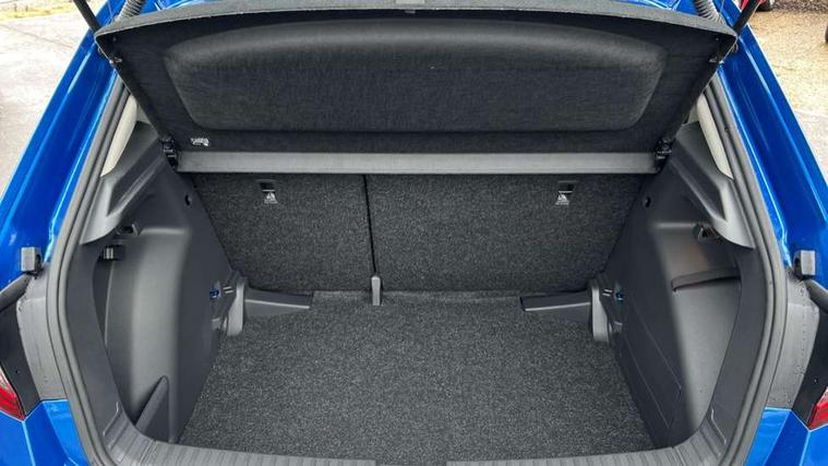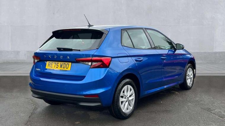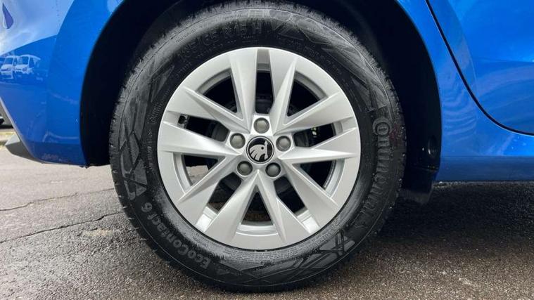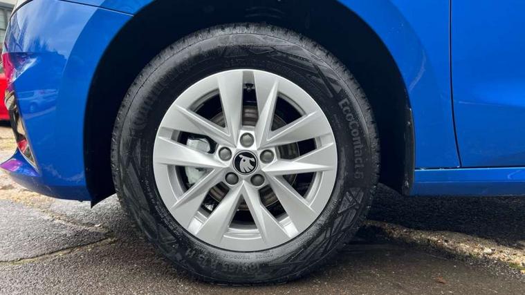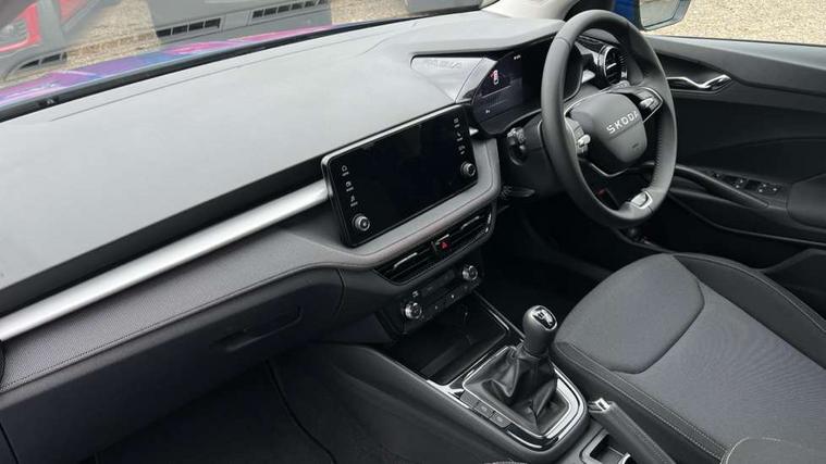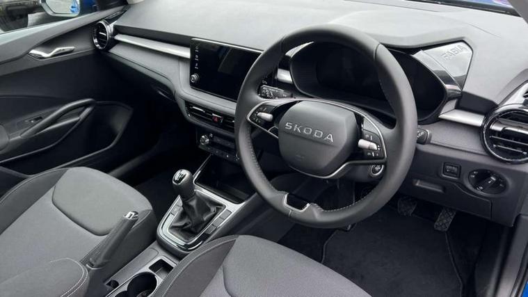8" Digital instrument display, Advanced driver attention and drowsiness monitor, Bluetooth connection, Driver alert system, Electromechanical power steering, Exterior temperature gauge, Rear parking sensors, Service interval indicator, Traffic sign recognition, Wireless SmartLink for Apple CarPlay and Android Auto, 6 Speakers (4 in front and 2 in rear), 8.25" Skoda infotainment touchscreen display, Auxiliary socket for external MP3 player, DAB digital radio reception, Auto dimming rear view mirror, Body colour door mirrors, Body coloured bumpers, Door mirror integrated indicators, Front and rear electric windows, Front window wiper intermittent control, Headlight range control - Automatic, LED 3rd brake light, LED daytime running lights with coming and leaving home feature, LED rear lights, Rear LED fog light, Rear side wing doors, Rear window wiper with washing nozzles, Roof mounted spoiler, SKODA tailgate lettering in chrome, Unique dark chrome design logo on alloy wheels, 2 reading lights in front and 2 reading lights in rear, 3 rear headrests, Backrest split and folding, Central console with removable cup holder and storage box, Chrome handbrake release button, Dual zone air conditioning with climatronic electronic control, Fabric upholstery, Front centre armrest, Gearshift knob/handle in leather, Grain satin black interior door handles, Hand brake lever handle in leather, Height adjustable front headrests, Height adjustable front seats, Height adjustable steering wheel, ISOFIX and TopTether anchorage points to the outer rear seats, ISOFIX and TopTether on the front passenger seat, Luggage compartment lighting, Manually adjustable lumbar support in front seats, Pollen filter, Rear seat bench unsplit, Single front passenger seat, Skoda lettering on steering wheel, Storm grey headlining, Sun visors with mirror and airbag label on passenger side, Textile floor mats, Ambient lighting pack - Fabia Hatchback, 3-point height adjustable front seats belts with pretensioner and force limiter, Automatic warning lights in case of crash, Driver and passengers airbag with switch off function, e-Call+, ESC including ABS, MSR, ASR, EDS, HBA and XDS, Front and rear seat belt warning, FRONT ASSIST (AEB City and AEB Inter Urban), Front side airbags, Head airbags, One tone horn, Pedestrian protection, Three rear 3-points safety seat belts with pretensioner and force limiter including stop function for outer rear seat belts, Tyre pressure monitoring system, Anti-theft alarm system including immobiliser, interior monitoring, backup horn, and towing protection, Central locking with radio remote control, interior controls, SAFE function and 2 foldable keys, KESSY - Keyless engine start/stop, Black painted air vents, Grain satin black central console cover, Metallic grey upper decorative trim, Satin black door and side trim panel in front, Textile Kota grey lower decorative inserts, Anti-theft wheel bolts protection, Super-low rolling resistance tyres,