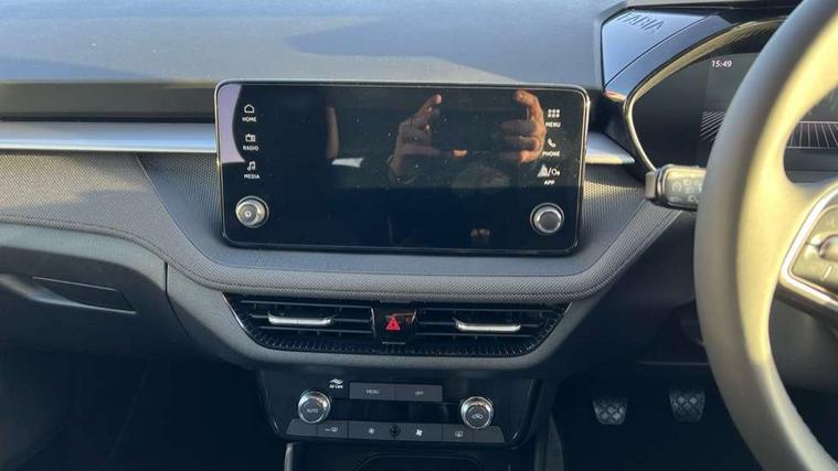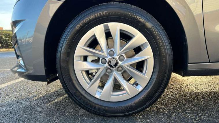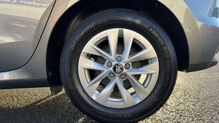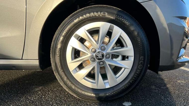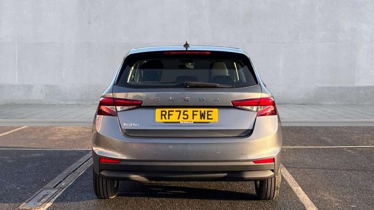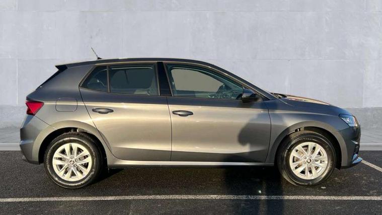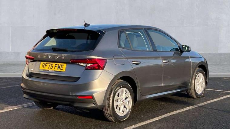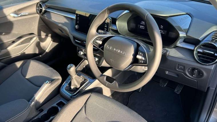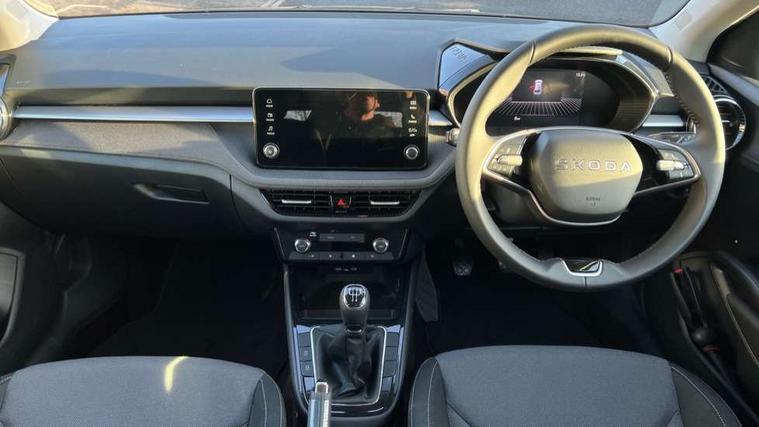 8" Digital instrument display, Advanced driver attention and drowsiness monitor, Bluetooth connection, Driver alert system, Electromechanical power steering, Exterior temperature gauge, Service interval indicator, Traffic sign recognition, Wireless SmartLink for Apple CarPlay and Android Auto, 6 Speakers (4 in front and 2 in rear), 8.25" Skoda infotainment touchscreen display, Auxiliary socket for external MP3 player, DAB digital radio reception, Auto dimming rear view mirror, Body colour door mirrors, Body coloured bumpers, Door mirror integrated indicators, Front and rear electric windows, Front window wiper intermittent control, Headlight range control - Automatic, LED 3rd brake light, LED daytime running lights with coming and leaving home feature, LED rear lights, Rear LED fog light, Rear side wing doors, Rear window wiper with washing nozzles, Roof mounted spoiler, SKODA tailgate lettering in chrome, Unique dark chrome design logo on alloy wheels, 2 reading lights in front and 2 reading lights in rear, 3 rear headrests, Backrest split and folding, Central console with removable cup holder and storage box, Chrome handbrake release button, Dual zone air conditioning with climatronic electronic control, Fabric upholstery, Front centre armrest, Gearshift knob/handle in leather, Grain satin black interior door handles, Hand brake lever handle in leather, Height adjustable front headrests, Height adjustable front seats, Height adjustable steering wheel, ISOFIX and TopTether anchorage points to the outer rear seats, ISOFIX and TopTether on the front passenger seat, Luggage compartment lighting, Manually adjustable lumbar support in front seats, Pollen filter, Rear seat bench unsplit, Single front passenger seat, Skoda lettering on steering wheel, Storm grey headlining, Sun visors with mirror and airbag label on passenger side, Textile floor mats, Ambient lighting pack - Fabia Hatchback, 3-point height adjustable front seats belts with pretensioner and force limiter, Automatic warning lights in case of crash, Driver and passengers airbag with switch off function, e-Call+, ESC including ABS, MSR, ASR, EDS, HBA and XDS, Front and rear seat belt warning, FRONT ASSIST (AEB City and AEB Inter Urban), Front side airbags, Head airbags, One tone horn, Pedestrian protection, Three rear 3-points safety seat belts with pretensioner and force limiter including stop function for outer rear seat belts, Tyre pressure monitoring system, Anti-theft alarm system including immobiliser, interior monitoring, backup horn, and towing protection, Central locking with radio remote control, interior controls, SAFE function and 2 foldable keys, Black painted air vents, Grain satin black central console cover, Metallic grey upper decorative trim, Satin black door and side trim panel in front, Textile Kota grey lower decorative inserts, Anti-theft wheel bolts protection, Super-low rolling resistance tyres,