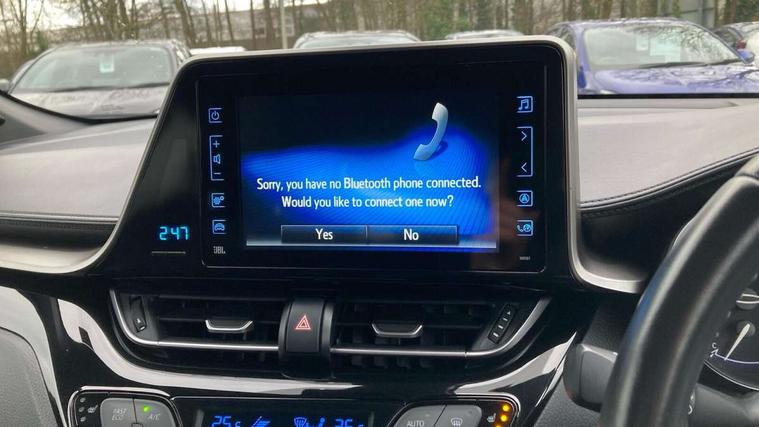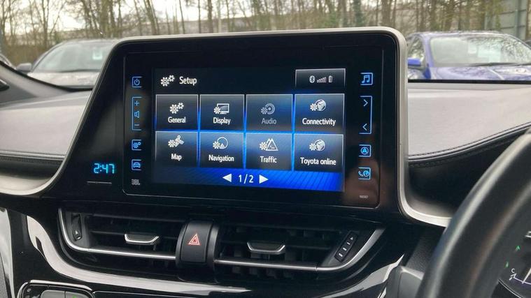 7" Coloured TFT multi informational display, 8" touch screen, Adaptive cruise control, Adjustable speed limiter, Bluetooth connectivity, Electric power steering, Intelligent parking assist with front & rear parking sensors, Lane change assist and blind spot monitor, Lane departure alert with steering control, Lights on warning, Push button starter, Rear cross traffic alert, Reversing camera, Reversing camera display in audio screen, Road sign assist - RSA, Touch 2 Go navigation system, Trip computer, Voice recognition, Vehicle Stability Control (VSC), DAB Radio (Digital Audio Broadcasting), JBL premium sound system with 9 speakers, Steering wheel mounted controls, USB and Aux in connectors + 12V front outlet, Wi-fi connectivity, Auto high beam, Automatic headlight levelling, Automatic headlights, Automatic retractable door mirrors, Bi-tone black roof, Body colour door handles, Body colour door mirrors, Body coloured bumpers, Boot door release with push button, Door mirror puddle lights, Electric folding/heated door mirrors with integrated indicators, Electrochromatic rear view mirror, Follow me home headlights, Front and rear electric windows, Hard tonneau cover, Heated rear windscreen, Intermittent wipe, LED daytime running lights, LED front fog lights, LED headlights with sequential LED indicators, LED High mounted stop lamp, LED rear brake lights, LED rear lights, Pearlescent paint, Rain sensitive windscreen wipers, Rear privacy glass, Rear spoiler, Rear wiper, Shark fin antenna, Trailer Sway Control, 12V Accessory socket, 3 spoke leather steering wheel with multimedia switches, Ambient lighting, Chrome interior door handles, Clean air filter, Driver + front passenger electric lumbar support, Driver and front passenger personal light, Driver and front passenger Whiplash Injury Lessening seats, Driver/passenger sunvisors and illuminated vanity mirrors, Dual zone automatic air conditioning, Folding rear seats, Front and rear door pockets, Front console box and front cupholders, Front cupholders x 2, Front head restraints, Gear shift indicator, Glovebox with internal light, Heated driver and front passenger seats, Illuminated entry system, Isofix seat fixing, Leather effect padded armrest on front console box, Leather gearshift, Leather/Alcantara upholstery, Light blue ambient lighting on front doors, Pollen filter, Rear headrests, Tilt/telescopic steering column, 3x3 point rear seatbelts, ABS+EBD+Brake assist, Electronic parking brake, ESP + traction control, Front and rear seatbelt reminder, Front passenger airbag on/off switch, Hill start assist control (HAC), Pre collision system with pedestrian detection, Rear child proof door locks, Road sign information display, Supplemental restraint system (SRS) airbags - 7 airbags including driver, front passenger, curtain, side and knee airbags, Toyota safety sense, Tyre pressure monitoring system, Immobiliser, Intrusion alarm, Motion sensor alarm, Remote central locking, Smart entry + Smart start, 18" 5 double spoke matt black alloy wheels, Tyre repair kit,