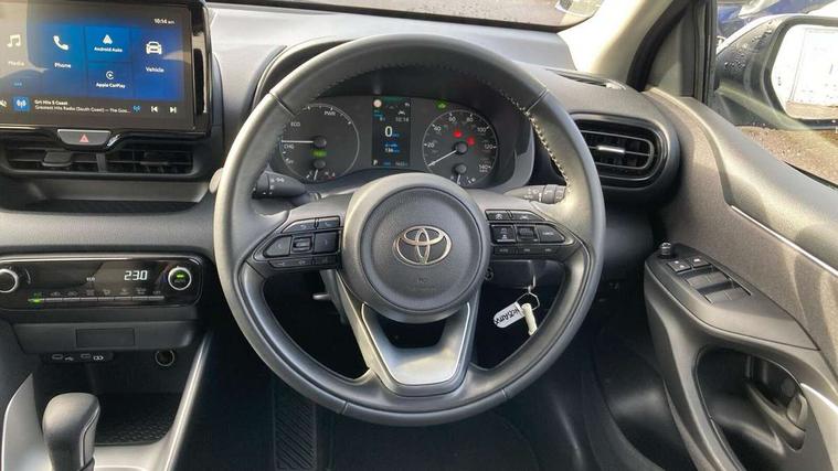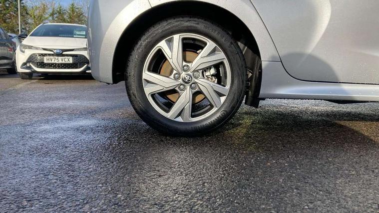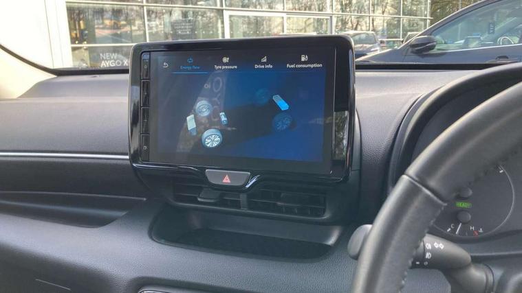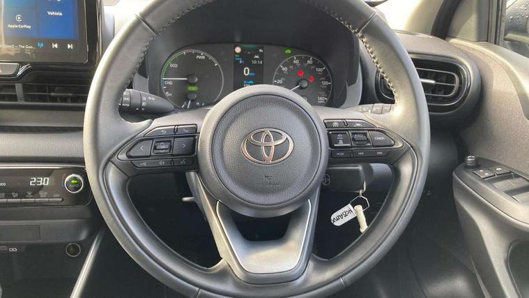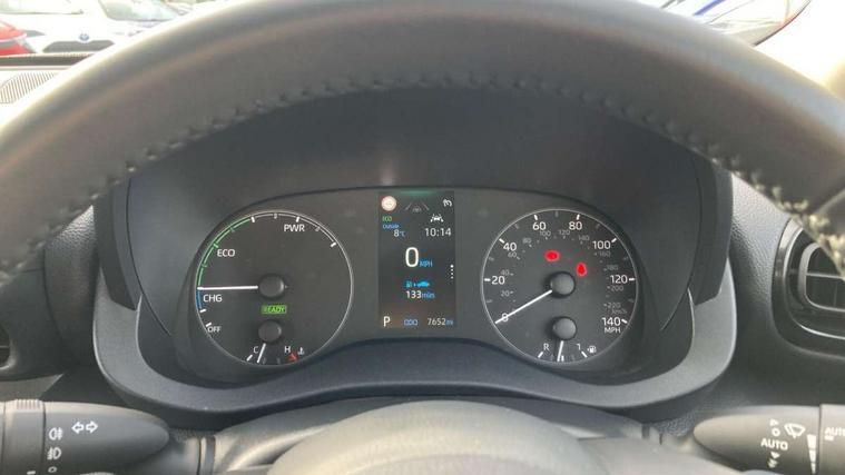 4.2" coloured TFT multi information display with analogue speedometer, Adaptive cruise control, Adjustable speed limit with speed warning, Bluetooth connectivity, E-call, Electric power steering, Hybrid energy display, Lane trace assist, Multi information display switches on steering wheel, Pre-collision system (PCS), Reversing camera, Smartphone integration with Apple CarPlay and Android auto, Tailgate, Voice recognition, Vehicle Stability Control (VSC), 4 speakers, 9" Multimedia touch display, Toyota Touch 3 system with DAB radio, USB connection, Acoustic windscreen glass, Auto high beam assist, Auto windscreen wipers, Automatic headlights, Body coloured door mirrors, Bulb indicators, Chequered front grille, Daytime running lights, Electric adjustable heated door mirrors, Follow me home headlights, Front auto power windows with anti jam protection, Front halogen fog lights, Halogen projector headlights, LED High mounted stop lamp, Manual headlight levelling, Rain sensor, Rear auto power windows with anti jam protection, Rear roof spoiler, Rear side wing doors, Rear wiper, Shark fin antenna, Turning signal integrated indicators in door mirrors, Variable front intermittent wipers, 3 adjustable rear headrests, 3 seat bench in 2nd row, 3 spoke leather steering wheel, 60/40 split folding rear seat, Active headrests, Adjustable boot height, Auto air conditioning, Coat hooks in rear grab handles, Cup holders (2 front & door), Data Communication Module (DCM) connected services, Fabric upholstery, Front armrest, Glovebox, Grey roof lining, Height adjustable driver's seat, Isofix seat fixing, Leather gearshift, Pollen filter, Shopping bag hooks, Single front passenger seat, Tilt/telescopic steering column, 3 point seatbelts on all rear seats, ABS+EBD+Brake assist, Electronic parking brake, Emergency brake light system (EBS), Front passenger airbag on/off switch, Front seatbelt reminder, Hill start assist control (HAC), Rear child proof door locks, Rear seat belt reminder, Supplemental Restraint System (SRS) 8 airbags: Driver & passenger's airbags, dual side curtain airbags, side impact airbags, front centre airbag, Toyota Safety Sense 3 with over the air updates, Tyre pressure warning system, 2x Master key, Alarm/immobiliser, Remote powered central double locking doors, Soft touch instrument panel, 16" 5 spoke silver finish alloy wheels, Space saver spare wheel,