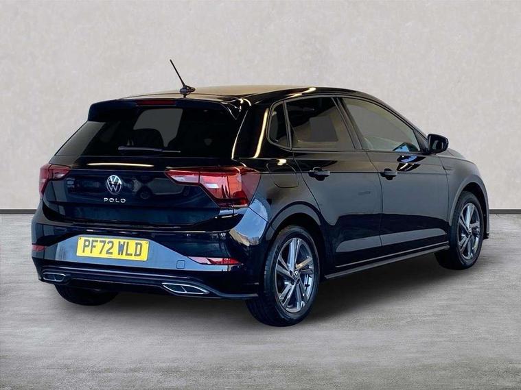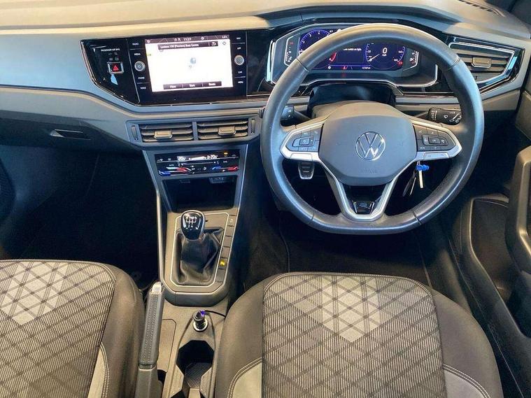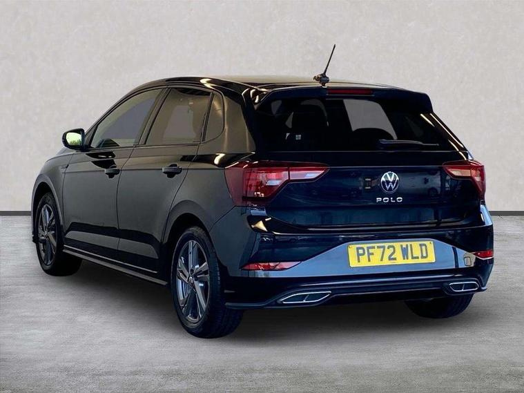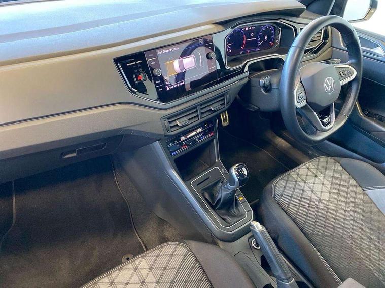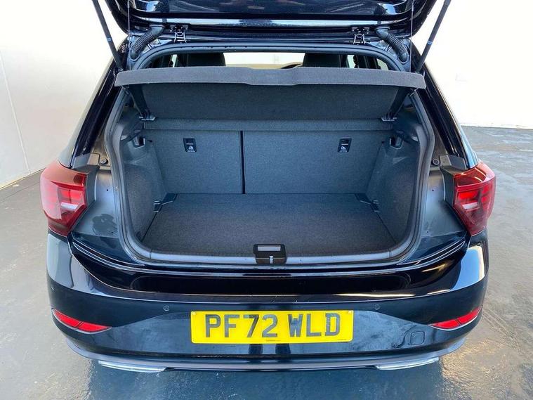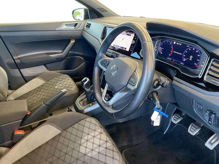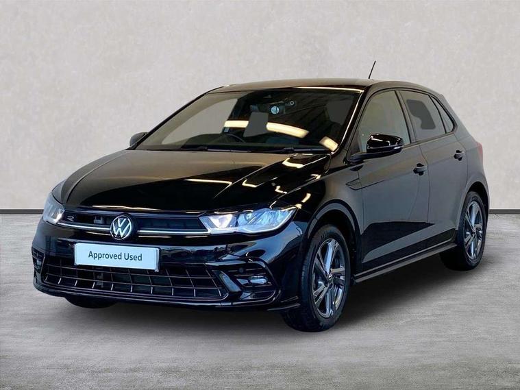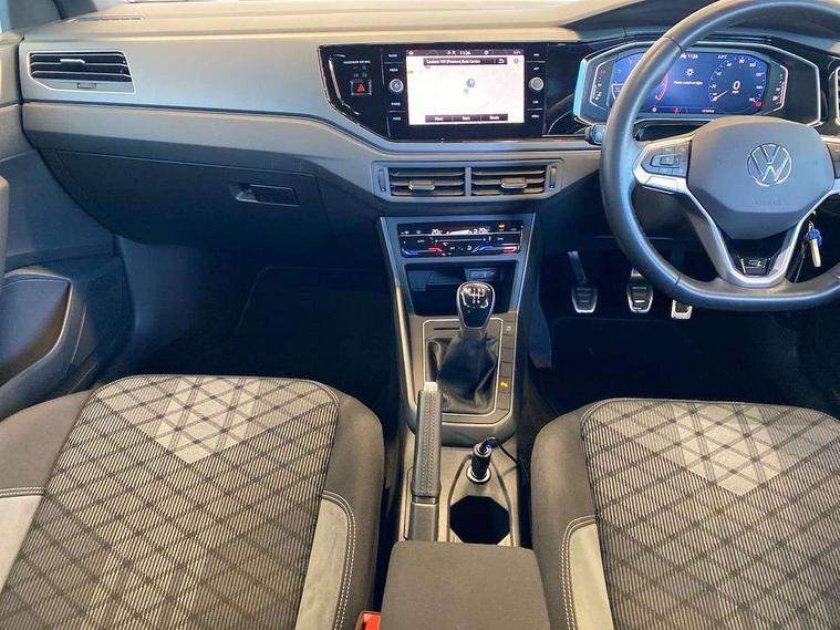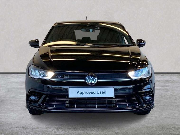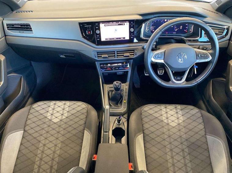 Adaptive cruise control without follow-to-stop and speed limiter, Bluetooth mobile phone interface, Digital Cockpit Pro with 10.25" Display, Driver alert system, Dynamic road sign display, Emergency call service, Power assisted speed sensitive steering, Preparation for We connect and We connect plus, Speedo and rev counter, electronic odometer, trip, service interval display and fuel gauge, Standard rear axle, Travel Assist - Lane keeping system and traffic jam assist, Travel assist including emergency assist, Trip computer, Warning signal and warning light for front and rear seatbelts not fastened, Washer fluid level indicator, Wireless app connect, Front wheel drive, Rear shock absorpion, Start-stop system with battery regeneration (recuperation - energy recovery during braking), DAB Digital radio, Diversity antenna for FM reception, Front and rear 6 speakers, Body colour bumpers, Body colour door handles, Electric front windows, Front scuff plates with R-Line logo, Heat insulating darkened glass in side and rear windows, Heat insulating glass windscreen, Power folding adjustable/heated exterior mirrors and front passenger exterior mirror lowering function, Rear electric windows, Rear fog light, Rear side wing doors, Rear windscreen washer and wiper with interval delay, Third brake light, 12V power socket in centre console, 2 USB-C ports in the front, 2 USB-C charging sockets on the center console in the rear, 3 rear head restraints, 60/40 split folding rear seat and rear seat bench not split, Air care climatronic air conditoning system with active combination filter and 2-zone temperature control, Black roof lining, Chrome plated radiator grille inserts, air vent surrounds and light switch surrounds, Door and side trim panel, Driver and front passenger seat height adjustment, Driver/passenger sunvisors with illuminated vanity mirrors, Front + rear carpet mats in recycled material, Front centre armrest, Front footwell illumination, Front seat backrest storage pockets, Front sports comfort seats, Handbrake lever handle in leather, Headliner in recycled material, Isofix child seat preparation easy-fit (for two outer rear seats, and front passenger seat) compatible with I-size, Karoso artvelours cloth upholstery, Leather trimmed gear knob, LED interior light with switch off delay and dimmer, 2 reading lights front and rear, Luggage compartment cover, Luggage compartment floor, Luggage compartment lighting, Lumbar adjustment for front seats, Multifunction steering wheel, Single front passenger seat, Stainless steel pedals, Standard pedal cluster, Light and sight pack - Polo R-Line/Black Edition, 3 point height adj front seatbelts + pretensioners, 3x3 point rear seatbelts, ABS, Driver and front passenger airbag with front passenger airbag deactivation, Drivers and front passengers safety optimised head restraints, ESC (Electronic stability control) + EDL (Electronic Differntial lock) and ASR (Traction control), Extended and predictive pedestrian/ cyclist protection, Front curtain and side airbags with center airbag, Hill hold control, Manual child lock in rear doors, Single tone horn, Tyre pressure loss indicator, Alarm with interior protection, Anti-theft alarm system with interior monitoring, backup horn, and towing protection, Anti-theft wheel bolts, Electronic engine immobiliser, Chrome applications on rotary light, mirror adjustment, window regulator switches, outlet with frame in black, Dark grey anodised matt decorative inserts in dash and front door panels, Low rolling resistance tyres,