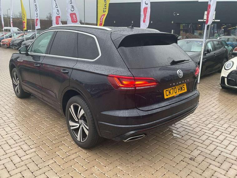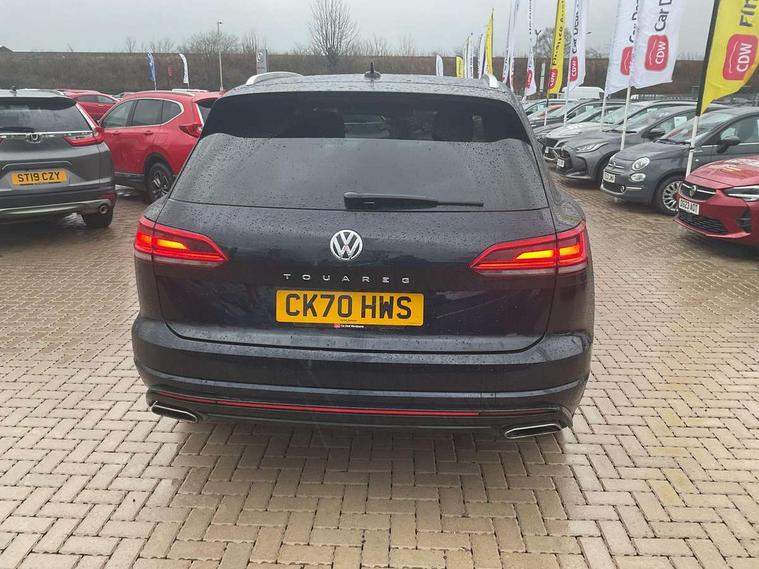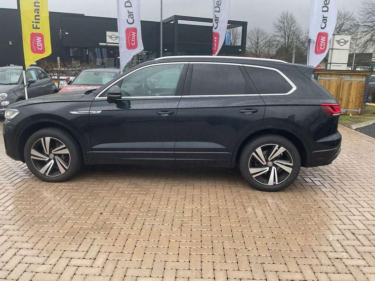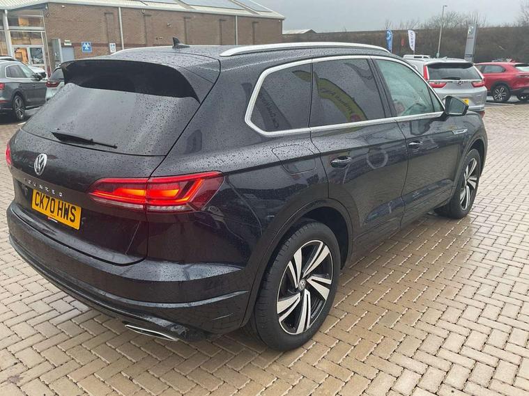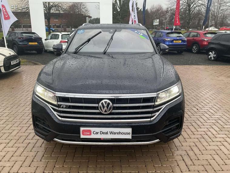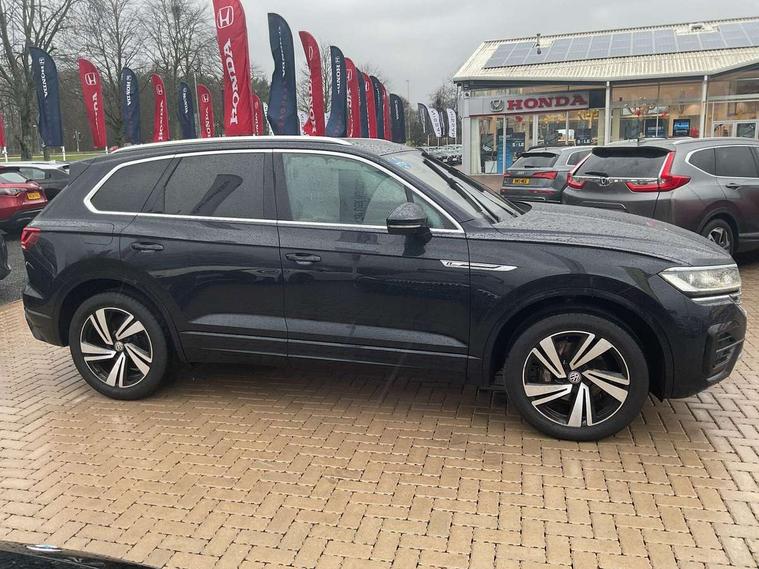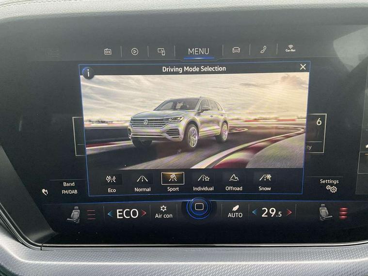 2D/3D map view, ACC - Adaptive cruise control with front assist, forward collision warning, distance monitoring, city emergency brake and speed limiter, Apple car play/Android Auto, Audible and visual fatigue detection system, Bluetooth hands free telephone connection, Car information display, Drive select with Damper control, Driver alert system, Dynamic road sign display camera controlled system with visual warning for traffic and road signs, eCall emergency system, Instrument cluster, MirrorLink, Multifunction camera with lane assist, Multifunction computer premium with 7" colour display, One touch indicators with repeat function, Service interval indicator, Speed sensitive power steering, Start/stop system with regenerative braking, Tailgate power latch, Think blue trainer driver tips and journey analysis, Traffic sign recognition, Voice control system, Wireless Smartphone charger, Torsen limited slip differential, DAB Digital radio, Dynamic navigation based on TMC+, Gesture control for infotainment system, Multi device interface (MDI) with illuminated USB-C connection, Music playback - MP3, WMA and AAC files, SD card slot, Simultaneous pairing of 2 compatible mobile devices, SMS functionality - read, compose and send SMS messages using touch-screen display, Title and cover art display, Volkswagen media control, Adaptive low beam for urban and motorway use, Auto dimming rear view mirror, Automatic coming/leaving home lighting function, Automatic headlights, Body colour door handles, Body colour door mirrors with integral indicators, Body coloured wheel arches, C signature gloss black front air intake, Chrome trimmed radiator grille and air intake, Chrome trimmed side windows, Chromed tailpipe on the left and right integrated in the bumper with trapezoid design, Dusk sensor, Dynamic headlight range control, Electrically power adjustable, heated, folding, auto dimming, front passenger exterior door mirror lowering function, Front and rear electric windows, Galvanised body, Gloss black finish B pillar, Gloss black rear diffuser, Heat insulating darkened glass in side and rear windows, Heated windscreen washer jets, LED rear fog light, LED rear number plate lights, Plastic scuff plates in door apertures, Poor weather light, Puddle lights, Rain sensor, Rear wiper, Silver anodised roof rails, Stainless steel door sill protectors with R-line logo, 12V socket in front and rear centre console and boot, 2 Coat hooks on B pillar, 3 rear head restraints, 3 spoke sport heated leather multi-function sports steering wheel with gear shift paddles - generation 2, 4 way adjustable front head restraints, 4 way electric lumbar support for driver and front passenger, 4 zone climate control, 40:20:40 split folding slide/recline rear seat, B pillar vents, Branded points of interest, Double sun visor for drivier and passenger with LED illuminated vanity mirrors, Electric luggage compartment cover, Folding rear centre armrest with 2 cupholders, Front + rear carpet mats, Front centre armrest with storage box, Front seats with R-line logo on seat backrest, Gear shift indicator, Height/reach adjust steering wheel, Illuminated air conditioned glovebox, Isofix preparation for 2 rear child seats, Jack and tool kit, Leather trimmed gear knob with gloss black inlay/aluminum trim, Leatherette door trim, LED luggage compartment lighting, Load through provision, Luggage compartment with load lashing rings, Plastic loading edge protection, R Line badge, Rear seat remote release levers, Soul black headlining, Stainless steel pedals, Innovision cockpit pack - Touareg, R line styling pack - Touareg, 3 point front seatbelts with pre-tensioners, ABS, Active bonnet, Automatic post collision braking system, Curtain airbags, Driver/Front Passenger airbags, EBD + Brake Assist, EDL, Electronic parking brake with auto hold, ESC with ASR, Front seat side impact airbags, Hill descent control, Hill start assist, Passenger airbag deactivate switch, Seatbelt warning lamp and buzzer, Three 3 point rear seatbelts, Two tone horn, Volkswagen roadside assistance, Warning triangle and first aid kit, Alarm with interior monitoring in cab, backup horn and towing protection, Child security locks for front and rear doors, Electronic engine immobiliser, Remote central locking, High gloss black centre console, Silver wave design aluminium decorative inlays, Tyre repair kit,