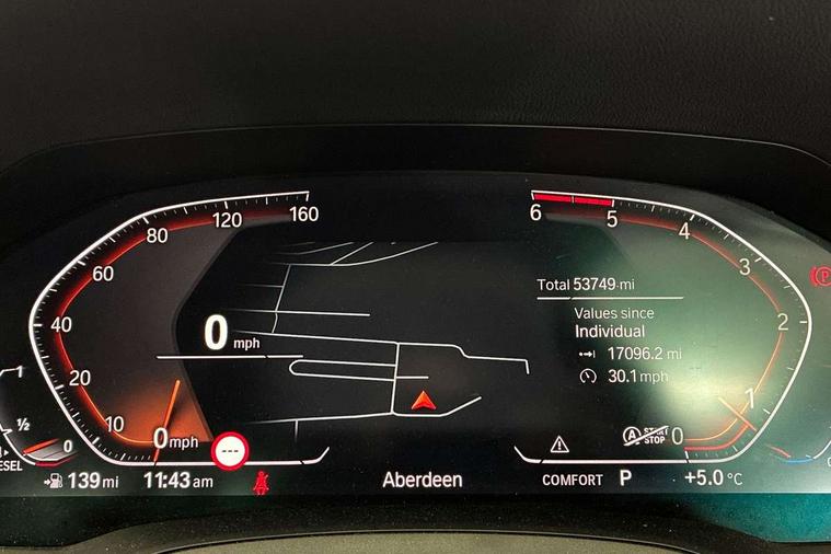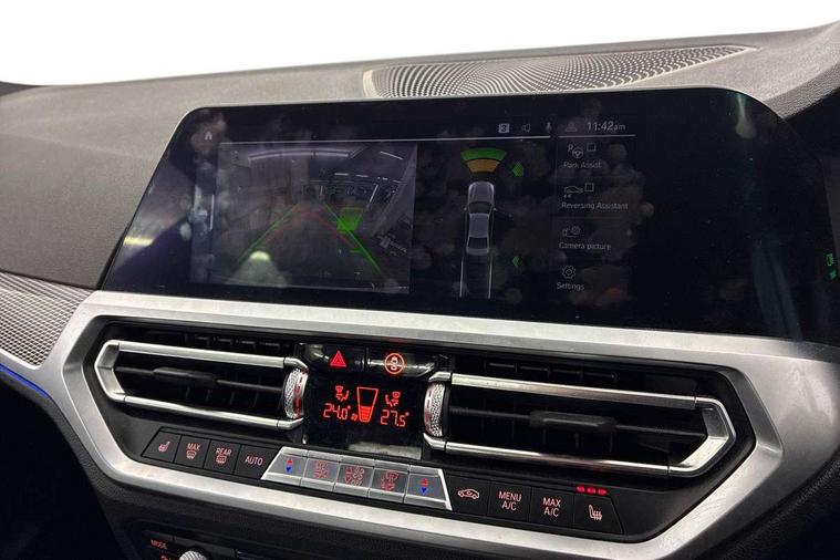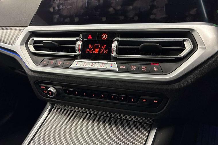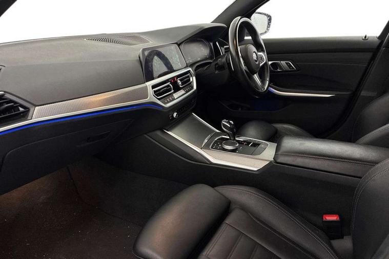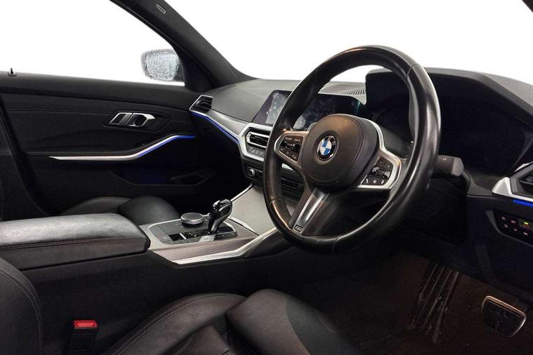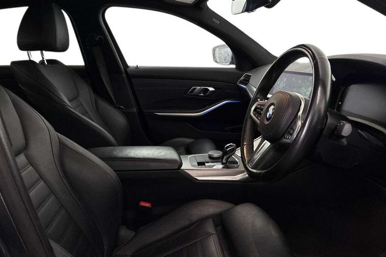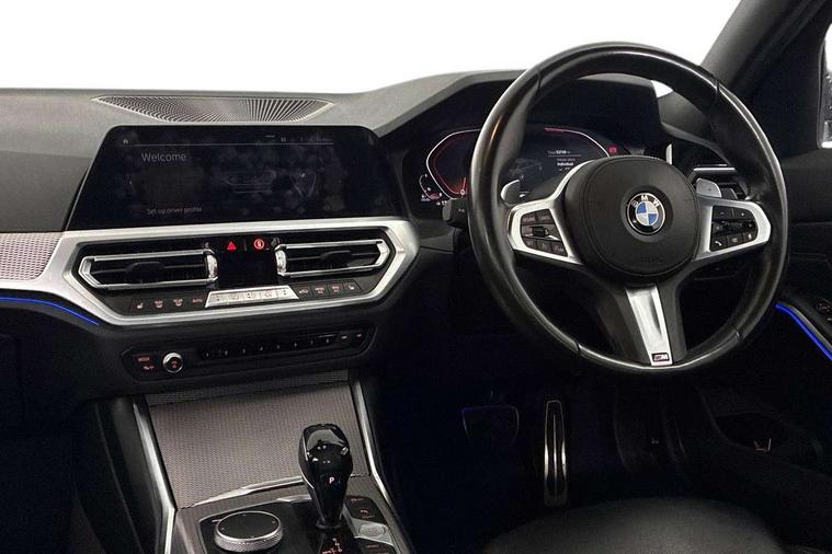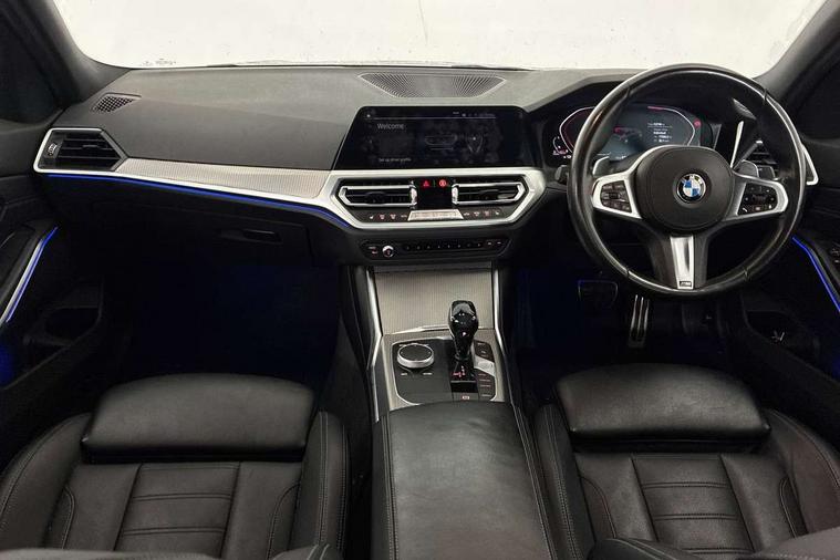 Active guard plus, Attentiveness assist, Auto start-stop, BMW ConnectedDrive online services, BMW iDrive controller on centre console, BMW Live Cockpit Professional sat nav system including 10.25" high resolution display and Intelligent Voice Assistant, BMW service history, BMW Teleservices, Brake pad wear indicator in front and rear, Check Control warning system for monitoring of lights and door/luggage compartment open warning, Condition based service, Electric power steering with Servotronic steering optimised at all speed ranges, Instrument cluster with speedometer with mph readout, tachometer, fuel gauge and oil temperature gauge, Integrated owners handbook, Oil sensor for level and grade, warning by check control system, On board computer - average speed+fuel consumption, service interval, clock/date, odometer/trip meter, outside temperature display and ice warning, Optimum shift indicator, Personal Profile - automatic lock when driving away selectable, Variable sport steering, Balanced 50/50 weight distribution, Battery cut-out switch, Diesel particulate filter, Drive performance control - ECO PRO, comfort and sport modes, Electronic differential lock control (EDLC), Incorrect fuelling protection, Larger capacity fuel tank, M sport suspension, Sport automatic transmission with steering-wheel mounted gearshift paddles and launch control, Stroke dependent dampers, xDrive system permanent all-wheel drive variable torque distribution, DAB tuner, Electronic service booklet, Acoustic glazing, Active airstream chrome frame kidney grille with 8 high gloss black vertical slats, Automatic headlight beam throw control with load dependent regulating reaction, dynamic compensation of braking dive and acceleration squat, Black roof mouldings, Body colour - fuel filler flap, front and rear bumpers, door handles and mirror caps with integrated turn indicator + bottom segment in matt black, Dynamic brake lights, Electric windows - front and rear, with open/close fingertip control, anti-trap facility and comfort closing, Exhaust tailpipe - split left and right, Extended LED headlights, Exterior mirrors - electrically folding with anti-dazzle, Fading support, Front and rear bumper system with replaceable deformation elements, Front black door sill finishers with BMW designation, Green tinted heat protection glazing, High gloss shadow line exterior trim, Interior rear view electrochromatic mirror with automatic anti dazzle function, LED front fog lights, Lightweight engineering, M designation on front side panels, left and right, Matt black exterior B pillar, Rain sensor with automatic headlight activation, Rear wiper, Shark fin antenna, Two part LED tailights in L-shape with components in smoked glass, brake light, LED turn indicator and rear fog light, Visible VIN plate, Welcome lights in interior and door handle area, Windscreen wipers with integrated washing jets, xDrive designation on right tailgate, 12V power socket in front storage compartment, 2 front cupholder in centre console with clamping elements and matt black inlay, 3 rear seats with non folding headrests with 3 point seat belts, 3 zone automatic air conditioning, 4 pieces lashing eyelets in luggage compartment, 40:20:40 split folding rear seat with loading system, Ambient lighting with welcome carpet light, Anthracite headlining, Armrest integrated in front and rear door trim + front centre console armrest, Centred top Luggage compartment lights, Four grab handles integrated in roof lining, Front and rear door exit lighting (left / right), Front and rear door pockets, Front and rear reading lights, Front and rear velour floor mats, Front head restraints, Front sport seats, Heated driver and front passenger seats, Height adjustable mechanically and infinitely variable steering column, Illuminated armrest storage compartment, Illuminated glove compartment with separate small compartment, Interior lighting - front centre over interior mirror with soft light, rear centre and front and rear footwell lighting, M Sport multifunction leather steering wheel, Make-up mirror lights, Rear centre armrest with 2 cupholders, Rear centre console with storage compartment and ventilation grille, Sunvisors with vanity mirrors and ticket pocket, Toolkit located in luggage compartment, Connected pack professional - 3 Series Saloon/Touring, M Aerodynamics pack - 3 Series Saloon/Touring, 2 tone horn, BMW emergency call, Brake energy regeneration, Braking pre-tensioning, Child proof locking system in rear door, Child seat ISOFIX attachment rear outer seats, Coasting in idle in ECO PRO mode, Crash sensor activating of airbags, Unlocking doors, hazard warning lights, interior light, safety battery terminal, Driver and front passenger side airbags, integrated in the door side seat backrest bolsters for all seat variants, Driver/Front Passenger airbags, Dry braking, Dynamic brake control, Dynamic stability control + (DSC+) - Anti-lock Braking System (ABS) with brake assist and cornering brake control + Automatic Stability Control (ASC), Dynamic Traction Control - DTC, Electric parking brake including automatic hold function and automatic release of the parking brake when driving off, Front passenger manual airbag deactivation, Head airbags for all 4 outer seats, Hill start assist, Seat belt security check for driver and front passenger, Side impact protection, Three 3 point seat belts on all seats including front belt stopper, pyrotechnic belt tensioners and belt force limiters, Tyre pressure monitoring with three level warning strategy, Ventilated front and rear disc brakes, Warning triangle and first aid kit, Alarm system (Thatcham 1) with remote control and electronic engine immobiliser, Central locking switch for all doors, fuel filler cap and luggage compartment, Remote control with integrated key one button open/close vehicle and windows, sole opening of the luggage compartment lid and panic mode, Start/stop button with Comfort Go keyless engine start and 