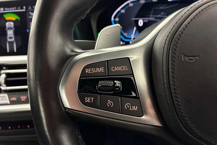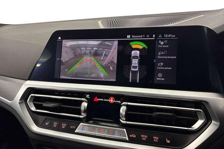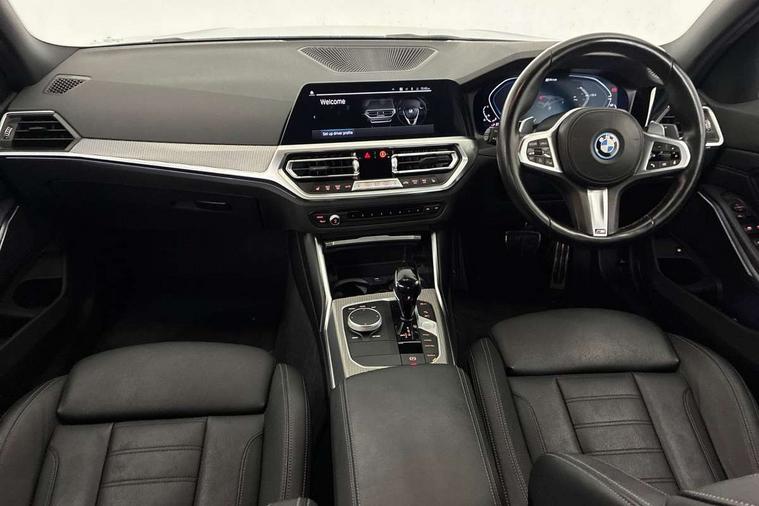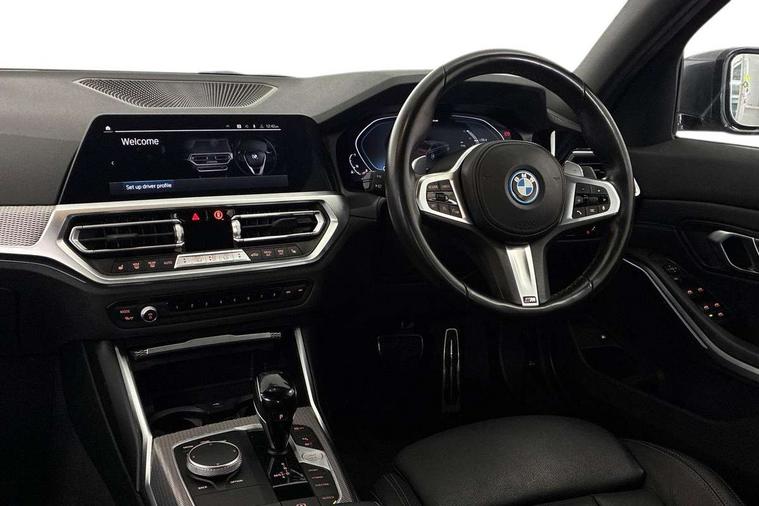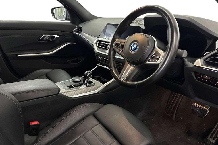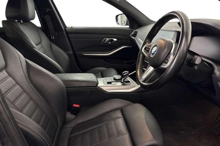 Active guard plus, Attentiveness assist, Auto start-stop, Bluetooth hands free facility with USB audio interface with audio streaming, BMW iDrive controller on centre console, BMW service history, BMW Teleservices, Brake pad wear indicator in front and rear, Check Control warning system for monitoring of lights and door/luggage compartment open warning, Condition based service, Cruise control with brake function + speed limiter, Electric power steering with Servotronic steering optimised at all speed ranges, Instrument cluster with speedometer with mph readout, tachometer, fuel gauge and oil temperature gauge, Integrated owners handbook, Oil sensor for level and grade, warning by check control system, On board computer - average speed+fuel consumption, service interval, clock/date, odometer/trip meter, outside temperature display and ice warning, Optimum shift indicator, Personal Profile - automatic lock when driving away selectable, Balanced 50/50 weight distribution, Battery cut-out switch, Charging cable - Mode 2, Drive performance control - ECO PRO, comfort and sport modes, Petrol Particulate Filter, Stroke dependent dampers, DAB tuner, Electronic service booklet, Acoustic glazing, Active airstream chrome frame kidney grille with 8 high gloss black vertical slats, Automatic headlight beam throw control with load dependent regulating reaction, dynamic compensation of braking dive and acceleration squat, Black roof mouldings, Body colour door handles, Body colour front and rear bumpers, Body colour fuel filler flap, Body colour mirror caps with bottom segment in matt black, Dynamic brake lights, Electric windows - front and rear, with open/close fingertip control, anti-trap facility and comfort closing, Exhaust tailpipe - split left and right, Exterior mirrors - electrically folding with anti-dazzle, Fading support, Front and rear bumper system with replaceable deformation elements, Front black door sill finishers with BMW designation, Green tinted heat protection glazing, High gloss shadow line exterior trim, Interior rear view electrochromatic mirror with automatic anti dazzle function, LED daytime running lights, LED front fog lights, LED third brake light, Lightweight engineering, M designation on front side panels, left and right, Matt black exterior B pillar, Model designation on right side of tailgate, Rain sensor with automatic headlight activation, Rear boot, Rear side wing doors, Shark fin antenna, Two part LED tailights in L-shape with components in smoked glass, brake light, LED turn indicator and rear fog light, Visible VIN plate, Welcome lights in interior and door handle area, Windscreen wipers with integrated washing jets, 12V power socket in front storage compartment, 2 front cupholder in centre console with clamping elements and matt black inlay, 3 rear seats with non folding headrests with 3 point seat belts, 3 seat bench in 2nd row, 3 zone automatic air conditioning, 4 pieces lashing eyelets in luggage compartment, 40:20:40 split folding rear seat with loading system, Ambient lighting with welcome carpet light, Anthracite headlining, Armrest integrated in front and rear door trim + front centre console armrest, Backrest width adjustment, Centred top Luggage compartment lights, Four grab handles integrated in roof lining, Front and rear door exit lighting (left / right), Front and rear door pockets, Front and rear reading lights, Front and rear velour floor mats, Front head restraints, Front sport seats, Heated front seats, Height adjustable mechanically and infinitely variable steering column, Illuminated armrest storage compartment, Illuminated glove compartment with separate small compartment, Interior lighting - front centre over interior mirror with soft light, rear centre and front and rear footwell lighting, M sport leather steering wheel, Make-up mirror lights, Rear centre armrest with 2 cupholders, Rear centre console with storage compartment and ventilation grille, Single front passenger seat, Sunvisors with vanity mirrors and ticket pocket, Toolkit located in luggage compartment, Connected pack professional - 3 Series Saloon/Touring, Live cockpit professional pack - 3 series, M sport exterior styling pack - 3 Series Saloon/Touring, 2 tone horn, BMW emergency call, Brake energy regeneration, Braking pre-tensioning, Child proof locking system in rear door, Child seat ISOFIX attachment rear outer seats, Coasting in idle in ECO PRO mode, Crash sensor activating of airbags, Unlocking doors, hazard warning lights, interior light, safety battery terminal, Driver and front passenger side airbags, integrated in the door side seat backrest bolsters for all seat variants, Driver/Front Passenger airbags, Dry braking, Dynamic brake control, Dynamic stability control + (DSC+) - Anti-lock Braking System (ABS) with brake assist and cornering brake control + Automatic Stability Control (ASC), Dynamic Traction Control - DTC, Electric parking brake including automatic hold function and automatic release of the parking brake when driving off, Electronic differential lock control (EDLC), Front passenger manual airbag deactivation, Head airbags for all 4 outer seats, Hill start assist, Seat belt security check for driver and front passenger, Side impact protection, Three 3 point seat belts on all seats including front belt stopper, pyrotechnic belt tensioners and belt force limiters, Tyre pressure monitoring with three level warning strategy, Ventilated front and rear disc brakes, Warning triangle and first aid kit, Alarm system (Thatcham 1) with remote control and electronic engine immobiliser, Central locking switch for all doors, fuel filler cap and luggage compartment, Remote control with integrated key one button open/close vehicle and windows, sole opening of the luggage compartment lid and panic mode, Start/stop button with Comfort Go keyless engine start and auto Start/stop deactivation button, Vehicle key with M specific designation, Reduced rolling resistance tyres,