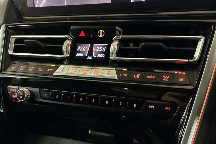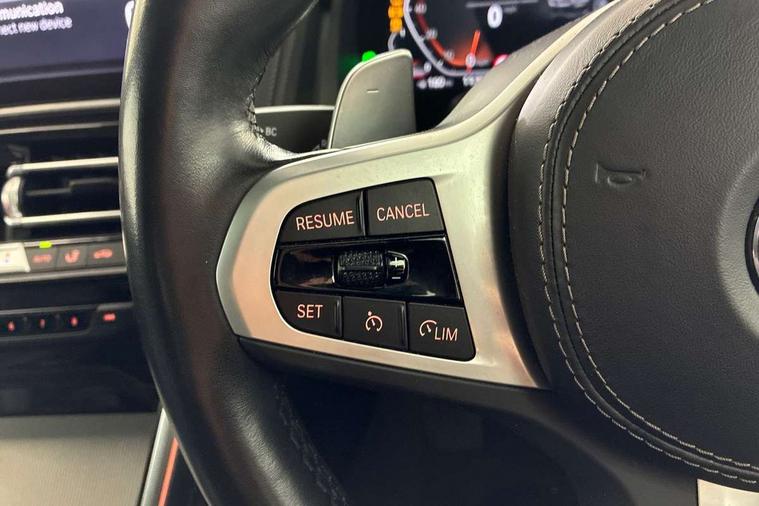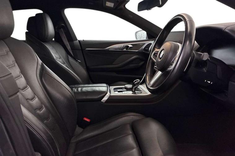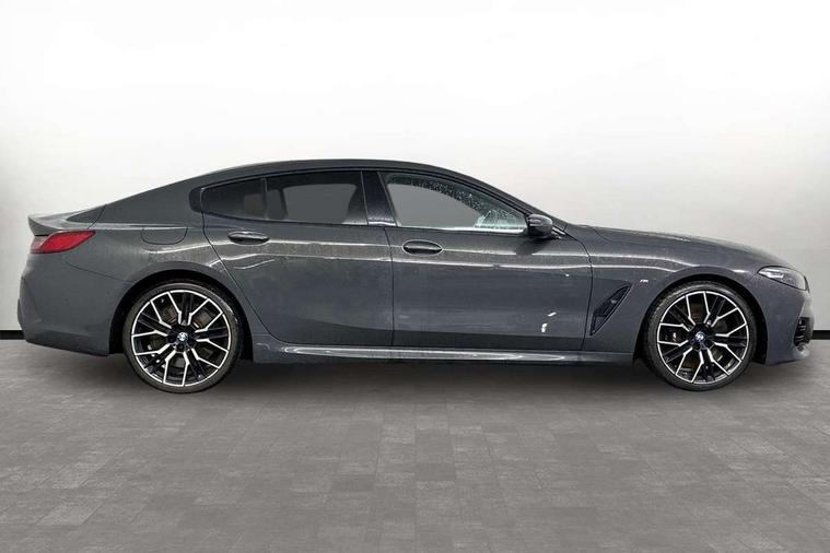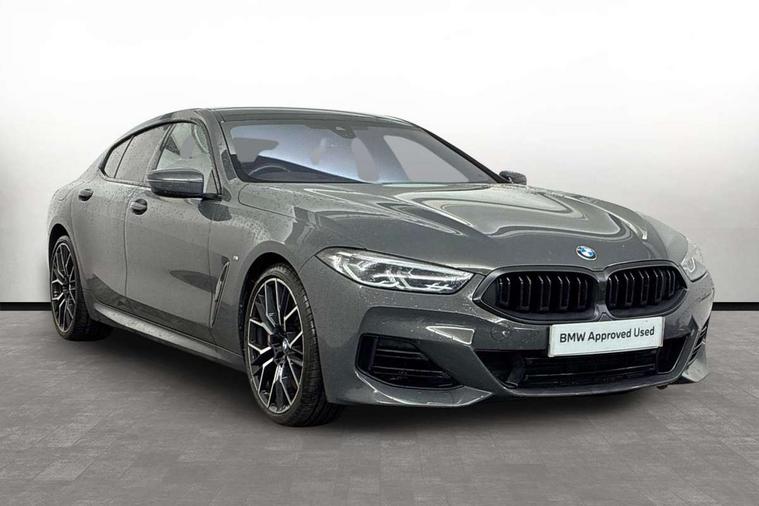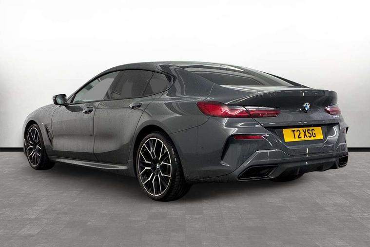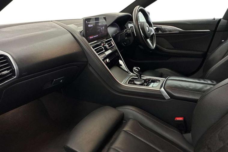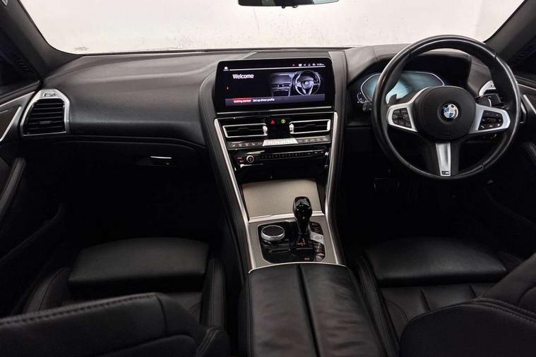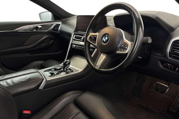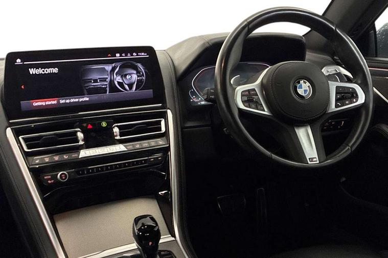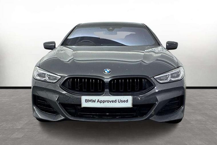 Automatic tailgate operation, remote opening with key, closing by tailgate button or remote control including tailgate in LED technology, Bluetooth hands free facility with USB audio interface, voice control and enhanced bluetooth + Wireless charging, BMW ConnectedDrive online services, BMW legal emergency call, BMW Teleservices, Brake pad wear indicator, Check control system, Condition based service, Drive experience control with Sport, Comfort, Eco Pro and Adaptive modes, Electric bootlid, Head up Display, iDrive controller with shortcut buttons, Instrument and upper door panel in walknappa leather, Integrated owners handbook, Light on warning, Oil sensor for level and grade, On board computer, Outside temperature display, Run flat indicator, Service interval indicator, Servotronic system, Speed limiter, Wi-Fi hotspot, Adaptive M suspension, Double wishbone front axle, Dynamic Damper Control, Eight speed sport automatic transmission, M Sport differential, Petrol Particulate Filter, Sport exhaust system, DAB Digital radio, Favourite buttons, Air breather inlay in pearl chrome, frame in black high gloss, Automatic windscreen wipers and automatic headlight, Carbon core, Climate comfort windscreen, Daytime driving lights front and rear active, Dynamic brake lights, Exterior mirrors - Floating design mirror, electric adjust/heated/folding, aspherical, Follow me home headlight function, Frameless interior mirror, Front and rear bumper system with replaceable deformation elements, Front electric windows, Front ornamental grille with kidney grille bars, Heated rear window, glass, Heated windscreen washer jets, High beam assistant, Illuminated door handles, LED rear lights, M emblem on front side panel in light chrome, Model logo on right tailgate, Radiator grille frame in pearl chrome, Radiator grille struts in aluminium matt, Rain sensor and automatic driving lights control, Rear boot, Rear side wing doors, sDrive designation on left tailgate, Sun protection glass, Thermally insulated windscreen, Third LED technology brake light in rear window, Welcome lights in interior and door handle area, Window frame and mirror base in black high gloss, 2 cup holders in front, 2 rear head restraints, 2 X front 12v power sockets, 3 spoke M sport leather multifunction steering wheel with shift paddle, 4 zone control automatic air conditioning, 5 seats, 50/50 split folding rear seat, Ambient light with dynamic interior light, BMW ID, Front and rear seat heating, Front centre armrest with light, 12V socket and USB and storage compartment, Front door pockets, Front entry lights doors, Front reading lights, Front sun visors with ticket holder and illuminated mirror, Interior lighting - Interior light front centre above interior mirror, luggage compartment light, automatic interior light system soft on/soft off, Lashing eyelets, Lockable glove compartment with light, Microfilter and active carbon filter, Steering column with adjustable height and length and activation via control on the steering column, Through loading function, BMW Live cockpit professional pack - 8 Series, Connected professional pack - 8 Series, Exterior items pack - 8 Series, M sport exterior styling aerodynamics pack - 8 Series, 18" M Sport braking system with blue painted brake calipers, 3x3 point rear seatbelts, ABS/EBD, Active protection, Airbags - Driver and front passenger airbag with seat occupancy detection, knee, side and front passenger seat airbag deactivation, Brake discs, compound structure, Child locks on rear doors, Cornering brake control (CBC), Crash sensor activating central locking release, hazard warning lights, fuel cut off, interior lighting, safety battery terminal clamp and airbags, DSC - Dynamic Stability Control, Dynamic brake control, Dynamic Traction Control - DTC, Electromechanical parking brake with automatic drive away release and auto hold function, Front three point with pyrotechnical belt latch tensioner seat belts, belt force limiter and belt stopper, Head airbags for 1st and 2nd seat row, Hill start assist, Integrated brake system, ISOFIX child seat mounting for the two outer rear seats, Rear three point with pyrotechnical belt latch tensioner seat belts and belt force limiter, Side impact protection, Tyre pressure monitoring system (TPMS), Warning triangle and first aid kit, Alarm system (Thatcham 1) with electronic engine immobiliser, Centre lock switch, Closing system with central locking, Comfort access system, Keyless entry with start/stop button, Locking wheel bolts, Vehicle key with exclusive M designation,