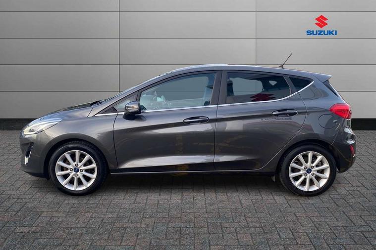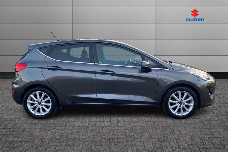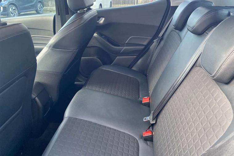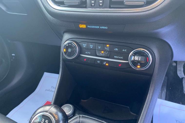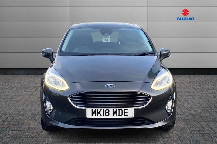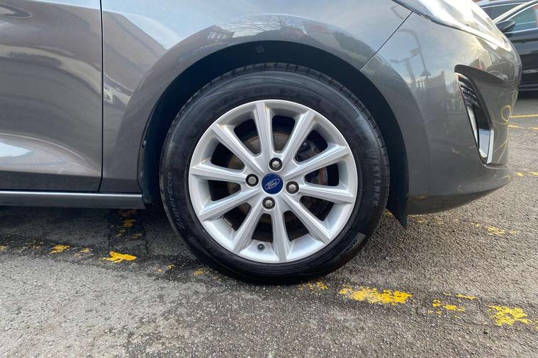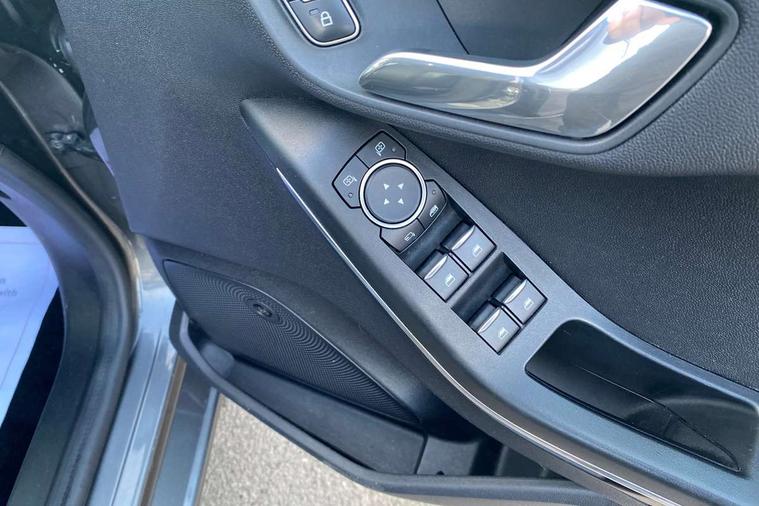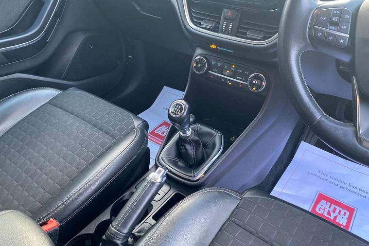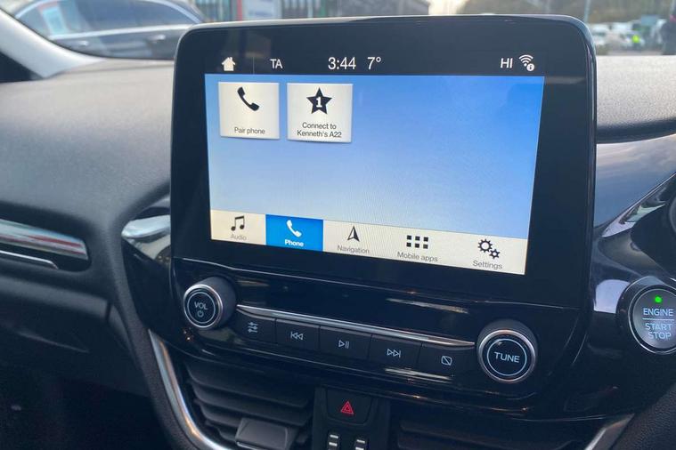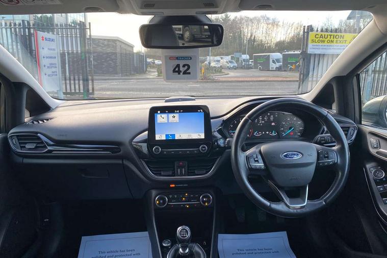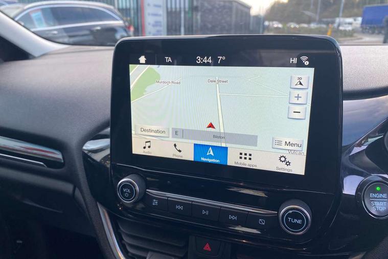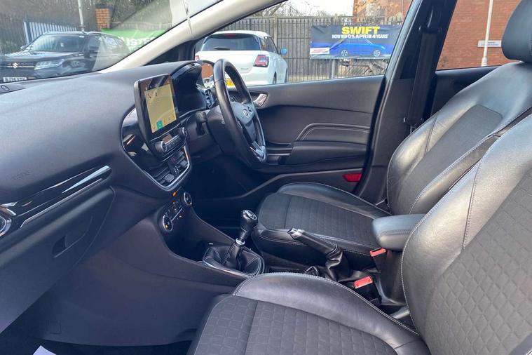 Bluetooth system, Driver alert system, Electric power steering, Lane keep assist, Rear view camera, SYNC Emergency Assistance, Traffic sign recognition, Trip computer, Auxiliary input socket, Bang and Olufsen premium sound with 10 speakers and Ford SYNC 3 Navigation, DAB with voice control, Steering wheel mounted controls, USB connection, Auto dimming rear view mirror, Auto high beam, Automatic headlights, Body colour bumpers, Body colour door handles, Body colour electric adjustable heated door mirrors, Body colour rear spoiler, Chrome beltline trim, Cornering front fog lights, Electric folding door mirrors with puddle lamps, Electric front windows/one touch facility, Electric rear windows, LED daytime running lights, LED rear lights, Privacy glass, Quickclear heated windscreen, Rear wiper, Tinted glass, Upper front grille chrome surround, 12V Accessory socket in centre console, 3 spoke leather steering wheel, 60/40 split folding rear seat, Adjustable head restraints, Air conditioning + Electric Auto Temperature Control (EATC), Ambient lighting, Boot carpet, Centre console with armrest, Chrome inner door handles, Driver/passenger seat height adj/lumbar support, Footwell illumination, Front and rear velour floor mats, Front map reading lights, Front seat and rear pockets, Illuminated cup holders, Illuminated glovebox, Leather gear knob, Leather trimmed handbrake handle, Load area light, Luxury woven headliner, Overhead console with sunglasses holder, Part leather upholstery, Pollen filter, Rake/reach adjustable steering wheel, Rear centre head restraint, Comfort Pack - Fiesta, 3 point seatbelts on all rear seats, ABS+EBA, Curtain airbags, Driver and passenger airbags, Drivers knee airbag, ESP + traction control, Front passenger airbag deactivation, Front side airbags, Hill start assist, Seatbelt warning, Tyre pressure monitoring system, Immobiliser, Keyless entry and keyless start, MyKey system, Remote central locking, Thatcham Cat.1 alarm, Tyre repair kit,