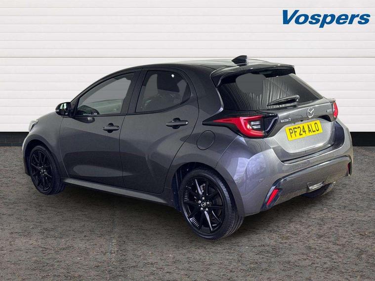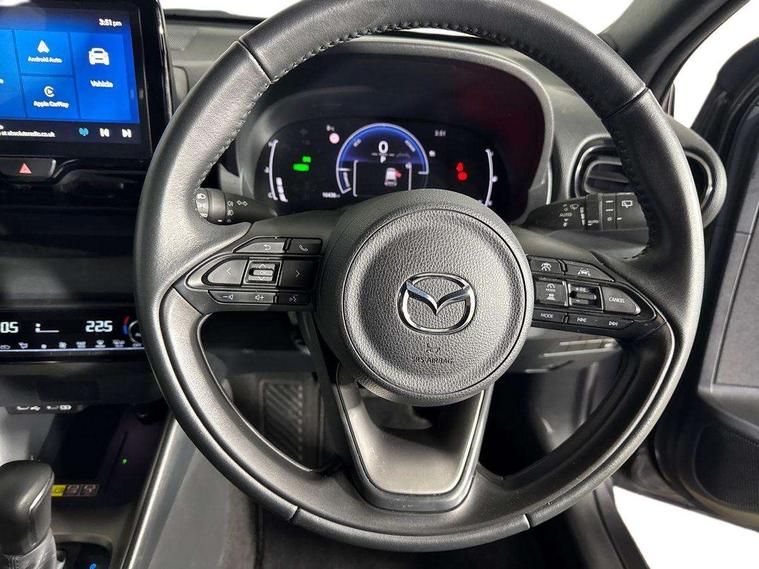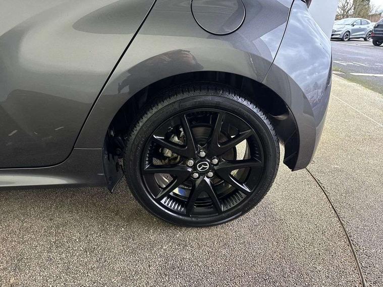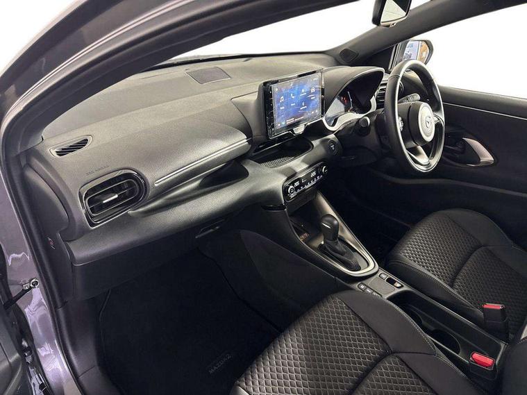 7" Digital instrument cluster with speedometer and hybrid system indicator, Adjustable speed limiter, Drive mode selector (Eco, Normal and Power), Driver attention alert system, Dynamic radar cruise control, E-call with GPS, EV drive mode, Front and rear parking sensors, Integrated bluetooth, Lane tracing assist includes Lane centering, Lane departure alert, Steering assist and Vehicle sway warning, Multi-information display, PAS, Push button start and stop, Qi wireless charging, Rear cross traffic alert with auto braking, Reversing camera, Road sign assist - RSA, Service indicator, Tailgate, Trip computer, Wireless Apple CarPlay and wired Android Auto, i-stop, 6 speaker audio system and 9" colour screen centre display, DAB Digital radio, Steering wheel mounted audio/bluetooth controls, USB type C port, Auto dimming rear view mirror, Auto folding door mirrors, Automatic high beam - AHB, Body coloured front bumper, Body coloured rear bumper with gloss black lower mouldings, Coming home function, Dusk sensing headlights, Front and rear electric windows, Gloss black electric adjustable/heated door mirrors, Gloss black front grille, Gloss black rear roof spoiler, Hybrid badge, LED front fog lights, LED headlights with manual headlight levelling and LED daytime running lights, LED rear combination light with LED turn signals, LED third brake light, Mazda unique tailgate garnish, Piano black lower window garnish, Privacy glass in rear side and rear windows, Rain sensing front wipers with adjustable sensitivity and speed, Rear side wing doors, Rear wash wiper, Shark fin antenna, Welcome lighting, 12V power outlet, 3 seat bench in 2nd row, 60/40 split fold down rear seats, Ambient lighting, Black roof lining in pillar and ceiling, Cloth/Synthetic leather upholstery, Driver, front passenger and two rear door storage, Driver, Front passenger and two rear grab handles with coathooks, Drivers seat manual slide recline and height adjustment, Drivers/front passengers with covered vanity mirrors and light, Dual zone climate control, Front centre armrest with console storage, Front head restraints, Front passenger seat manual slide, recline and height adjust, Front sport seats, Glovebox, Interior courtesy light with LED illumination, ISOFIX child seat anchorage points attached on outer rear seats, Leather handbrake, Leather wrapped gearshift, Leather wrapped steering wheel with telescopic and tilt adjustment, Luggage compartment light, Seatback pocket at rear of the front passenger seat, Single front passenger seat, Three height adjustable rear head restraints, 2x3 point front seatbelts with pre-tensioners, 3 point seatbelts on all rear seats, Airbags - driver and front passenger, Anti-lock braking system (ABS), Blind spot monitoring with rear cross parking support brake function, Collision mitigation braking system, Driver and passenger central airbags, Dynamic stability control + Traction control, Electronic parking brake with auto-hold and auto-disengage function, Emergency brake light signal (EBS), ESP, Front and rear curtain airbags, Front passenger airbag cut-off switch, Front side airbags, Hill start assist control (HAC), Manual child lock in rear doors, Pre-crash safety system - PCS, Rear parking support brake, Regenerative braking system, Seatbelt reminder audible warning, Tyre pressure monitoring system, Deadlocking system, Remote central locking, Smart keyless entry, Thatcham approved immobiliser and alarm, 17" Alloy wheels, Emergency tyre repair kit,