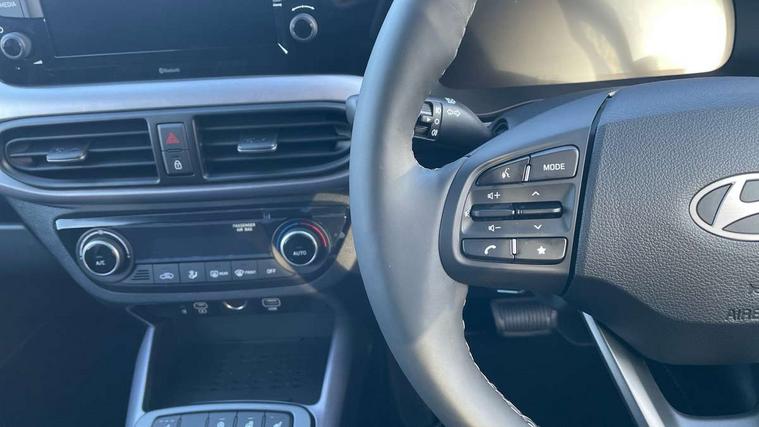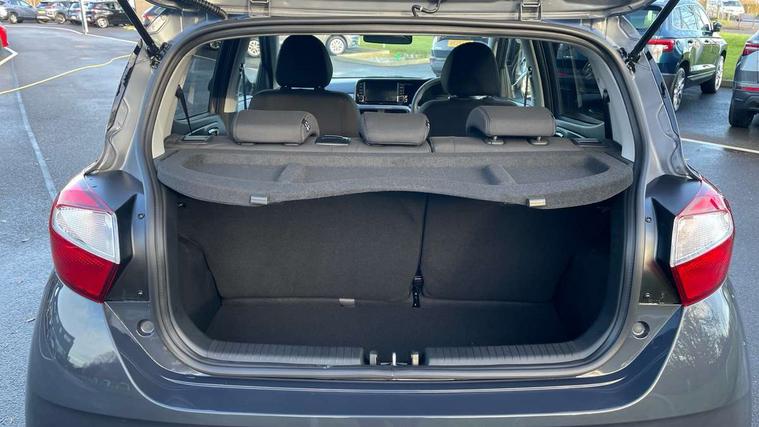 8" Touchscreen satellite navigation including mapcare and LIVE services, Apple car play/Android Auto, Bluelink mobile remote connectivity, Bluetooth connectivity with voice recognition, Cruise control, Driver attention alert system, eCall emergency call system, Forward Collision-Avoidance Assist (FCA) - Pedestrian/Cyclist, Full-width 4.2" LCD instrument cluster, Intelligent speed limit assist, Lane departure warning system with lane keep assist - LKAS, Lane follow assist, PAS, Rear parking sensors, Rear view camera with guidelines, Roadside assistance, Tailgate, Trip computer, Wireless charging pad, 2 front/2 rear speakers, Front and rear USB-C ports, Front USB connection, Leading vehicle alert (LVA), Steering wheel audio, phone and cruise controls, 1 speed non intermittent rear windscreen wiper, Black finish on B pillars, Body colour door handles, Body coloured bumpers, Body coloured door mirrors, Electric folding door mirrors, Electric front windows, Electric rear windows, Electrically adjustable and heated door mirrors, Flat metal emblem, Front fog lights, Front grille in glossy black, Front intermittent wipers, Halogen bi-function headlights, Headlights inner with Black Blade design, Heated rear window, High beam assist, Indicator light on door mirrors, LED daytime running lights, Privacy glass for rear window, Rear roof spoiler with integrated LED brake light, Rear side wing doors, 12v power outlet - front, 3 seat bench in 2nd row, 60/40 split folding flat to floor rear seats, Air conditioning climate control, Auto light control, Bottle holders in front/rear doors + front centre console, Cabin and luggage compartment interior lighting, Cloth upholstery, Driver + passenger vanity mirrors, Driver's seat height adjustment, Driver/passenger sunvisors with ticket holders, Floor mats, Front door pockets, Front Head Restraints - Vertical and Horizontal Adjustment, Front LED blue mood lighting, Glove compartment, Heated front seats, Heated steering wheel, Height adjustable steering column, Isofix child seat preparation, Leather wrapped steering wheel and gear knob, Metallic grey dashboard finisher with Meta Blue air vent rings, black/purple grey C-Pad and dark metallic garnish console, Rear door pockets, Single front passenger seat, Vertical adjustment rear head restraints, 13" Rear brake discs, 3x3 point rear seatbelts, Airbags - front, front side and curtain airbags, Anti-lock brake system (ABS), Autonomous emergency braking (AEB) with forward collision warning system, Brake assist function, Childproof rear door locks, Electronic stability control, Front and rear seatbelt reminder, Front seatbelt pretensioners, Hill start assist control (HAC), Passenger airbag deactivate switch, Traction control, Tyre pressure monitoring system, Immobiliser, Perimeter alarm, Rear occupant alert, Remote central locking, Second remote key, Smart key with keyless entry and engine start/stop button, Speed sensitive auto door locking, 16" alloy wheels, Temporary mobility kit (TMK),